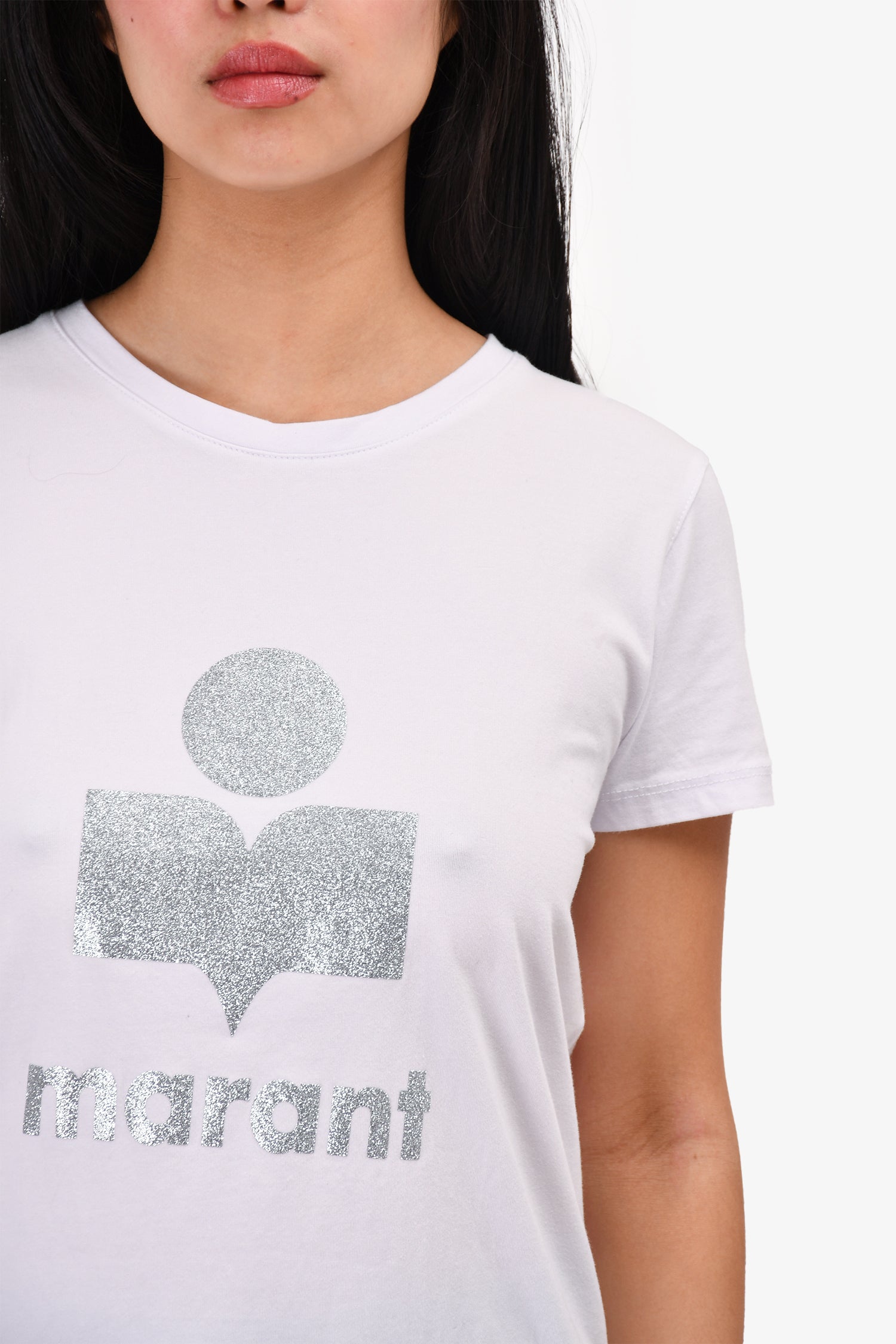Refresh availabilityIsabel Marant White/Silver Glitter Logo Top. Round neck. Pull-on.