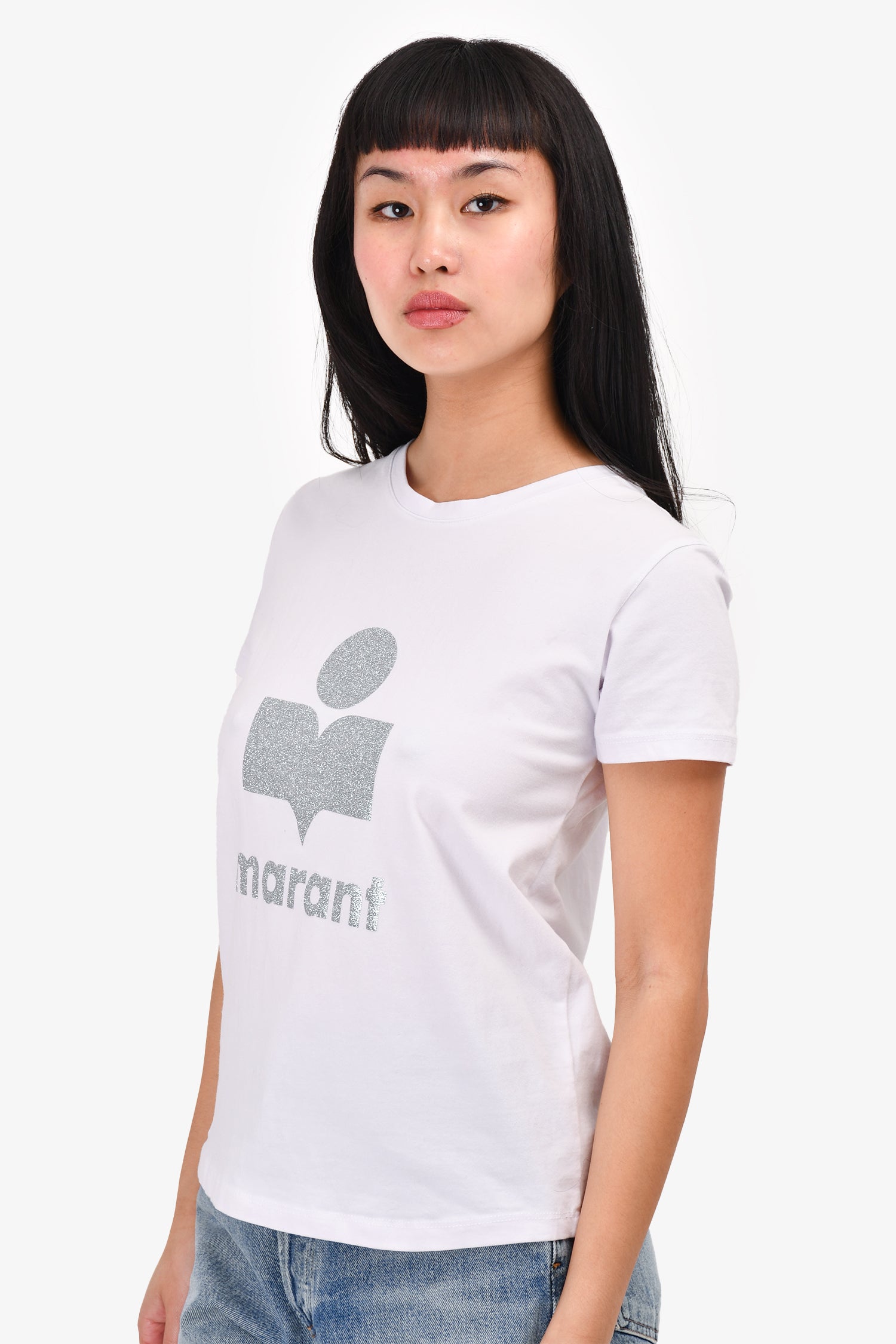 Isabel Marant White/Silver Glitter Logo Top Size M