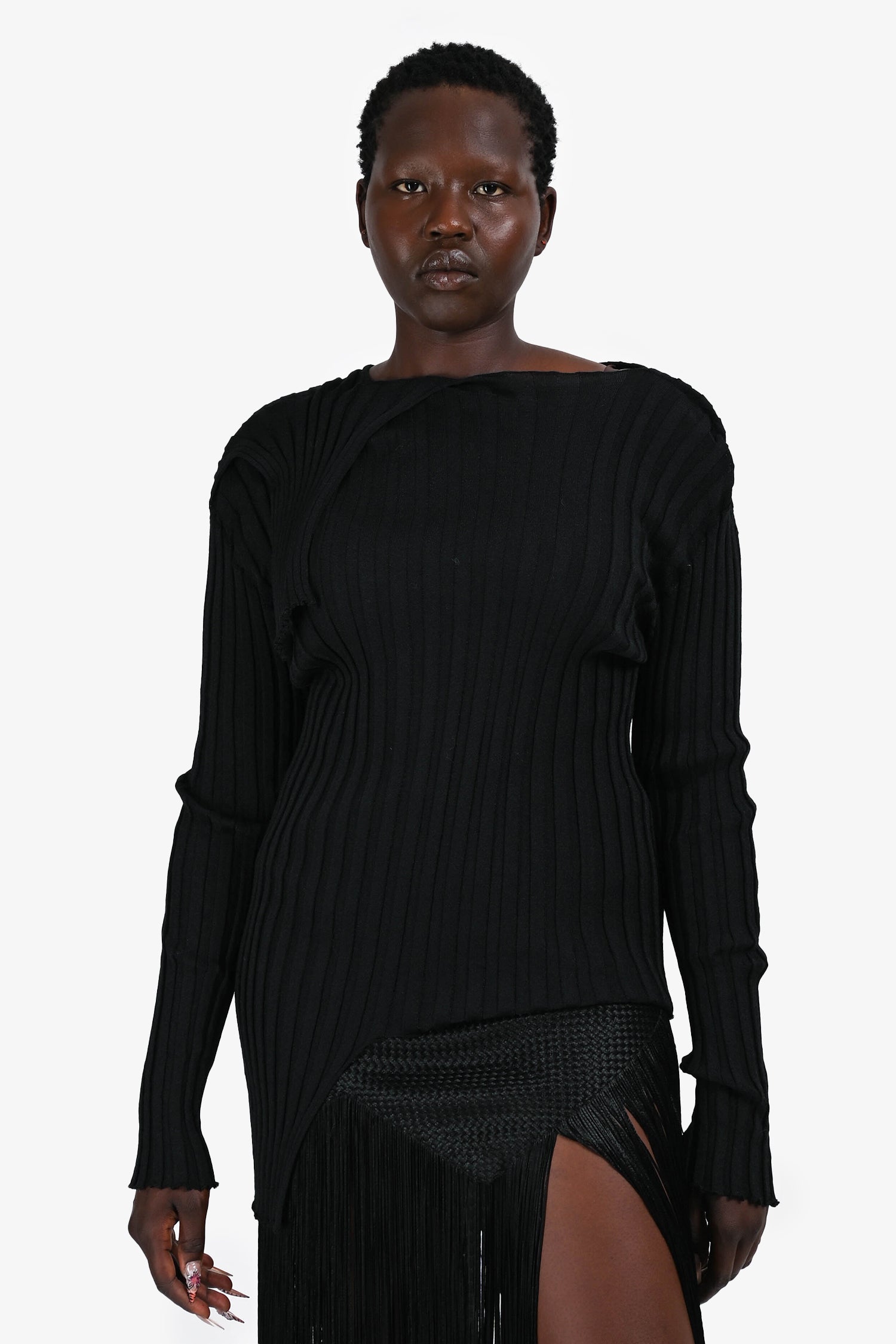 Refresh availabilityIssey Miyake Pleats Please Black Long Sleeve Tunic. Asymmetrical hem and neckline. Long sleeves. Pull-on style. Tonal stitching.