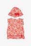 Jacadi Red/White Floral Printed Ruffle Sleeve Blouse + Sun Hat Set Size 23M