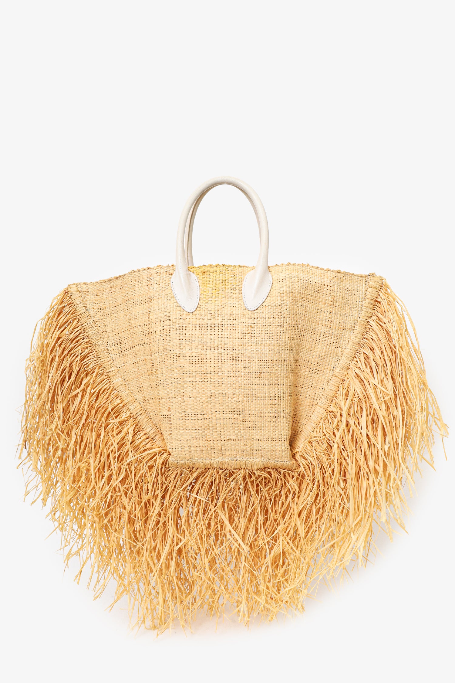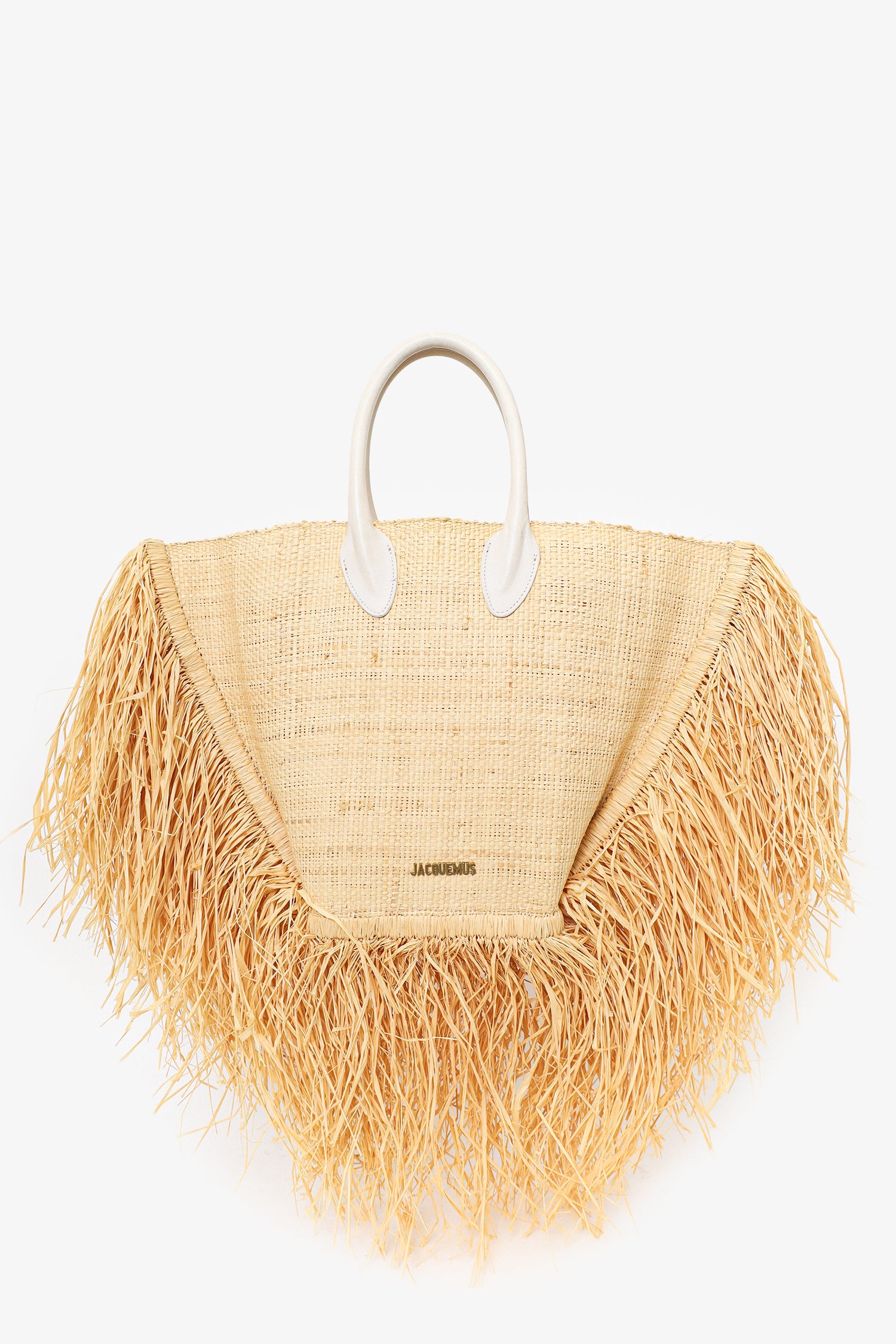 Refresh availabilityJacquemus Neutral Raffia Le Baci Fringe Fringe Straw Tote Bag. Open top. Twin handles. Partially lined open interior. Tonal stitching.
