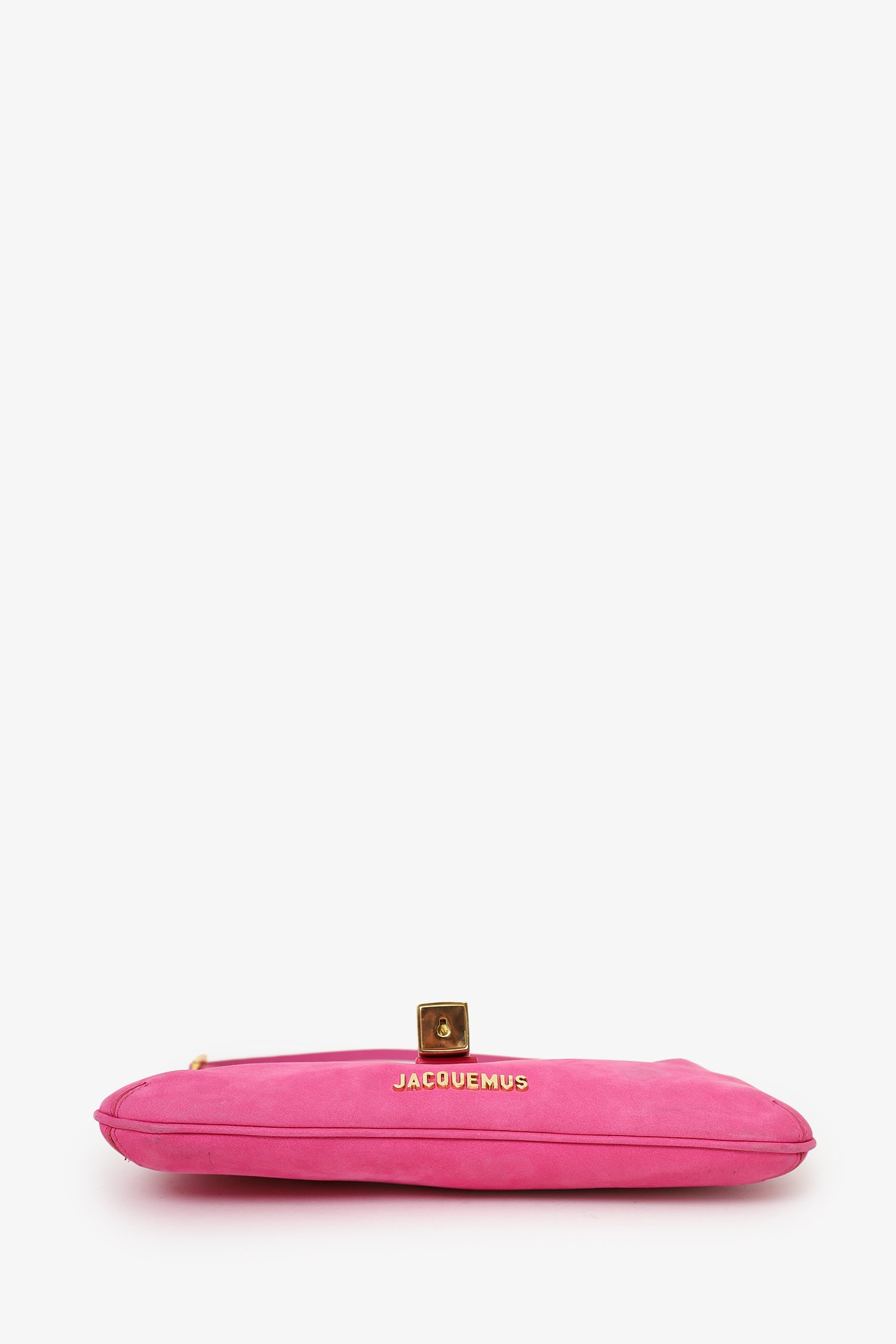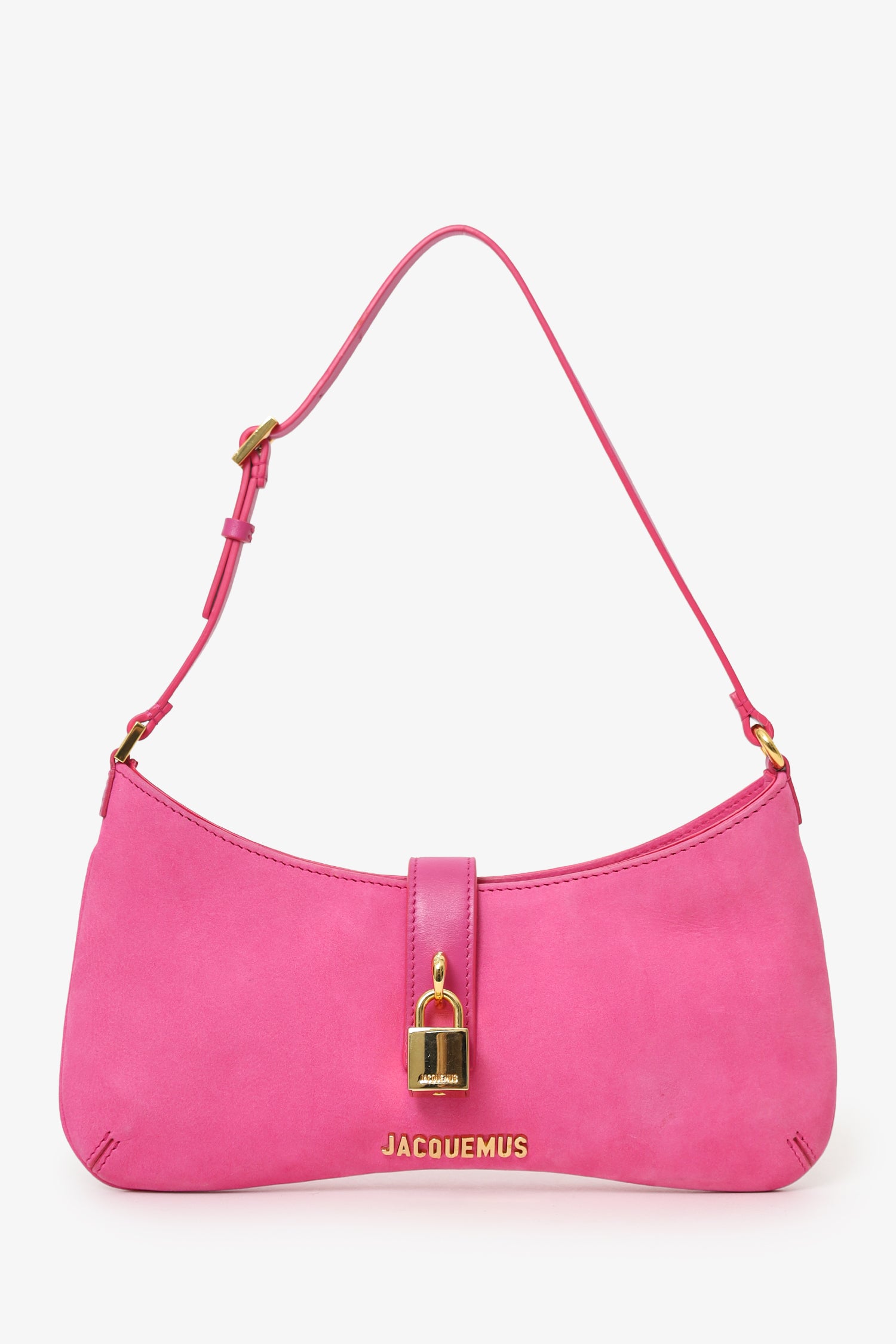Refresh availabilityJacquemus Pink Le Bisou Cadenas Bag. Front-fold-over-flap with top zip-up closure. Adjustable shoulder strap with pull-through buckle closure. Lined interior with single rear slip pocket. Additional lock-and-key. Gold-tone hardware. Tonal stitching.