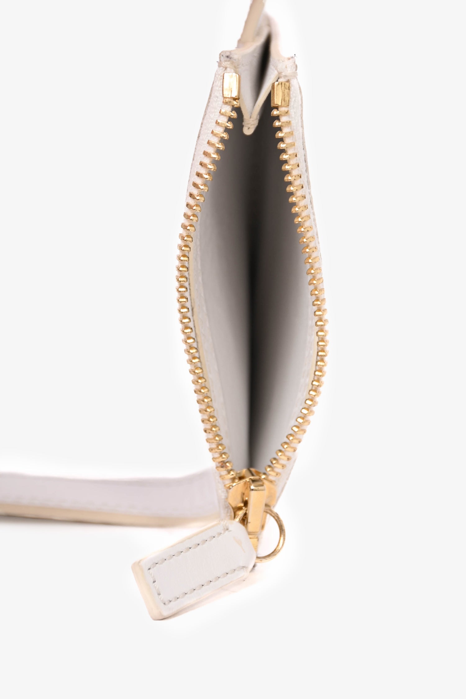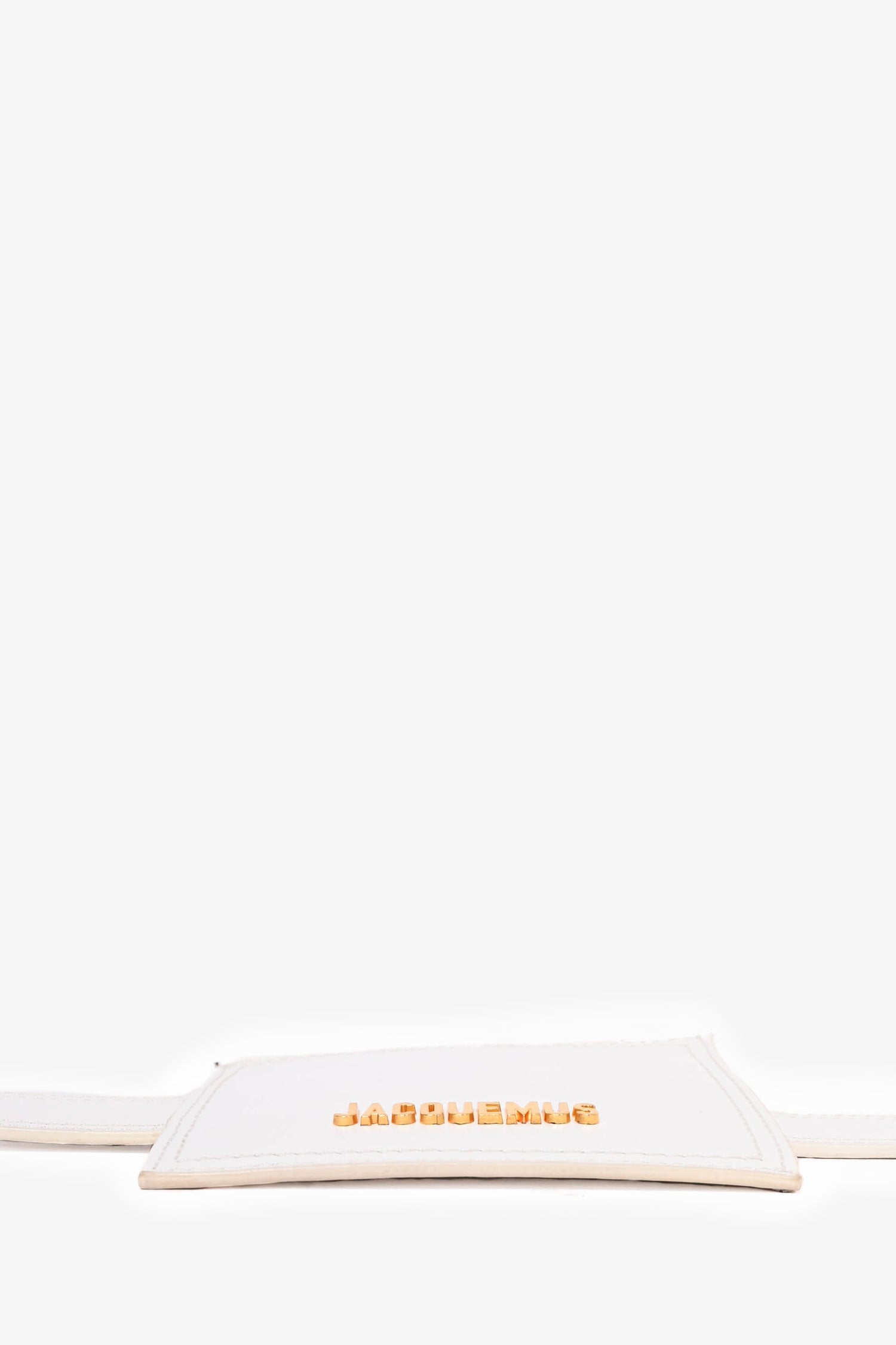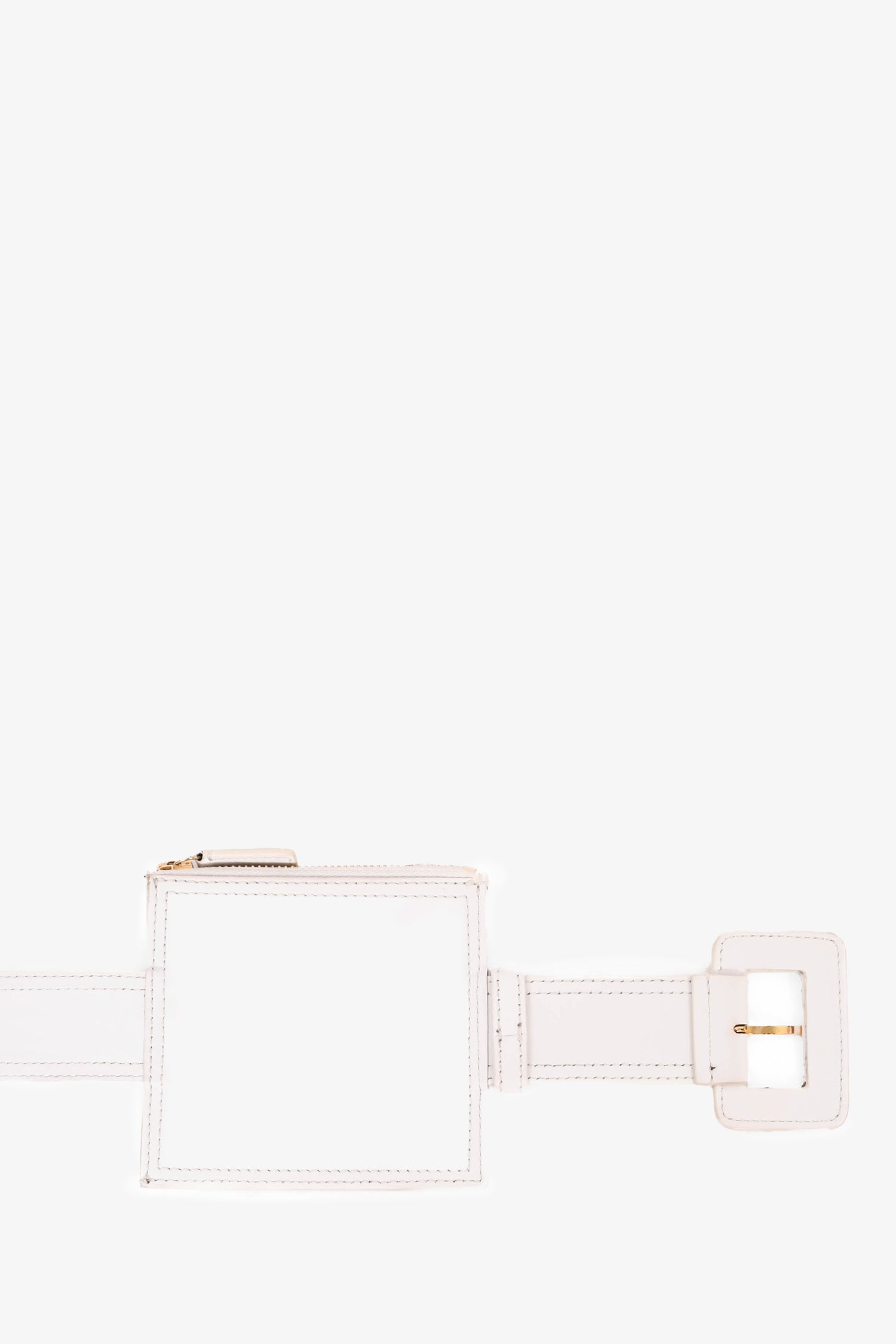 Refresh availabilityJacquemus White Leather Belt with Pouch. Singular interior compartment with zip closure. Gold tone hardware. Tonal stitching.