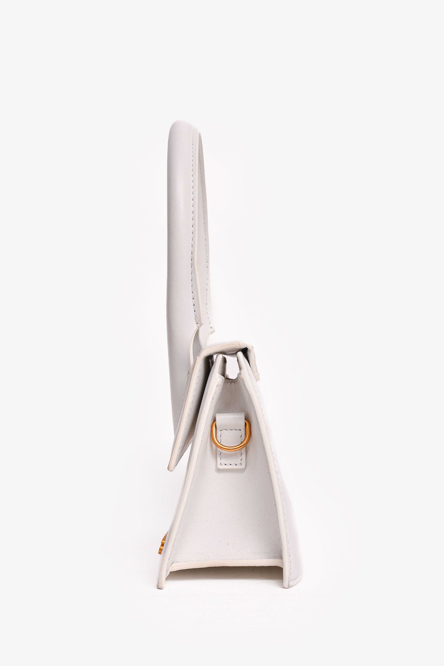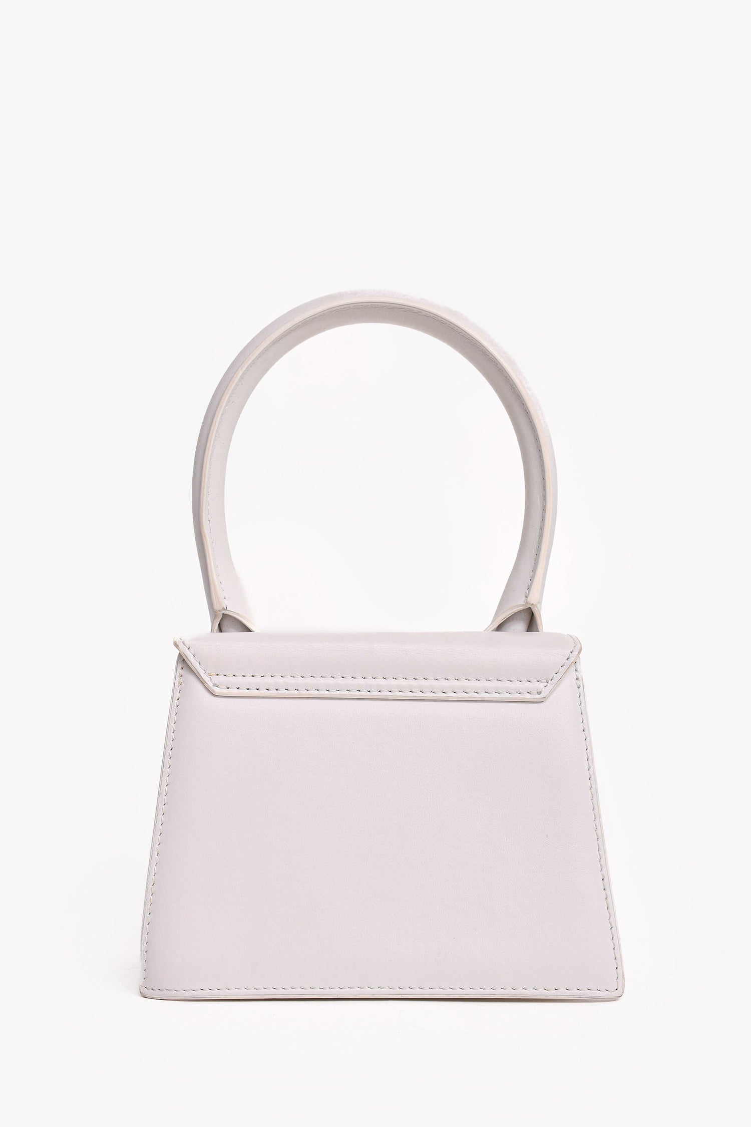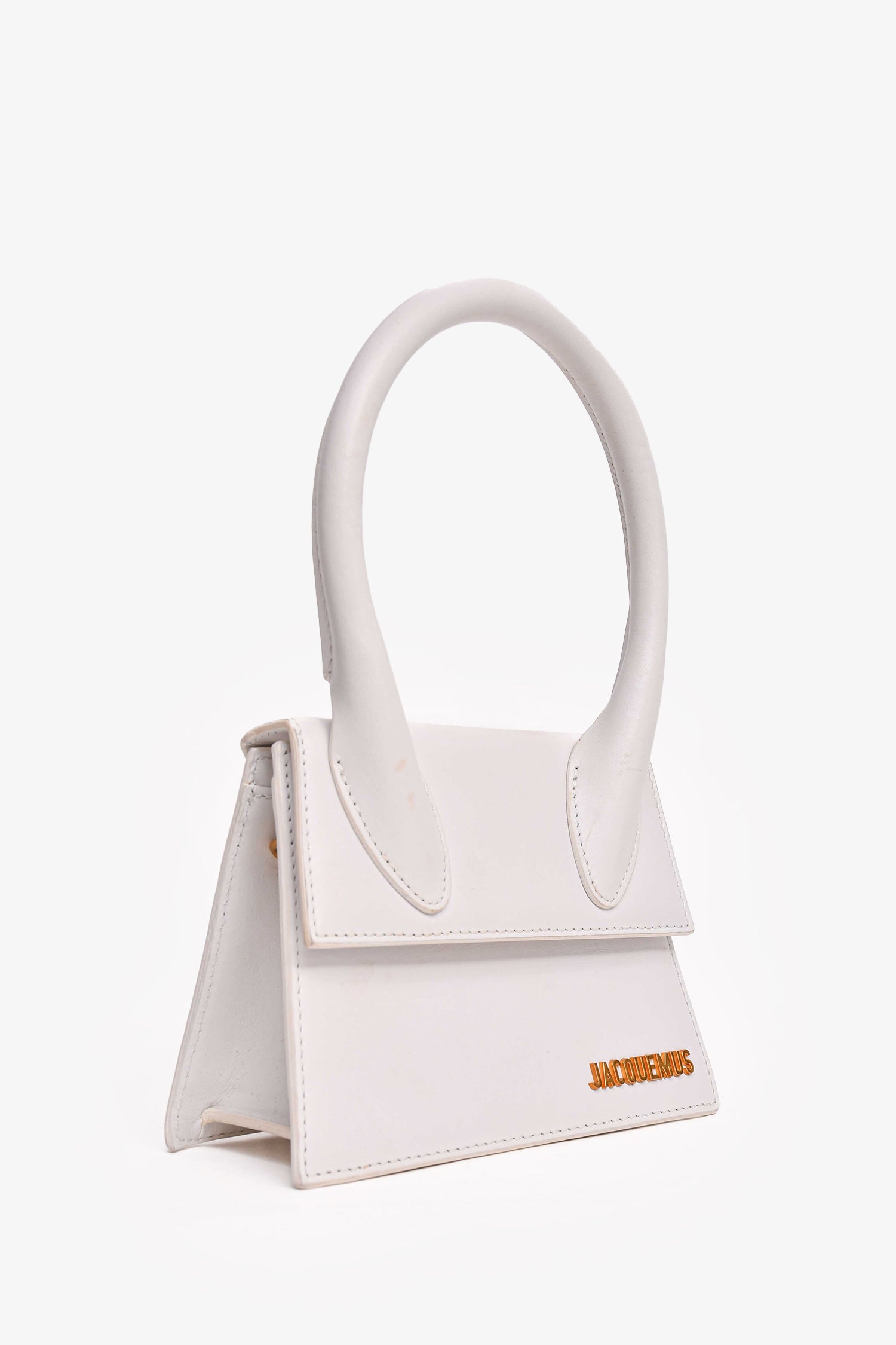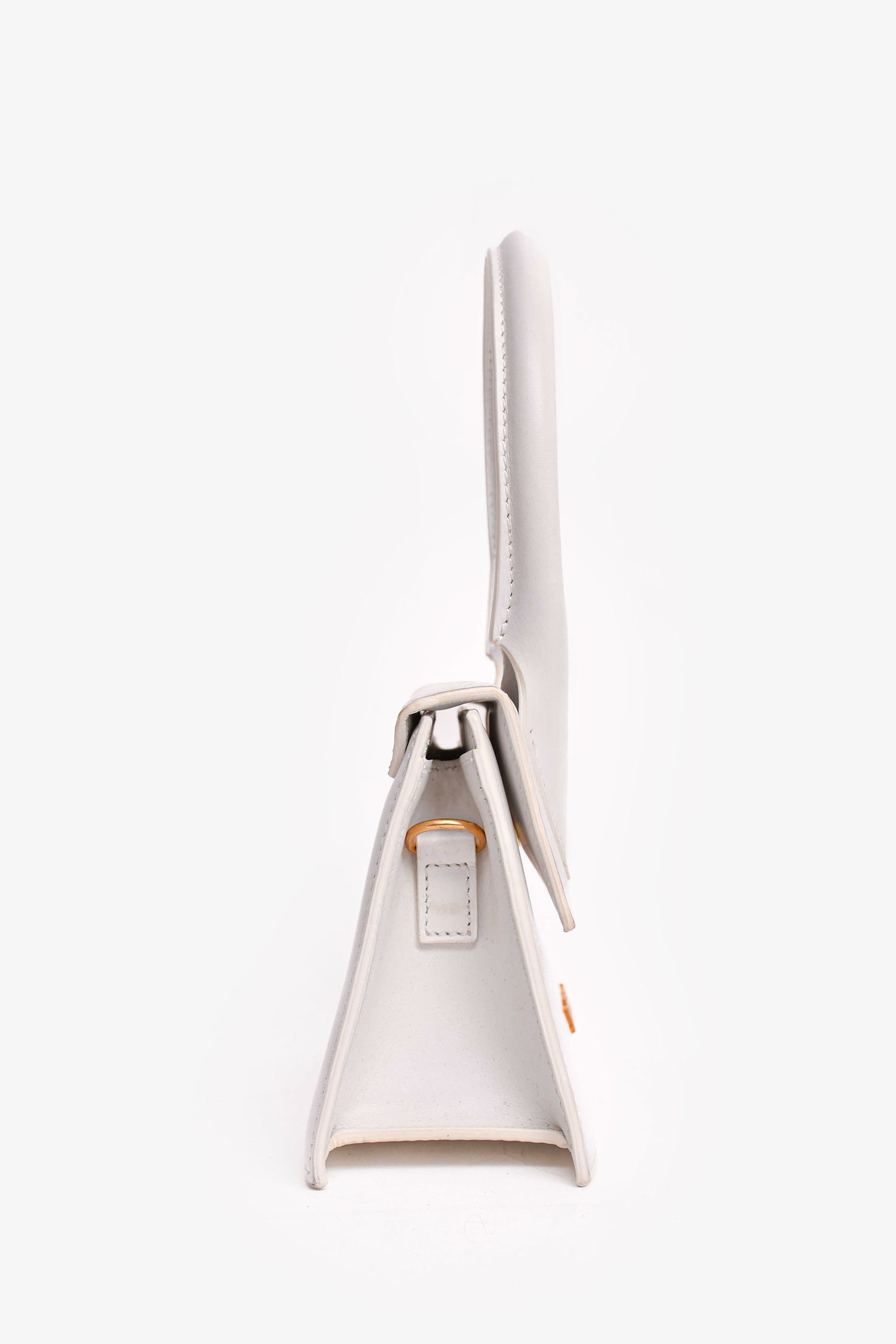 Refresh availabilityJacquemus White Leather Le Chiquito Moyen Top Handle with Strap. Front fold-over flap with magnetic closure. Single interior wall slip pocket. Removable and adjustable strap. Gold-tone hardware.