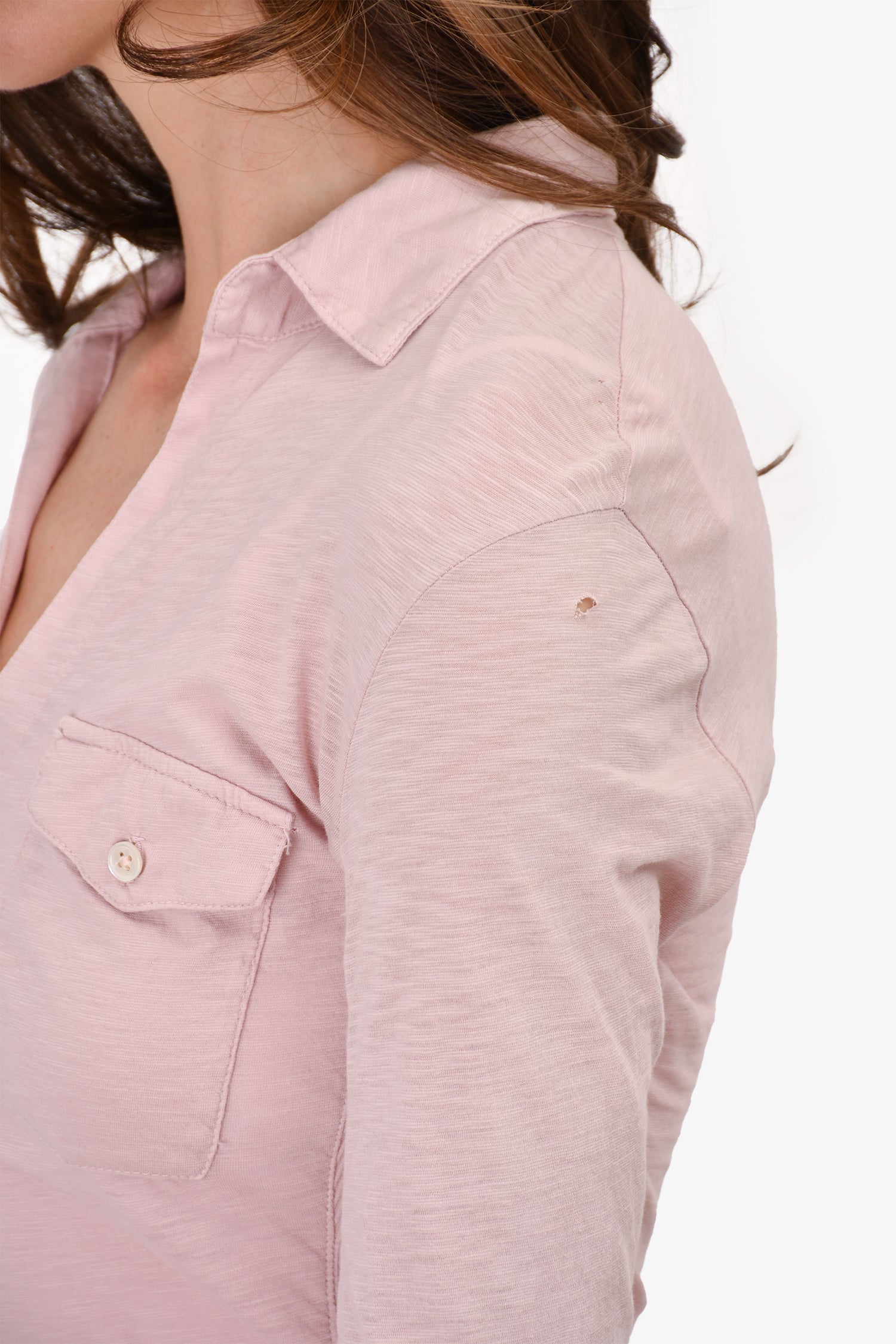 Refresh availabilityJames Perse Pink Button-Up Shirt. Front button up closure. 2 front button pockets. Unlined. Tonal stitching.