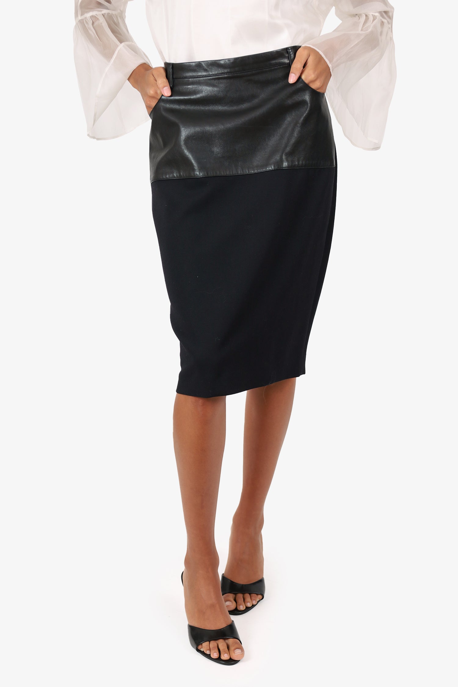 Jean Paul Gaultier Black Wool/Faux Leather Skirt Size 10