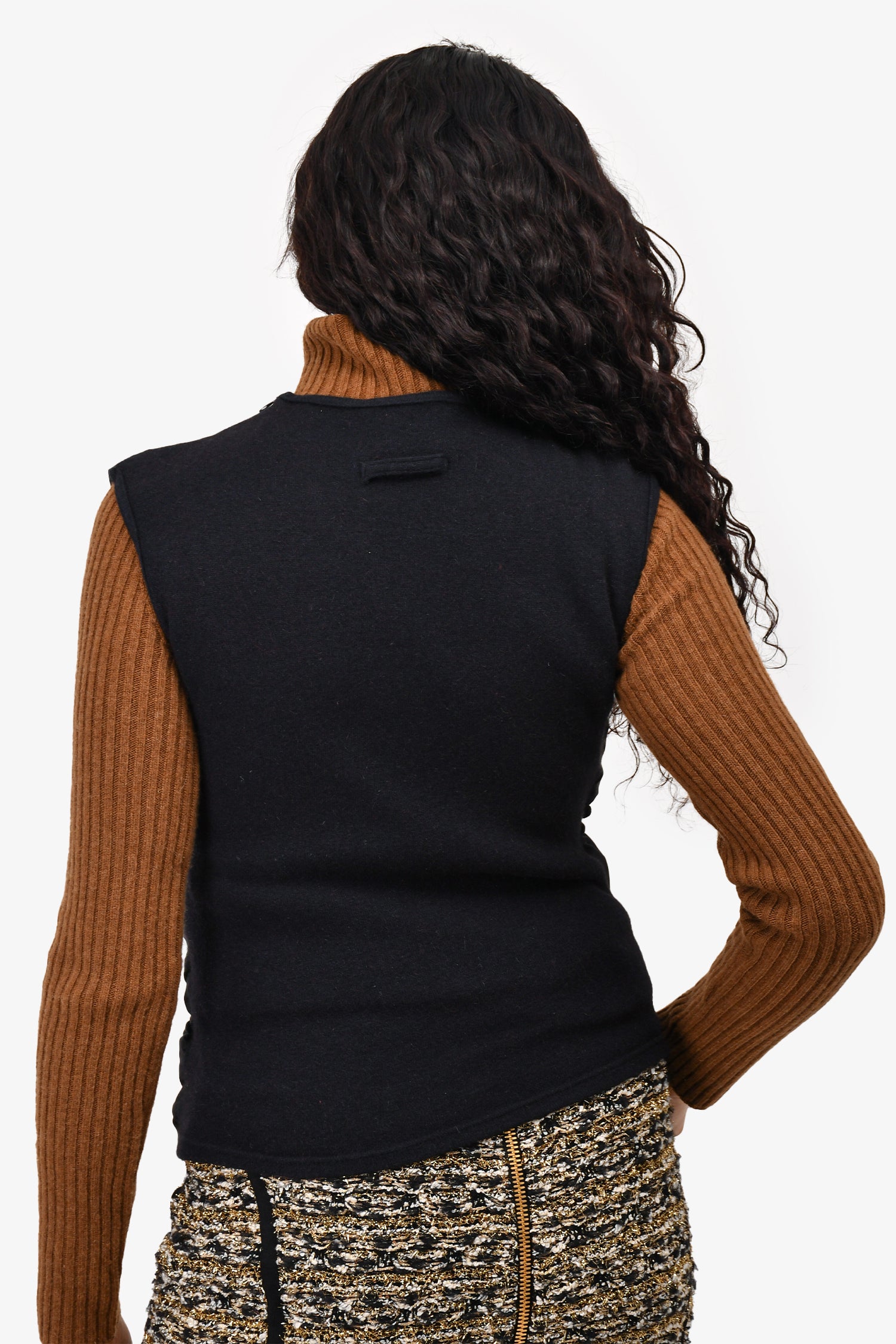 Refresh availabilityJean Paul Gaultier Femme Black Wool/Silk Padded Sleeveless Rope Detail Vest. Round neck. Pull-on.