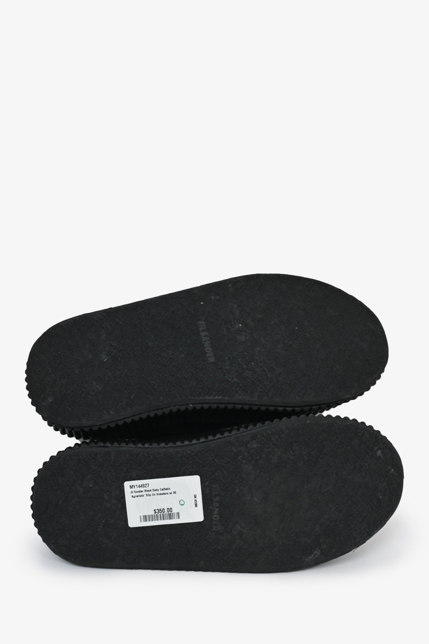 Jil Sander Black Baby Calfskin 'Agnellato' Slip On Sneakers Size 36