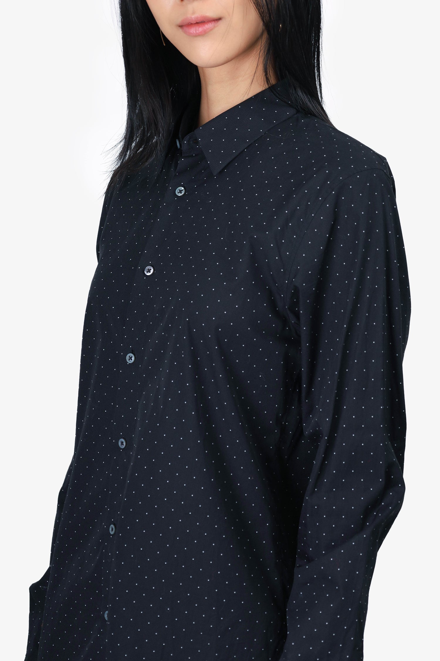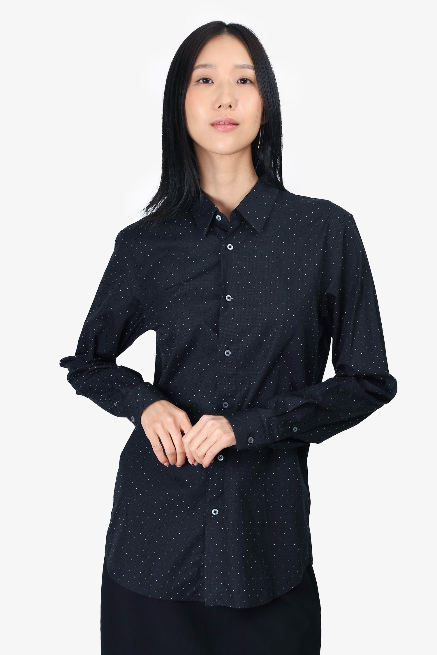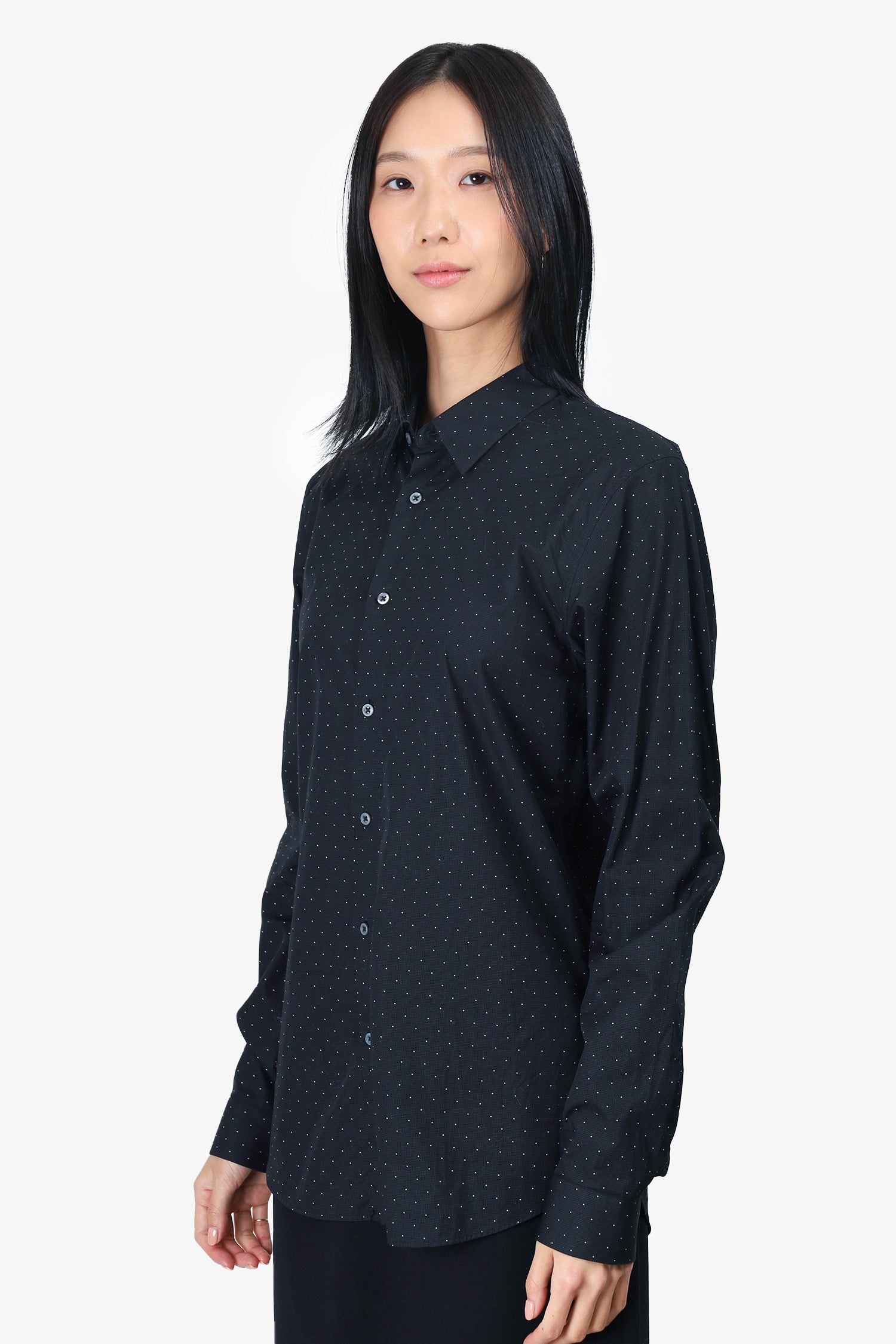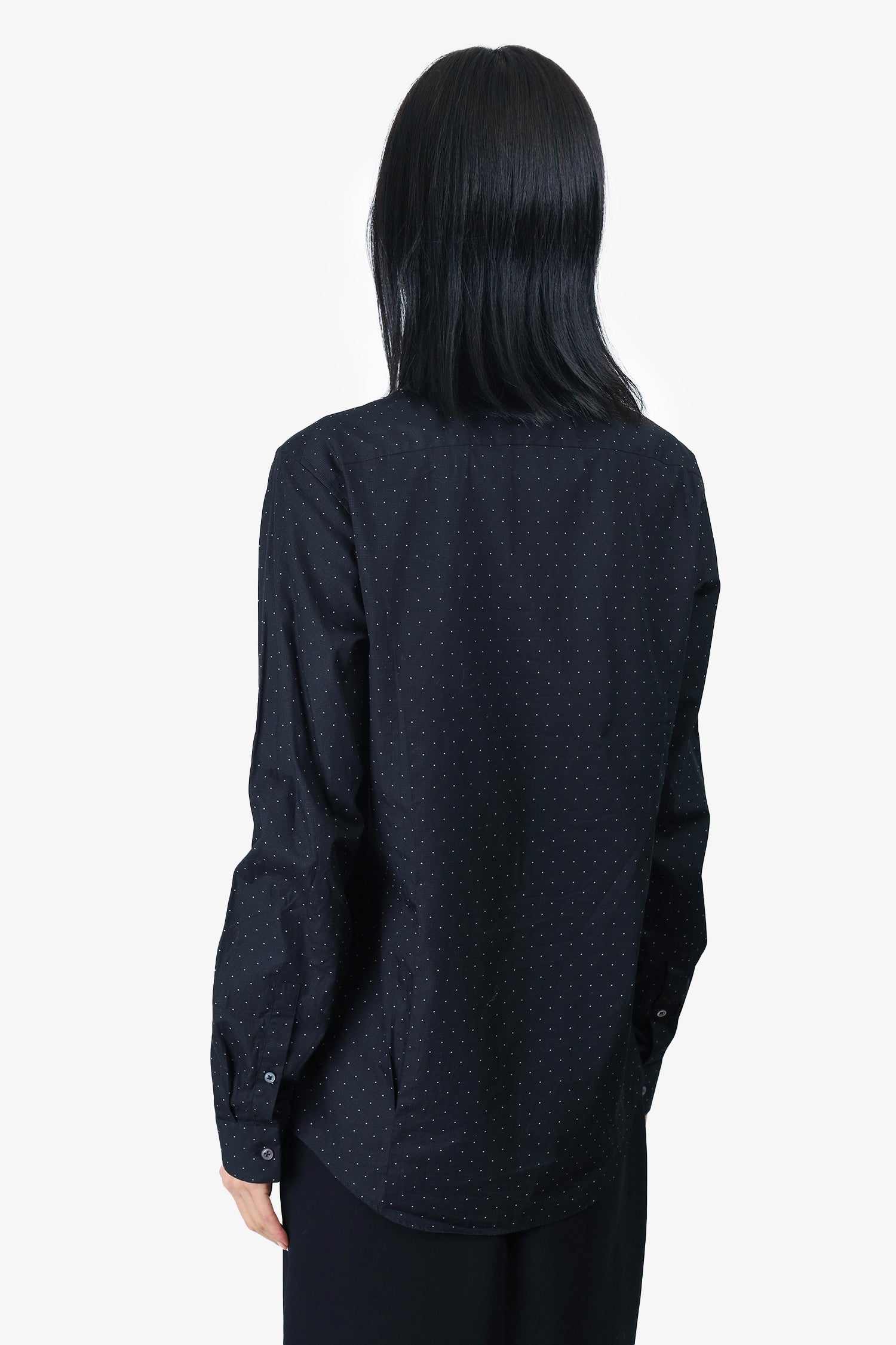 Refresh availabilityJil Sander Black/White Polka Dot Shirt. Collared neckline. Front and cuff button-up closure. Curved hem. Tonal stitching. Unlined.