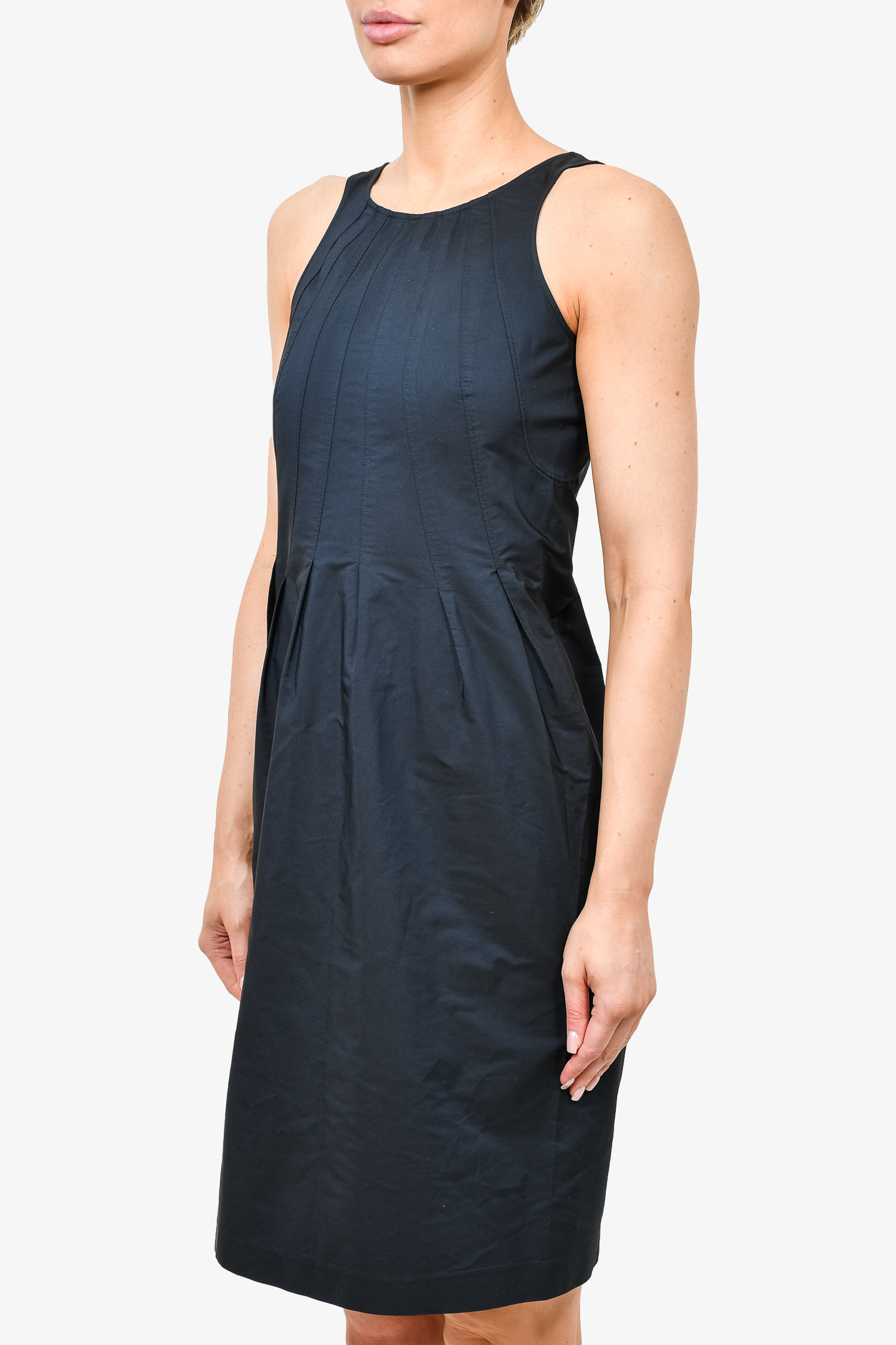 Jil Sander Navy Blue Nylon Dart Front Sleeveless Dress Size 38