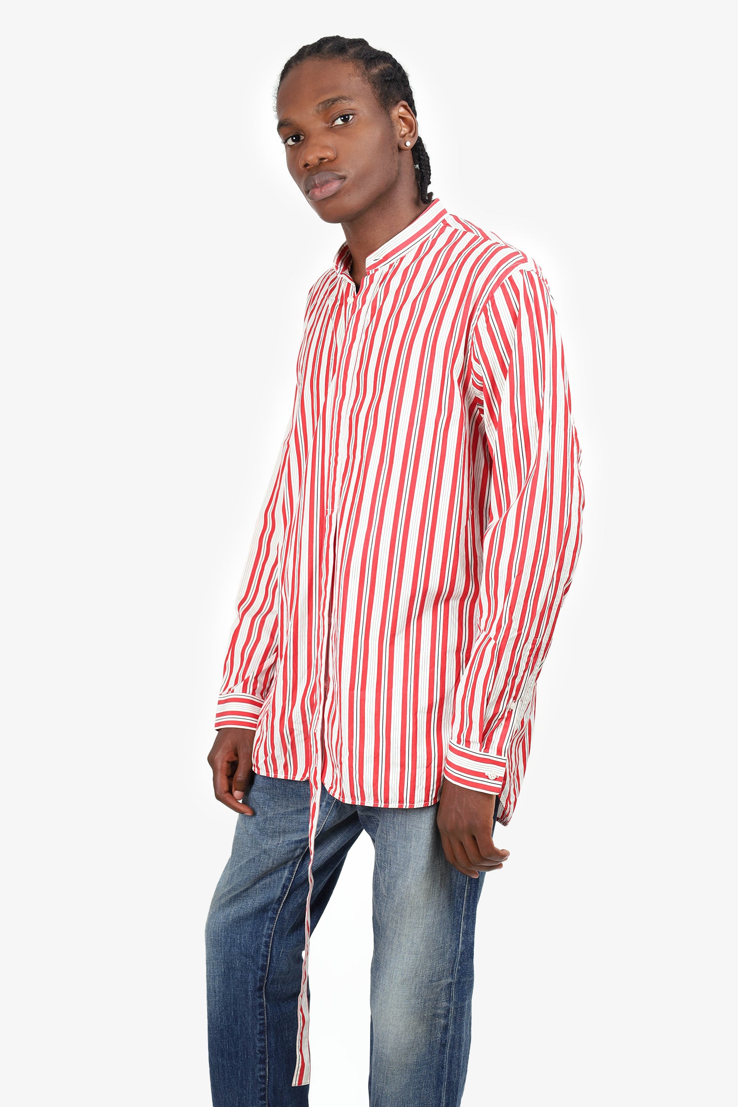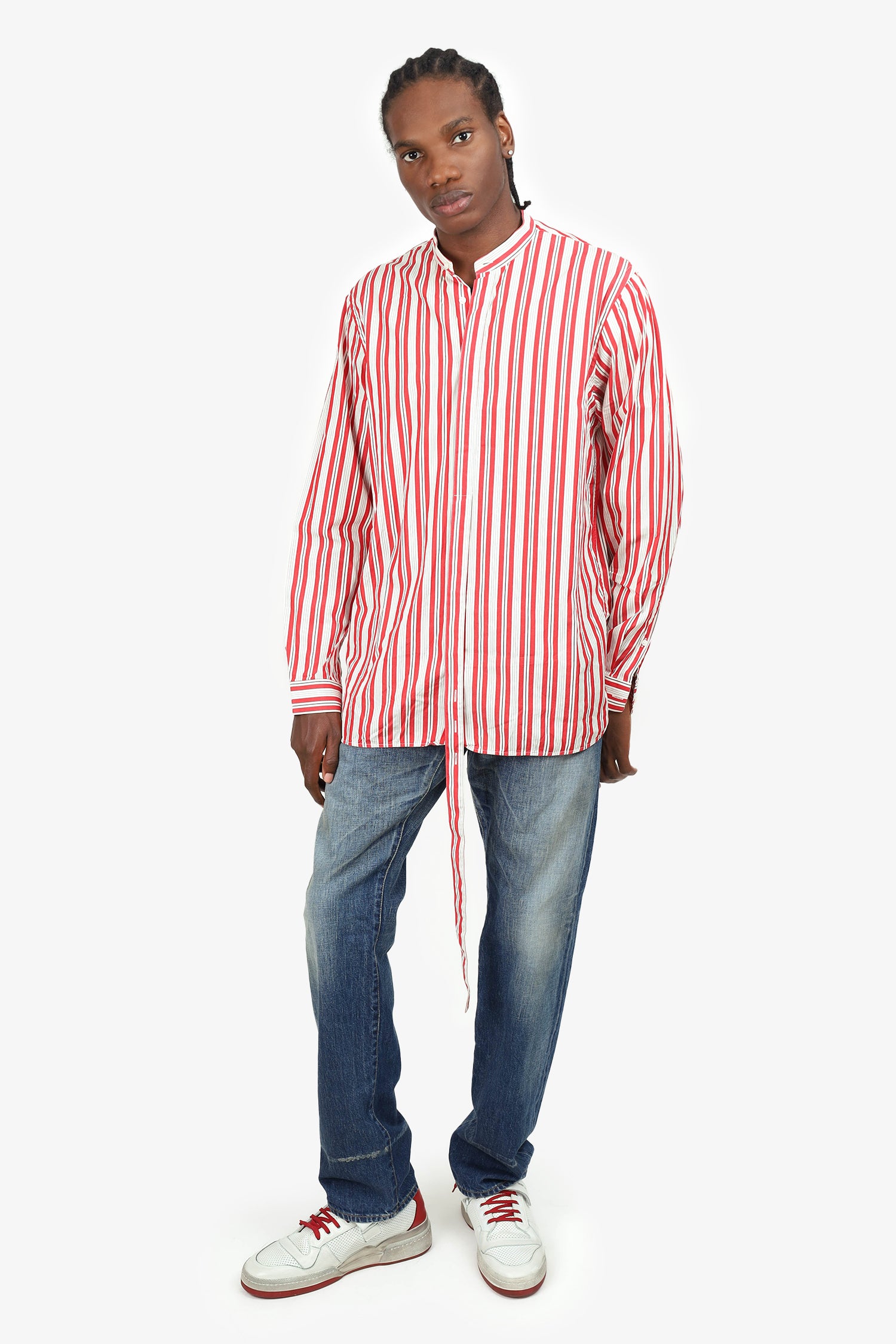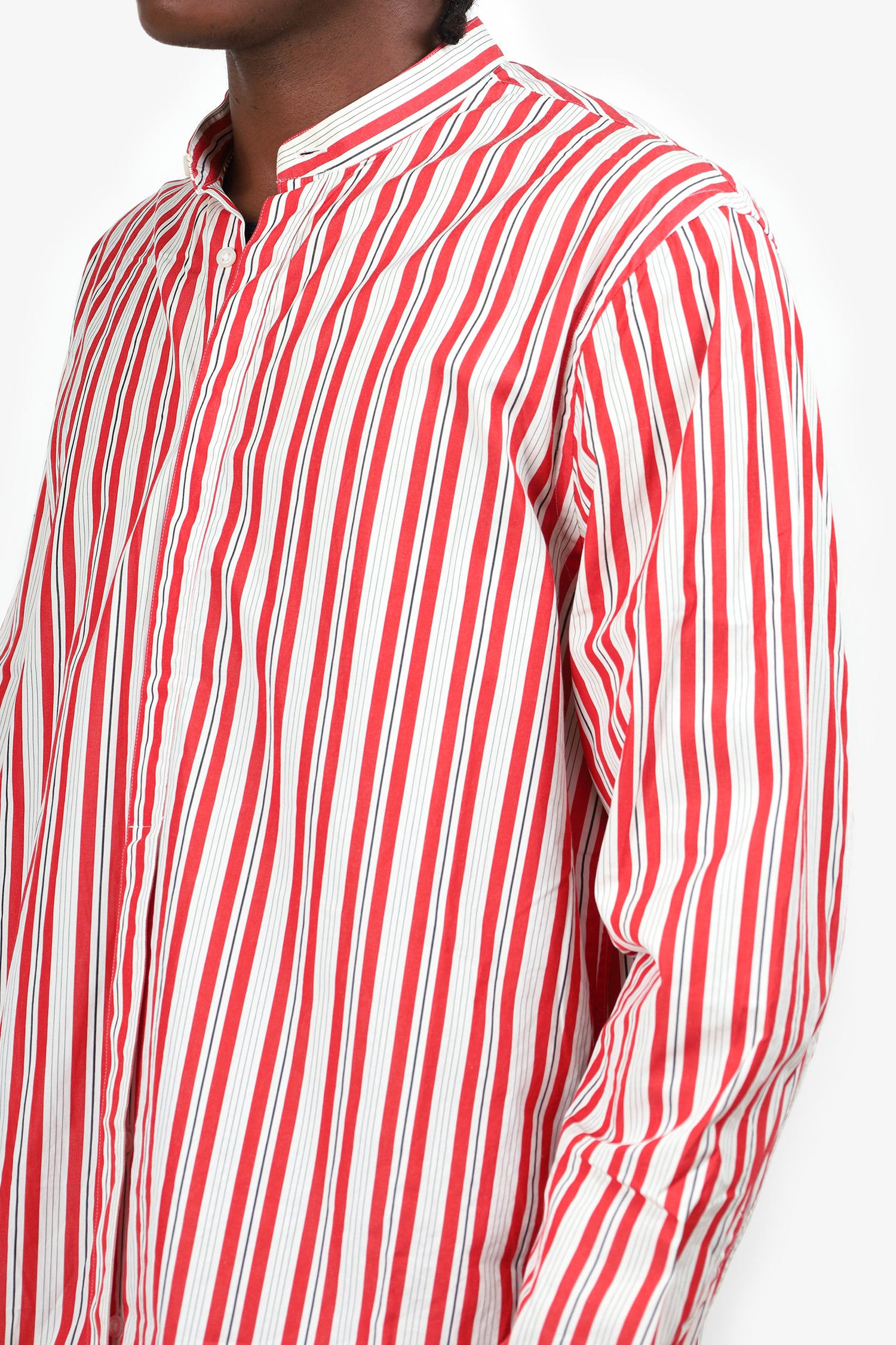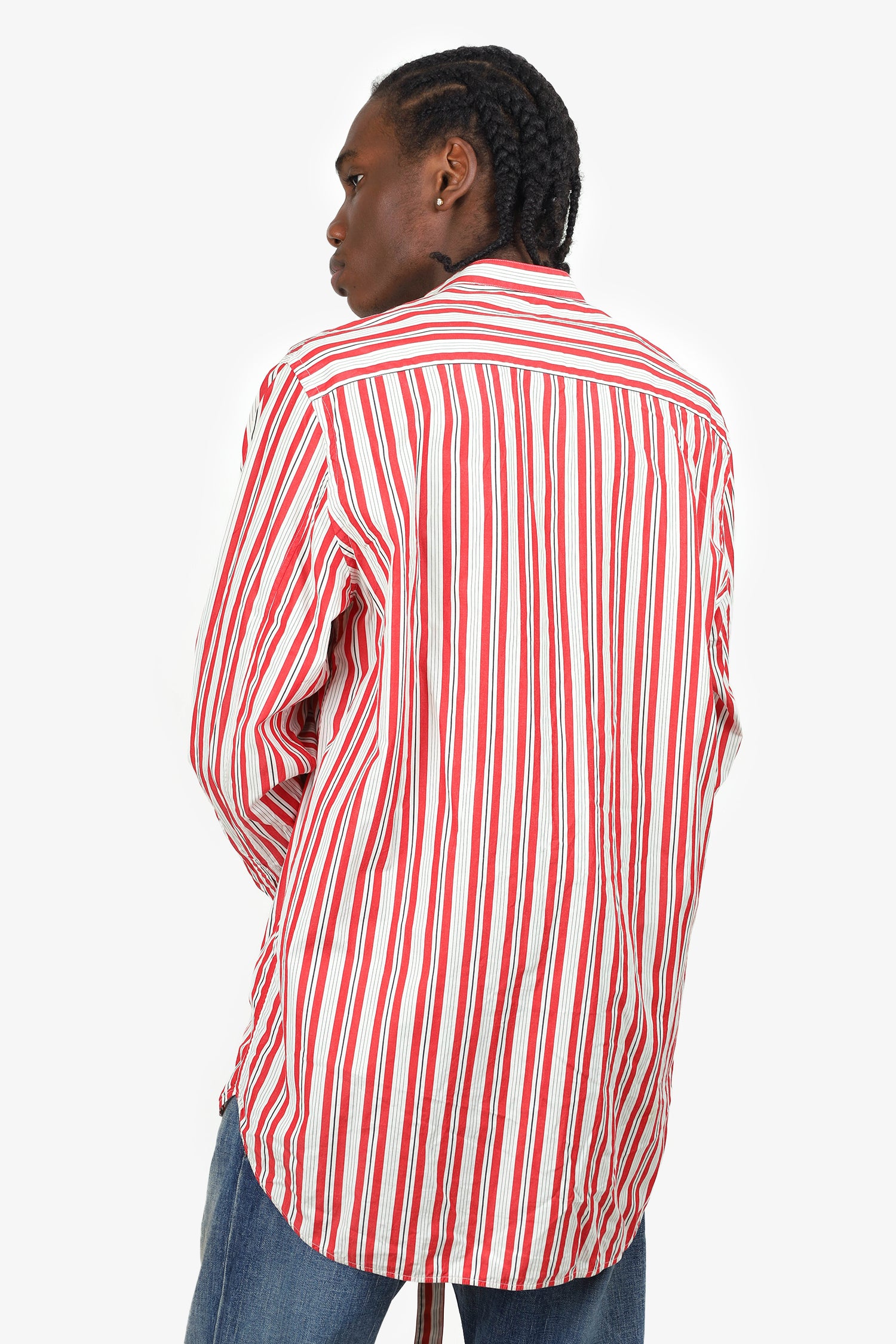 Refresh availabilityJil Sander Red/White Striped Long-sleeves Shirt. Front button up closure. Tonal stitching.