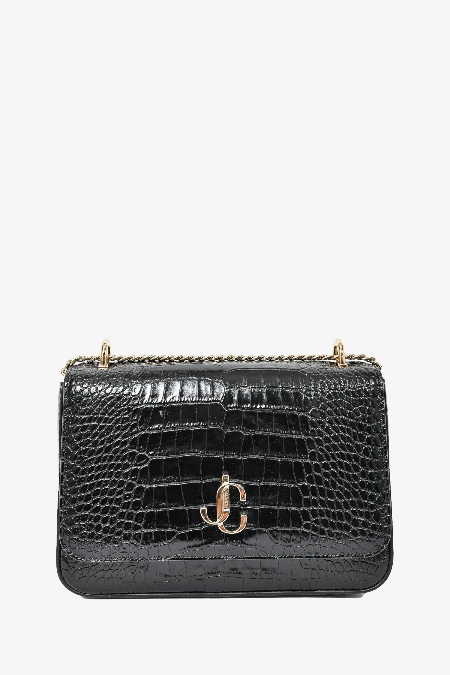 Jimmy Choo Black Croc Embossed Leather 'JC' Flap Chain Bag
