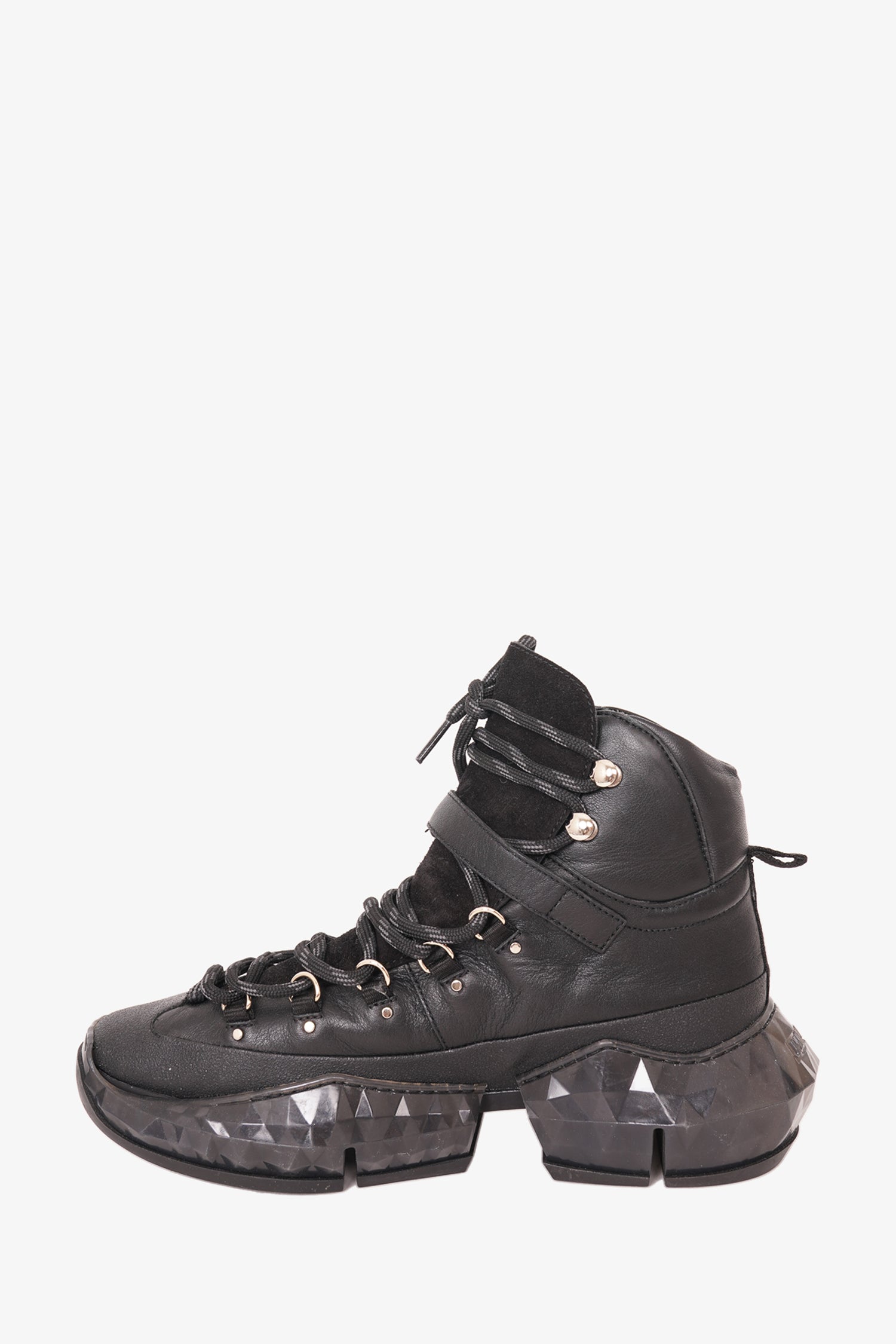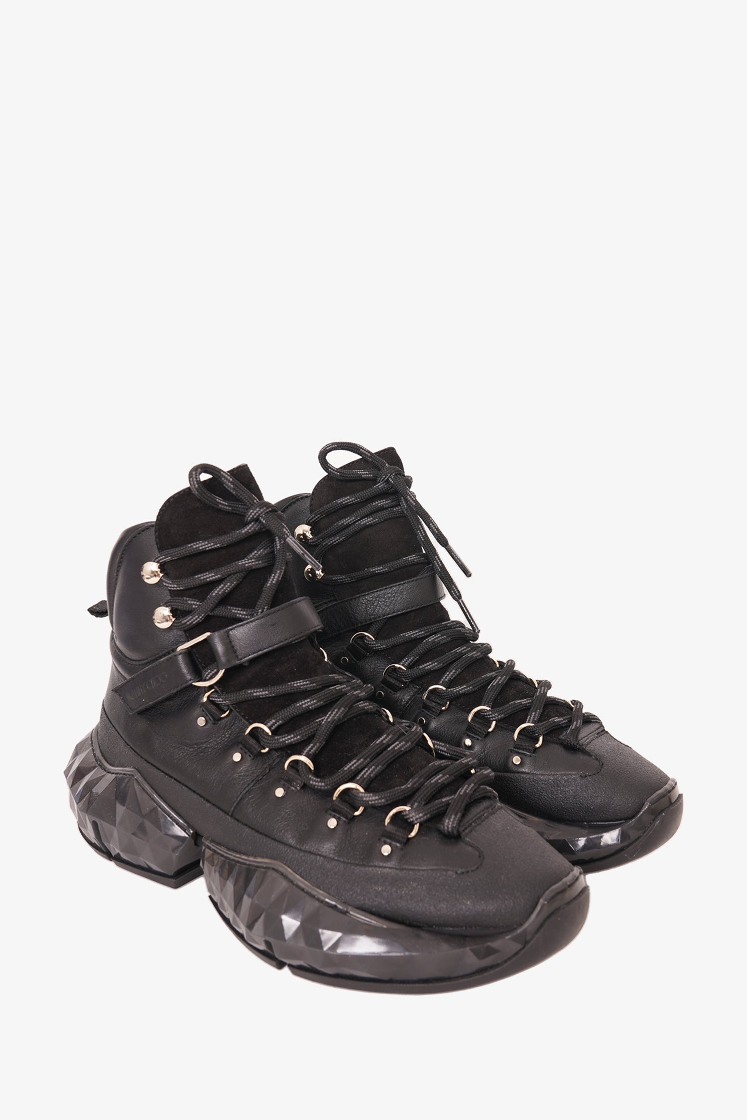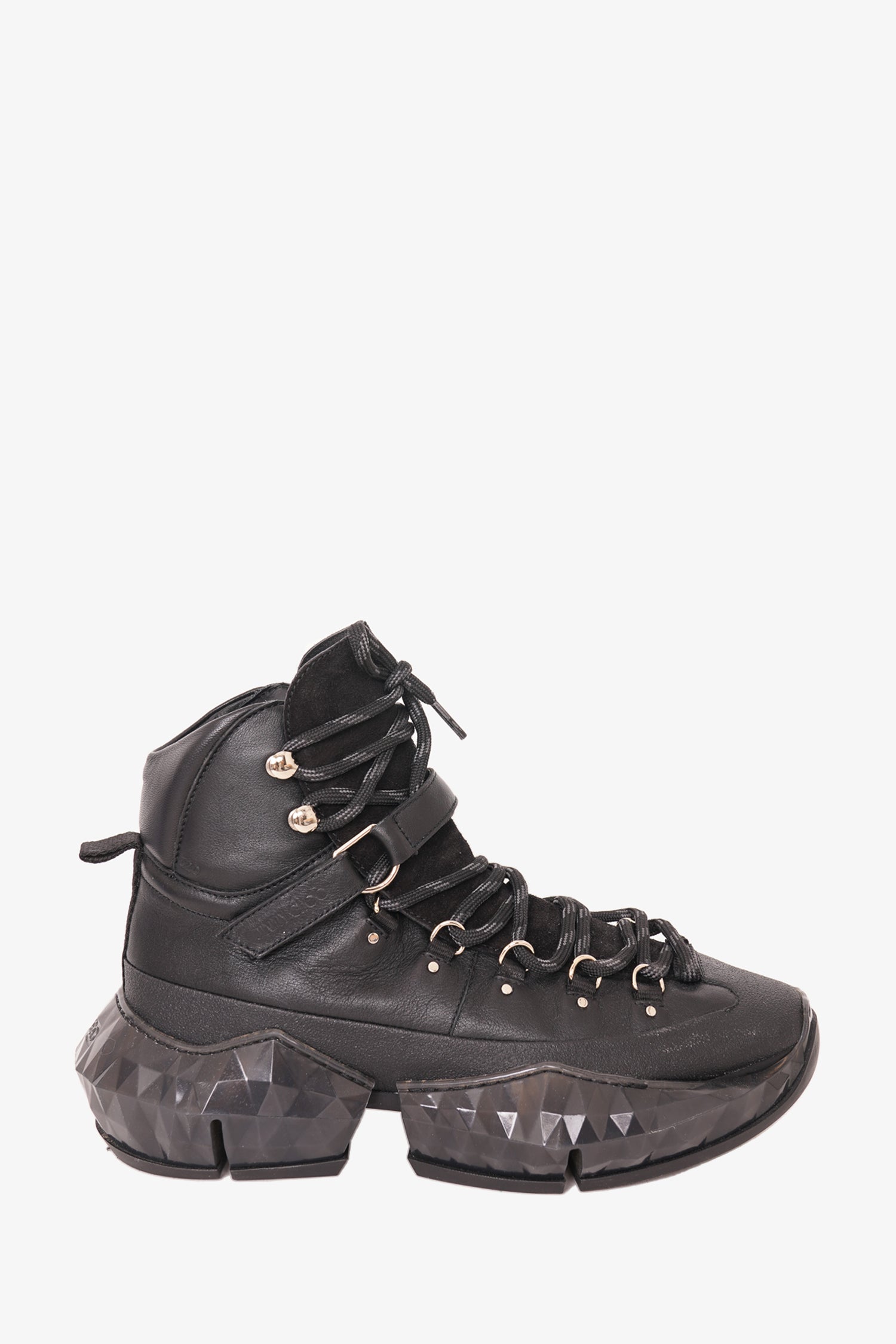 Refresh availabilityJimmy Choo Black Lace-Up Hiking Boots. Round toe. Lace-up front closure. Tonal stitching.