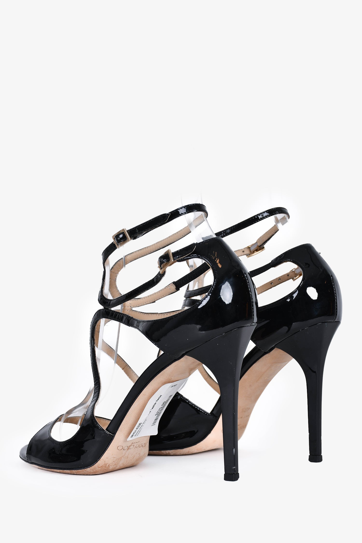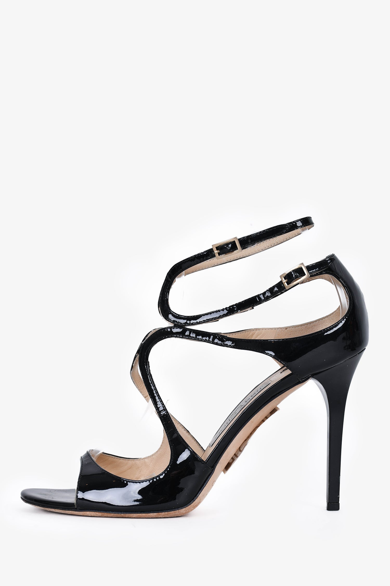 Refresh availabilityJimmy Choo Black Patent Leather Heeled Sandals. Open toe. Strap with buckle closures. Glossy finish.