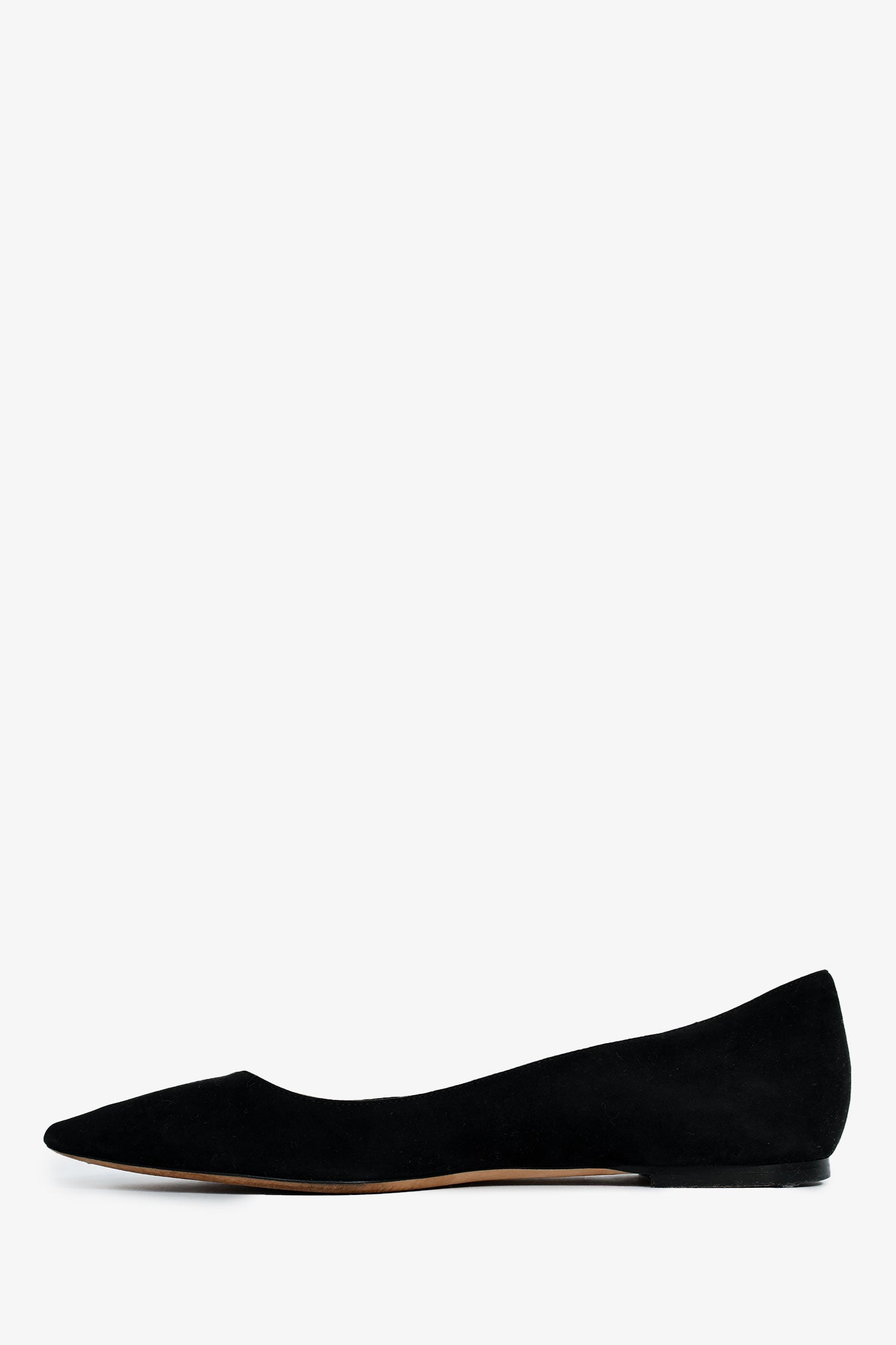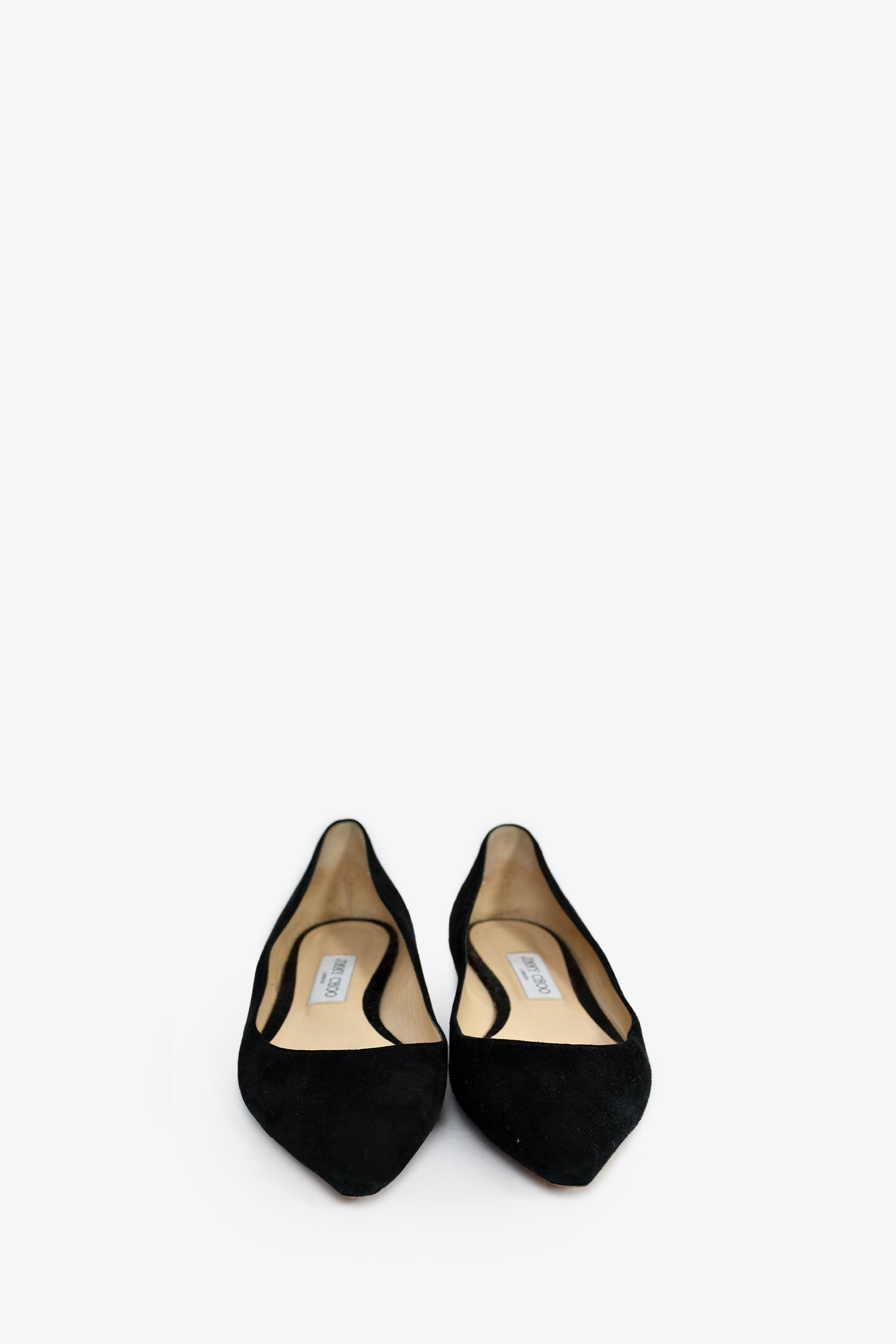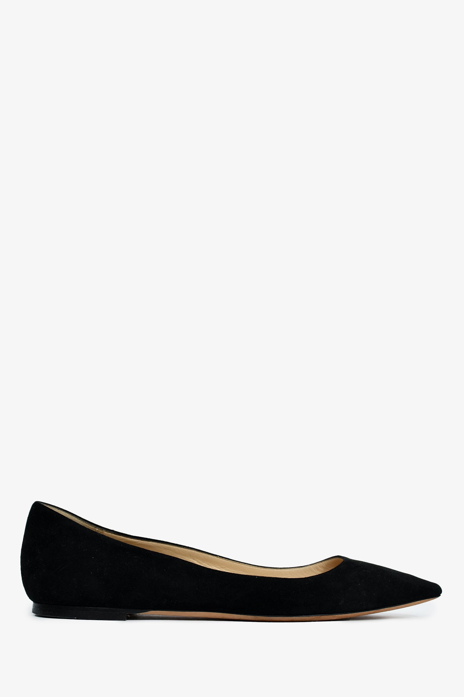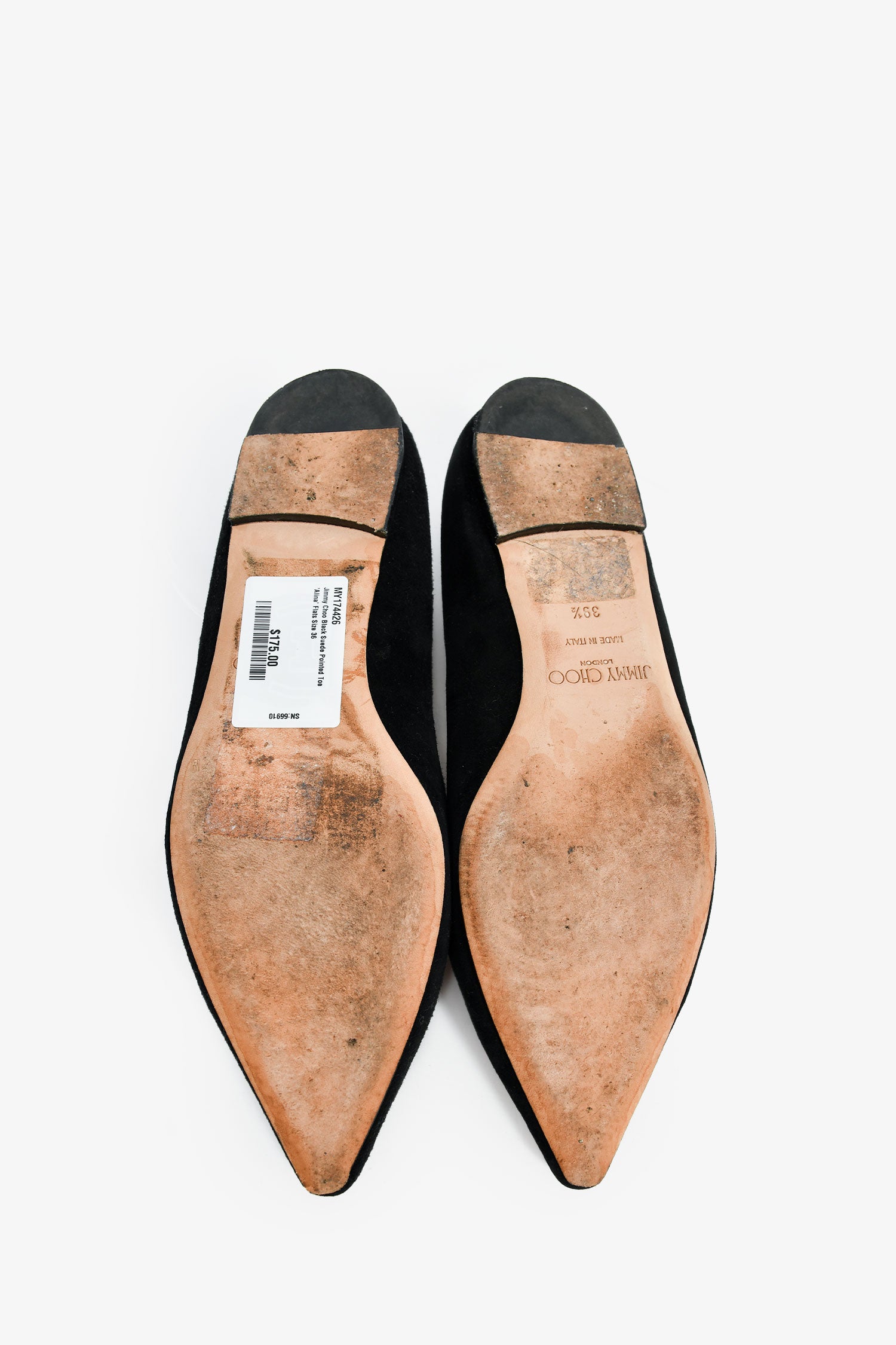 Refresh availabilityJimmy Choo Black Suede Pointed Toe 'Alina' Flats. Pointed toe. Suede outsole. Leather insole. Tonal stitching.