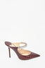 Jimmy Choo Brown Croc Embossed Leather Crystal Bing 100 Heels Size 36.5