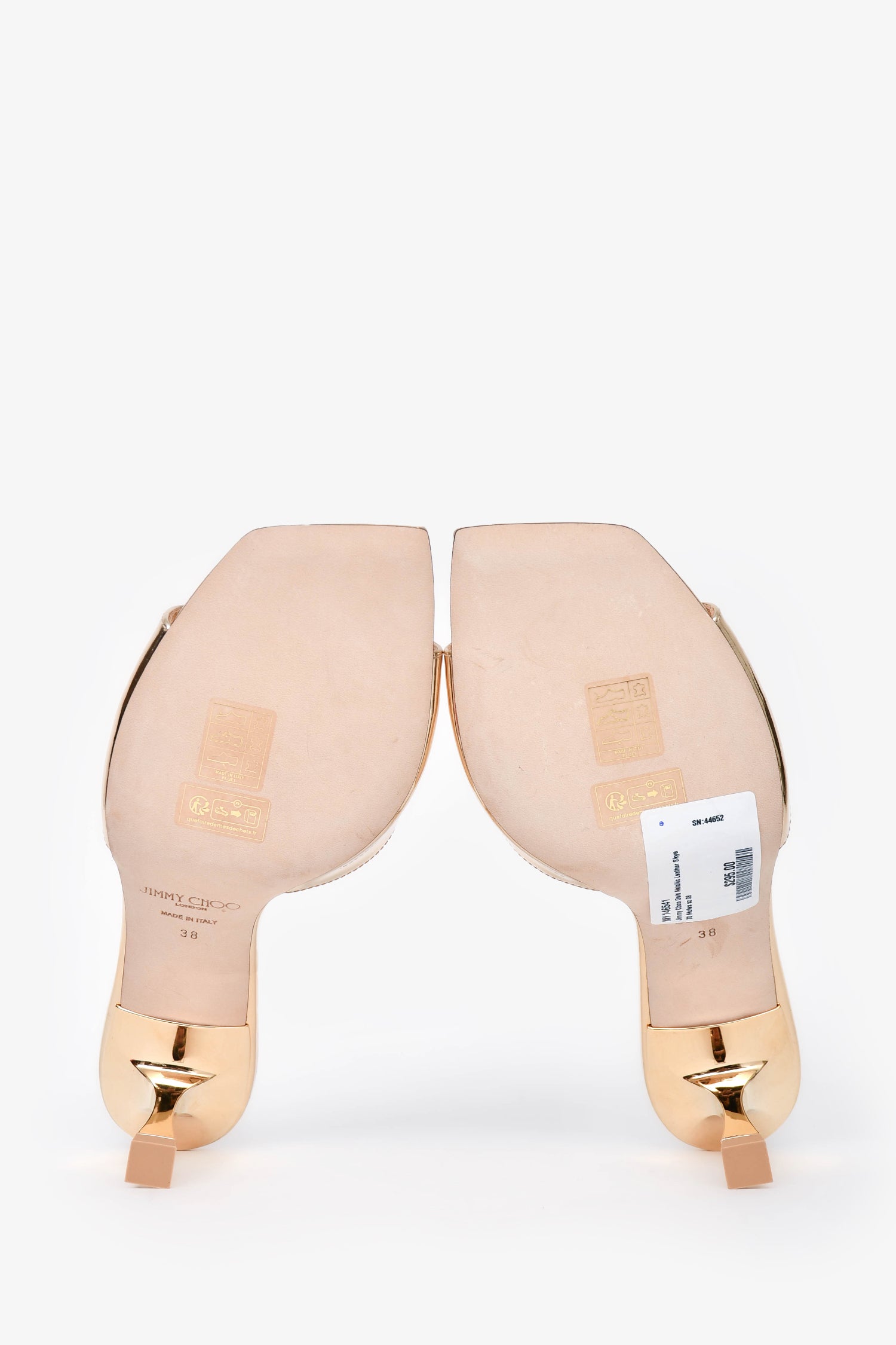 Jimmy Choo Gold Metallic Leather Skye 70 Mules Size 38