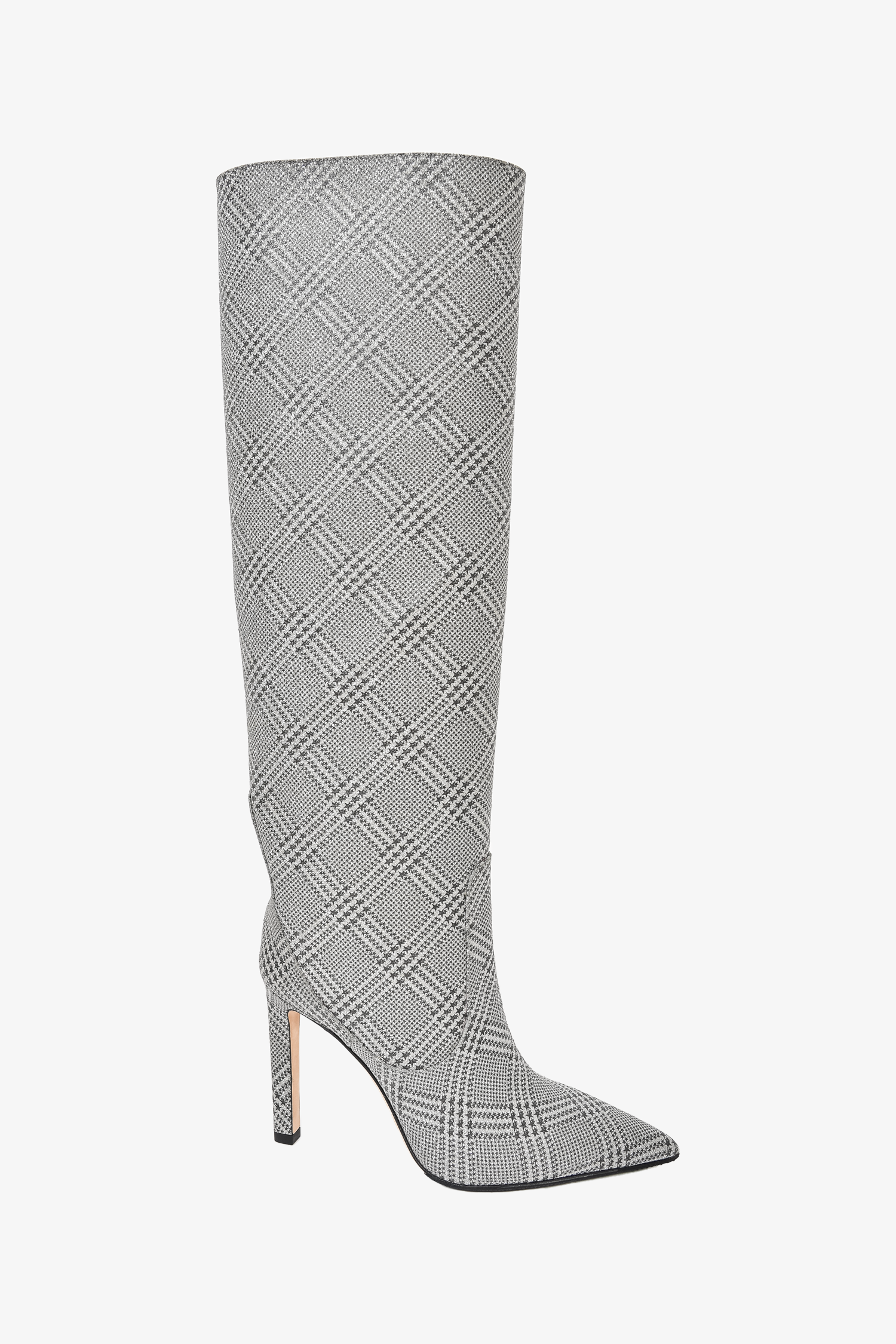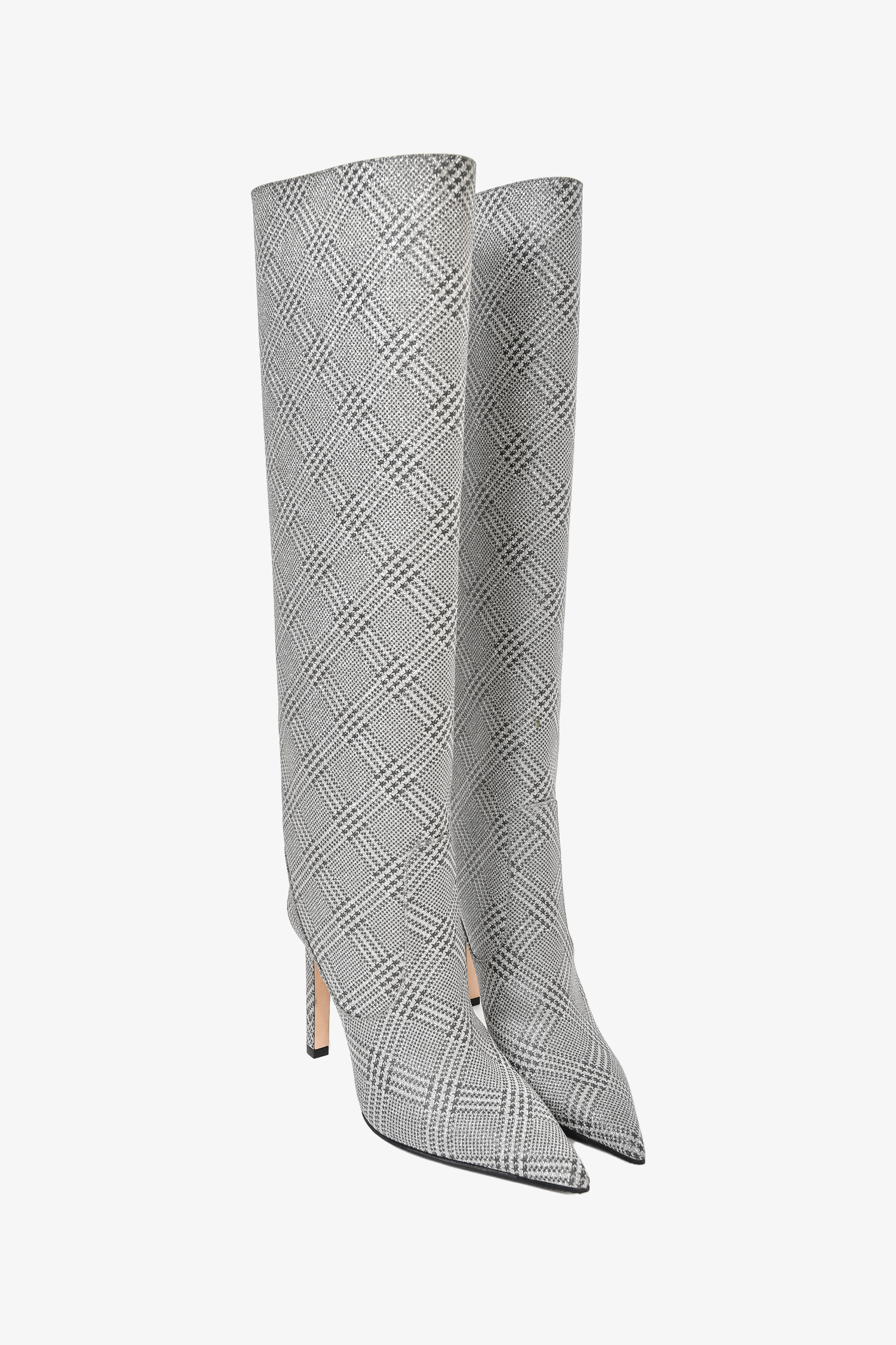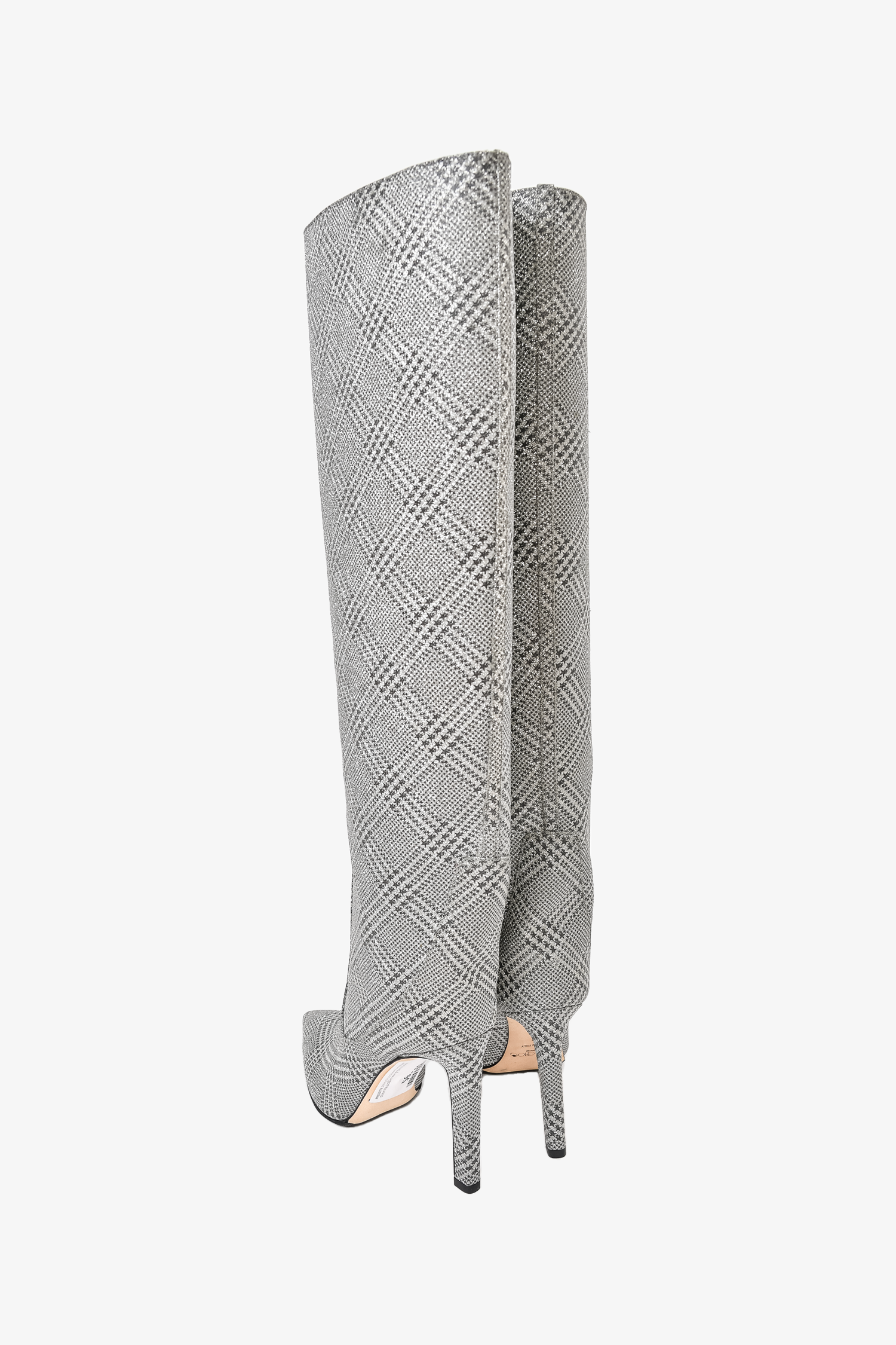 Refresh availabilityJimmy Choo Silver Houndstooth Glitter Mavis 100 Knee High Boots. Pointed toe. Pull-on. Tonal stitching. Topy soles.