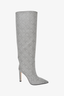 Jimmy Choo Silver Houndstooth Glitter Mavis 100 Knee High Boots Size 37