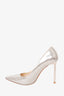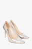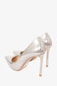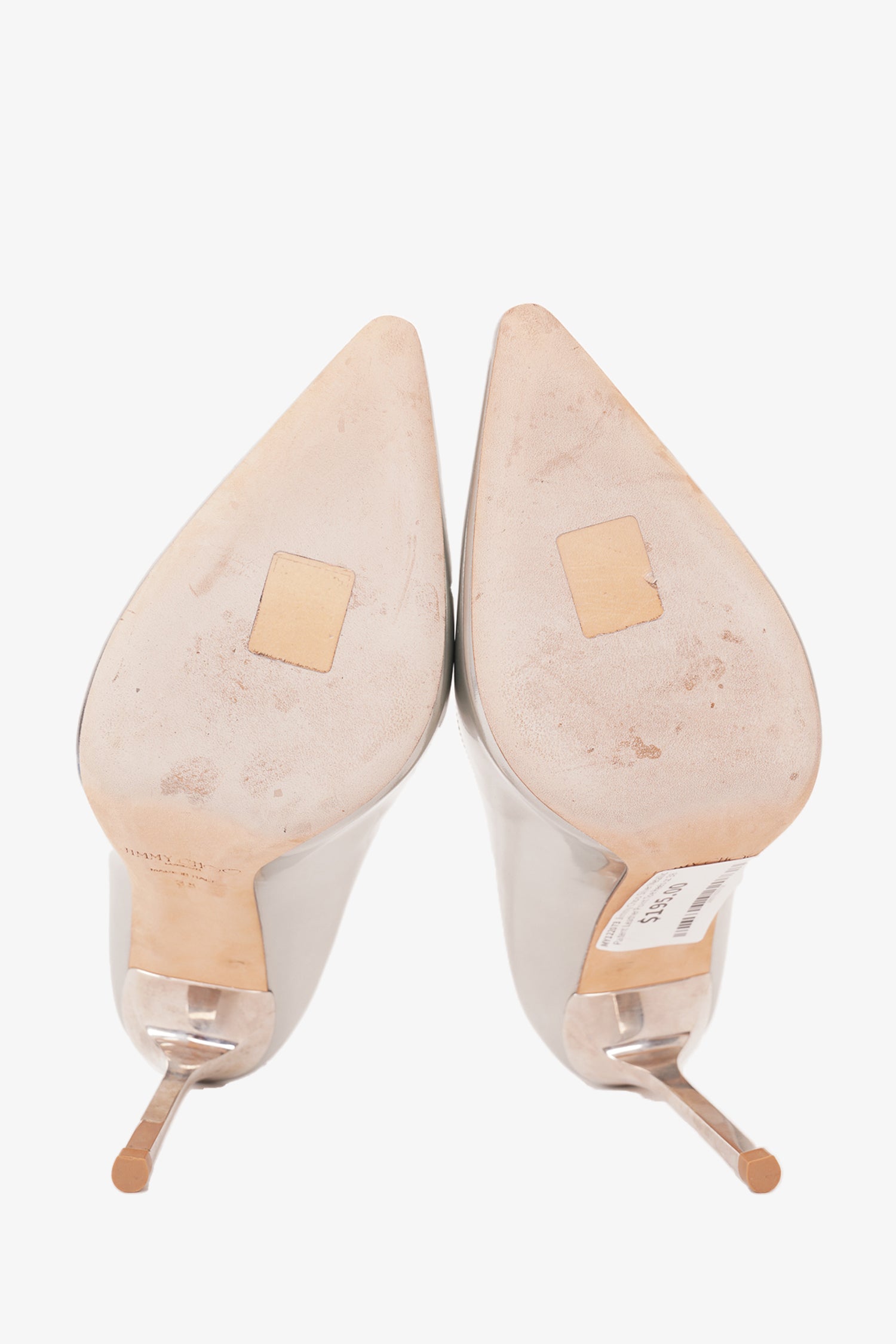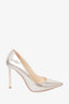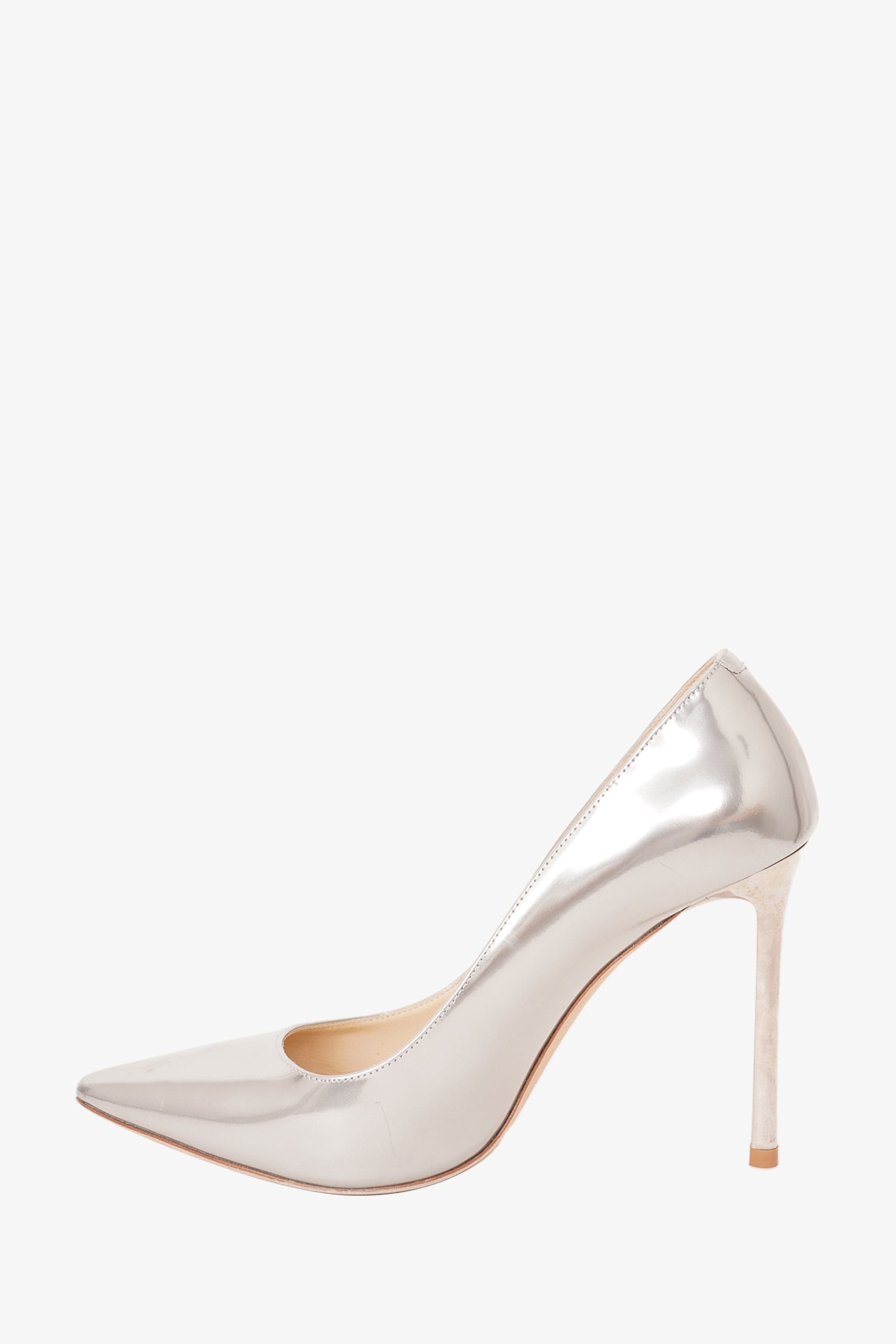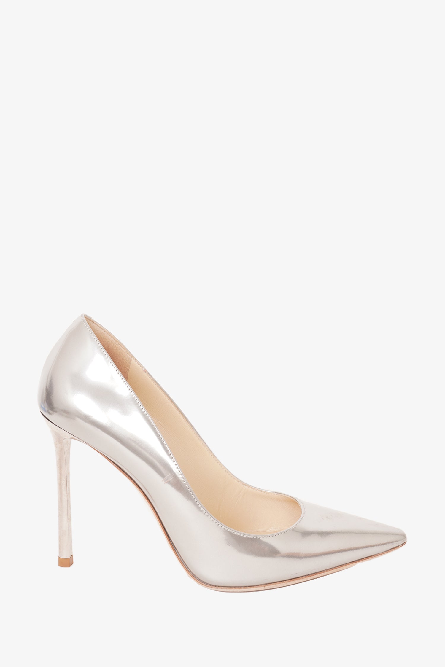 Refresh availabilityJimmy Choo Silver Metallic Patent Leather Point Toe Heels. Pointed toe. Tonal stitching.