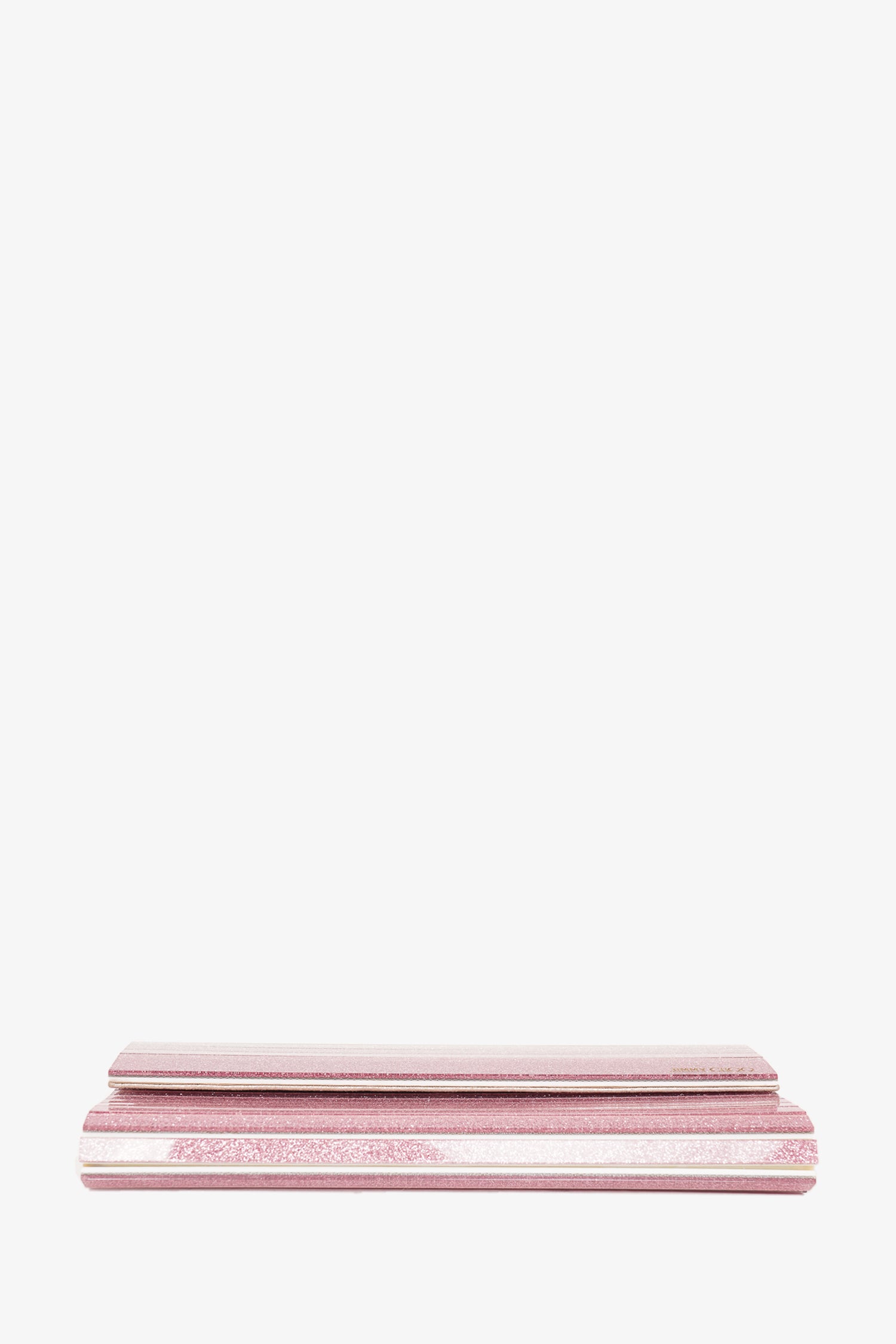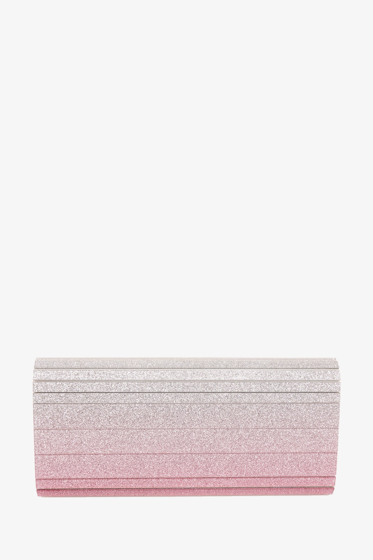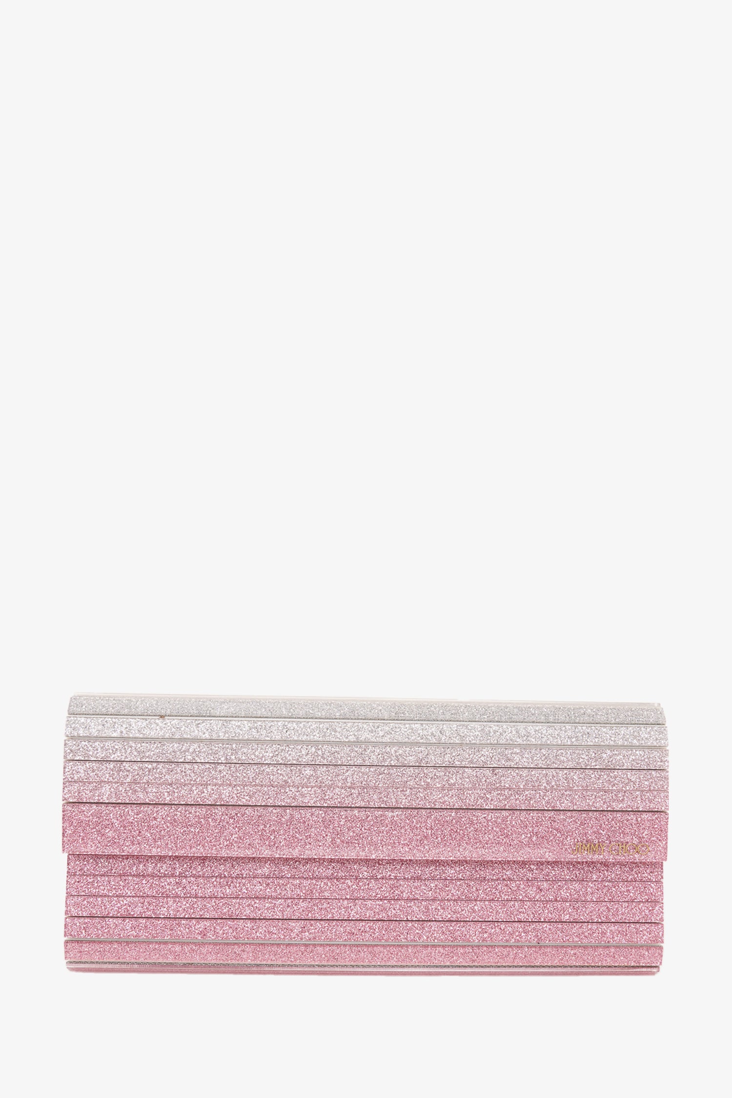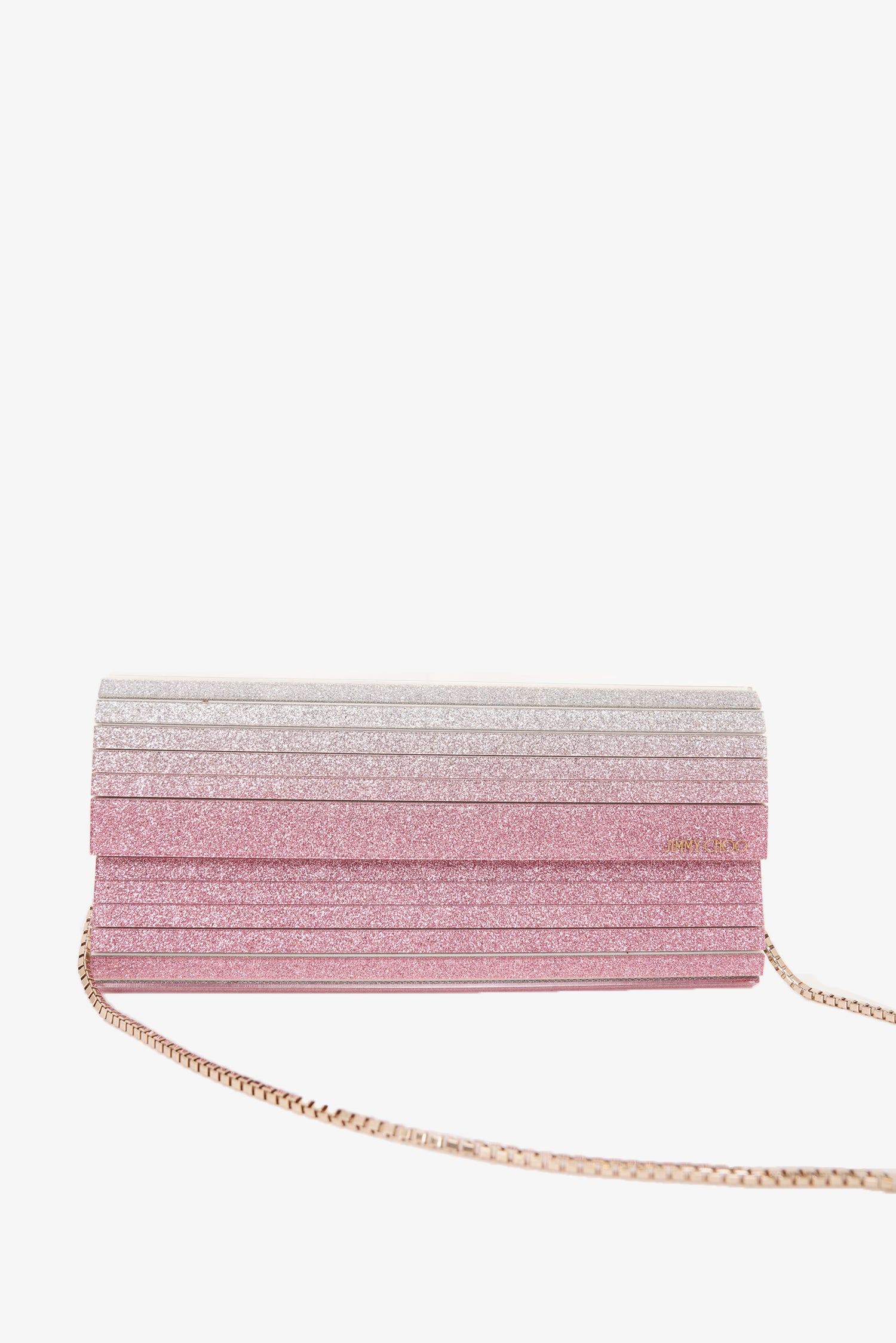 Jimmy Choo Silver/Pink 'Sweetie' Glitter Acrylic Clutch with Chain