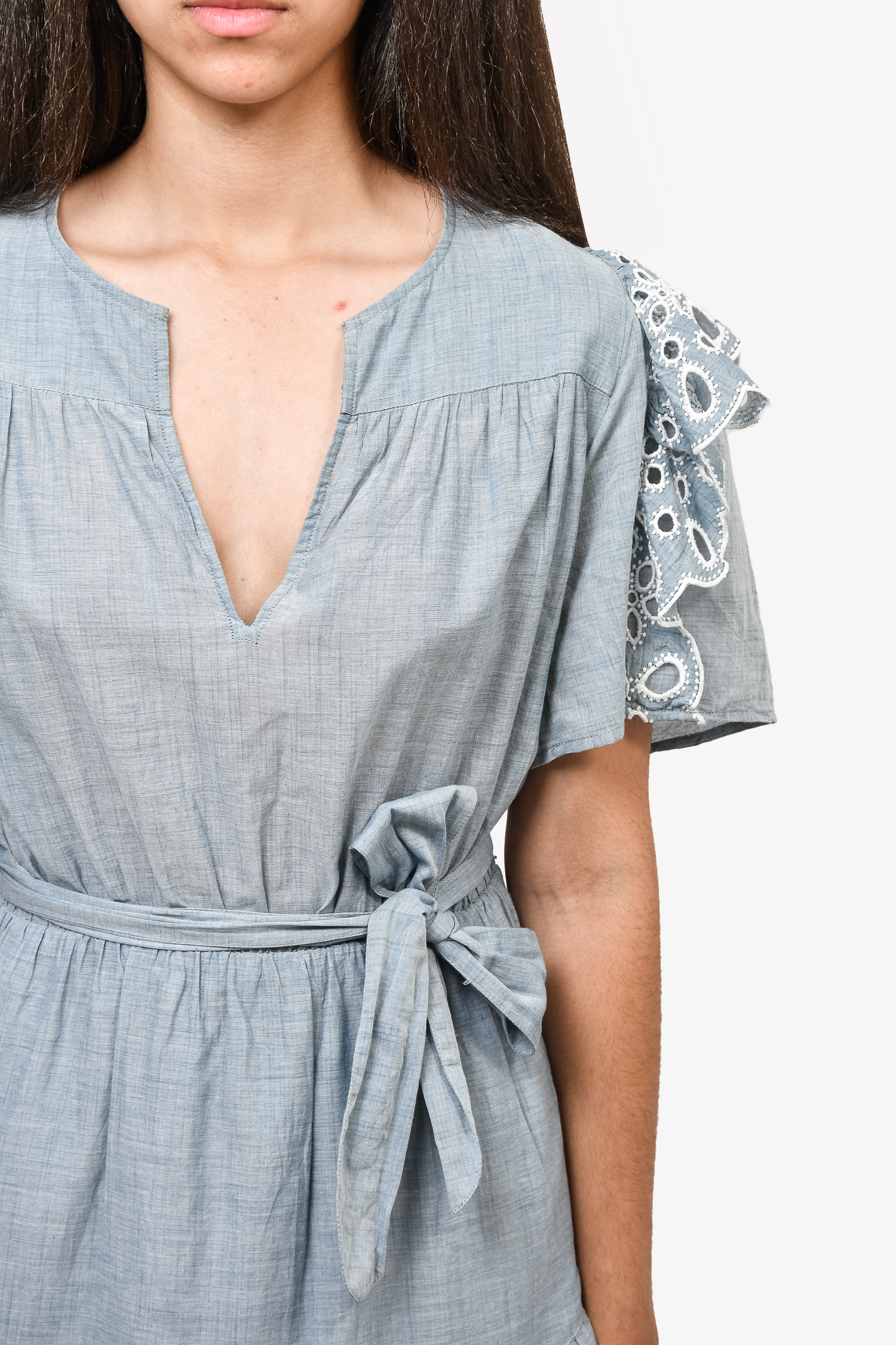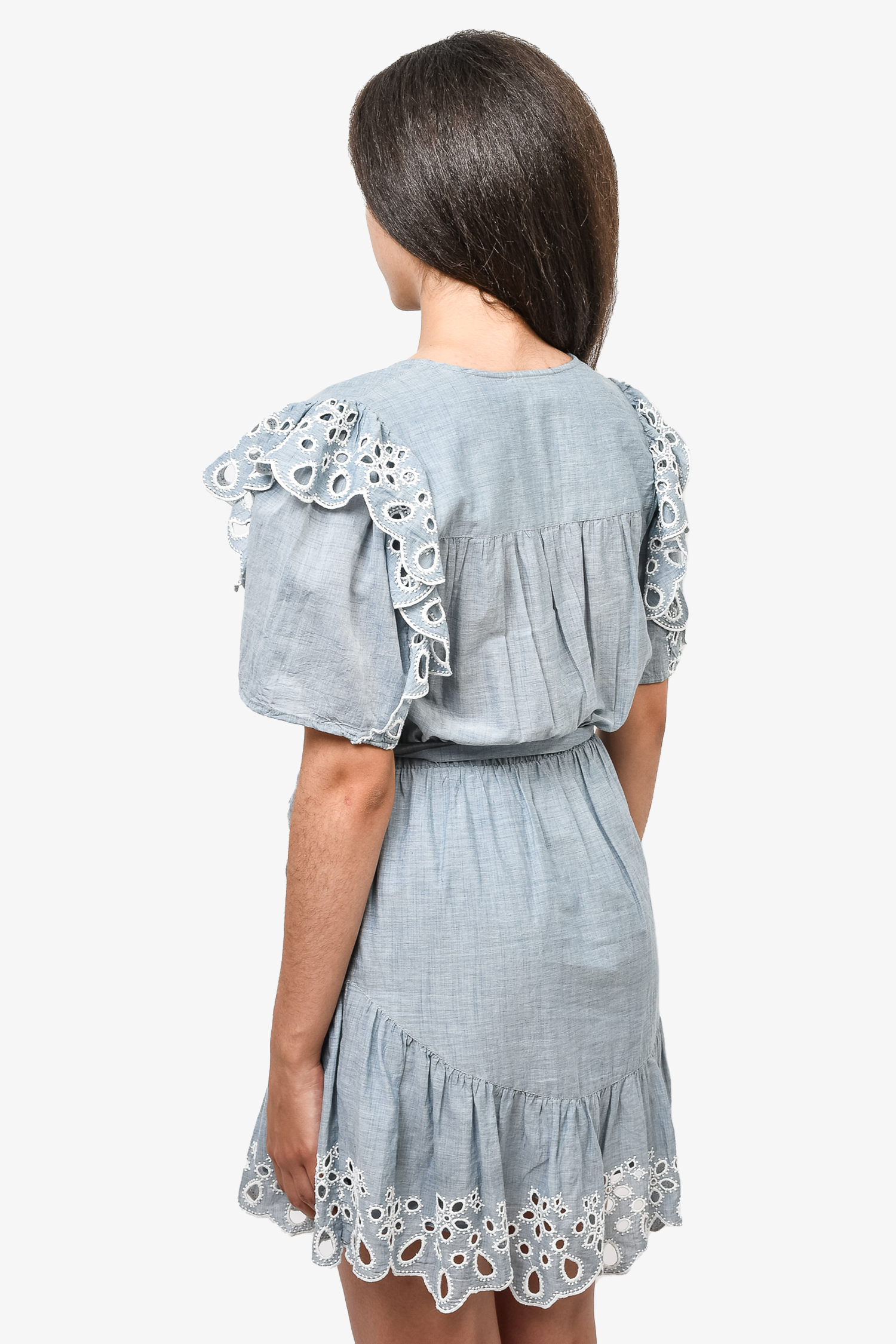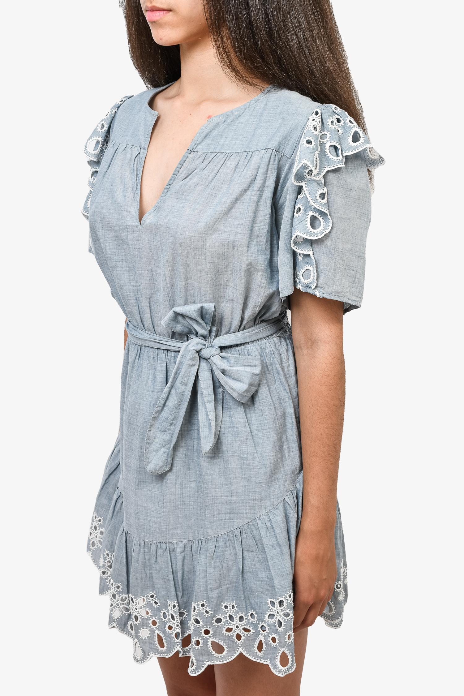 Joie Blue/White Cotton Eyelet Detailed S/S Mini Dress sz S
