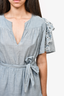 Joie Blue/White Cotton Eyelet Detailed Mini Dress. Pullover design. V neck. Waist belt. Partially lined. Tonal stitching.