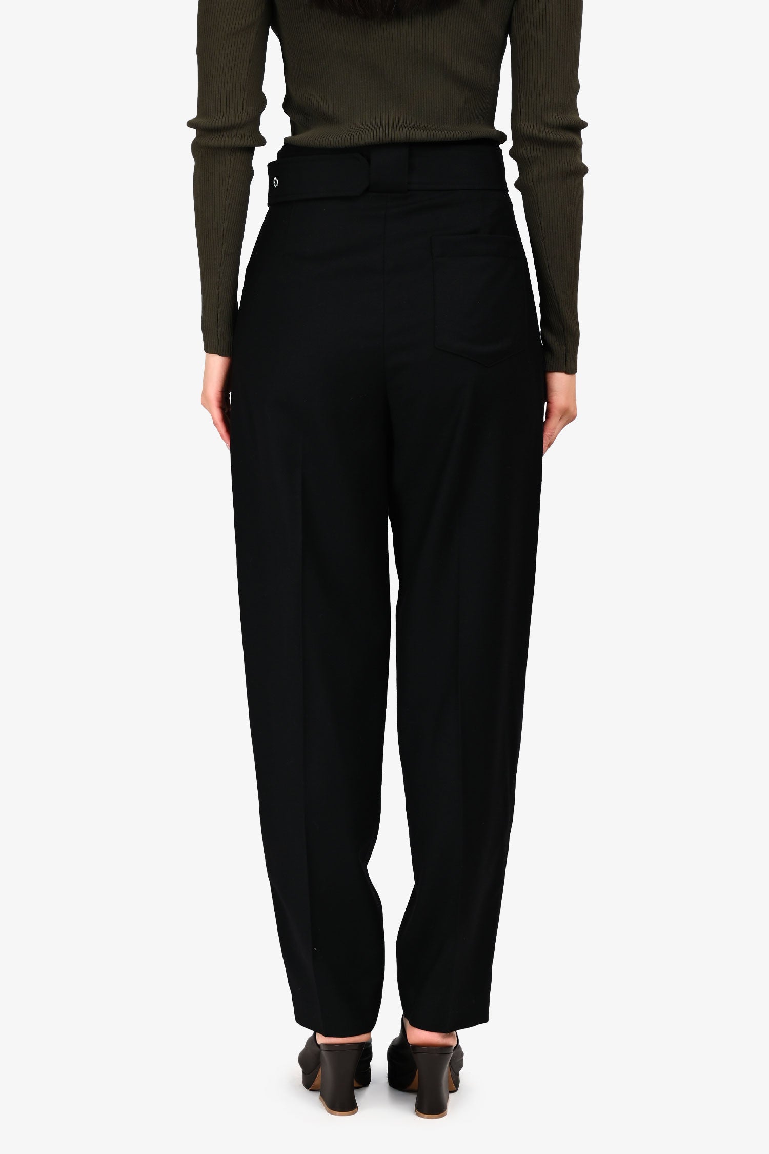 Judith & Charles Black Wool Belted Paperbag Trousers Size 0