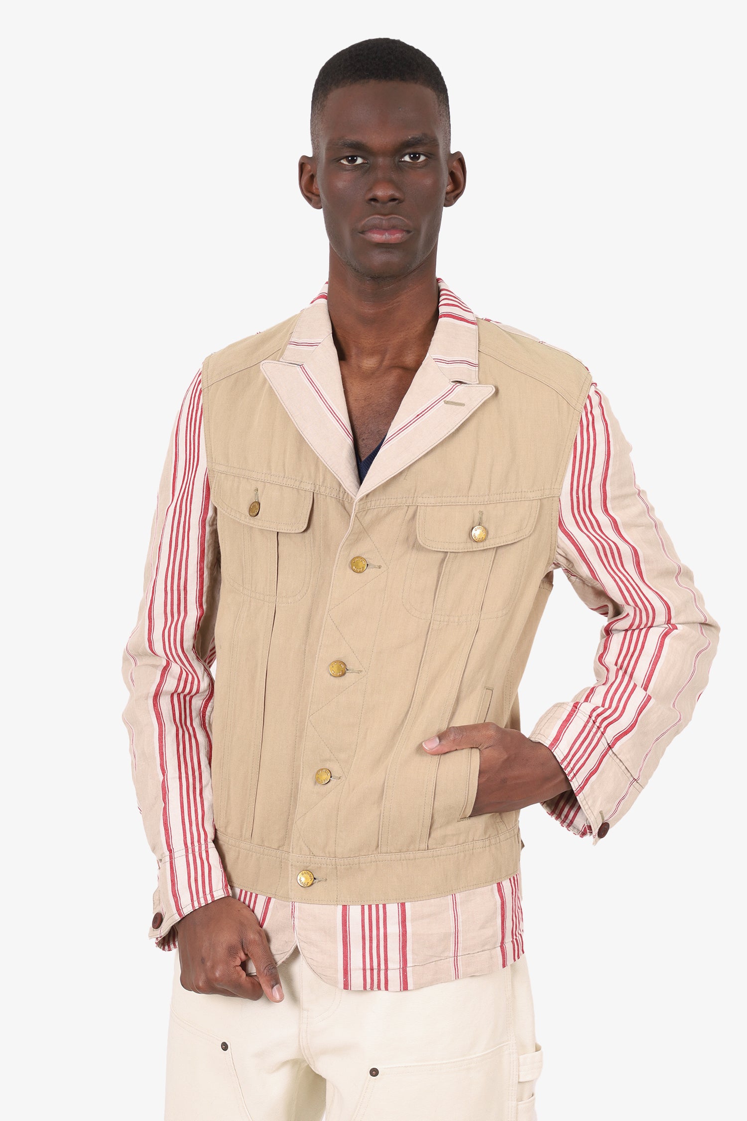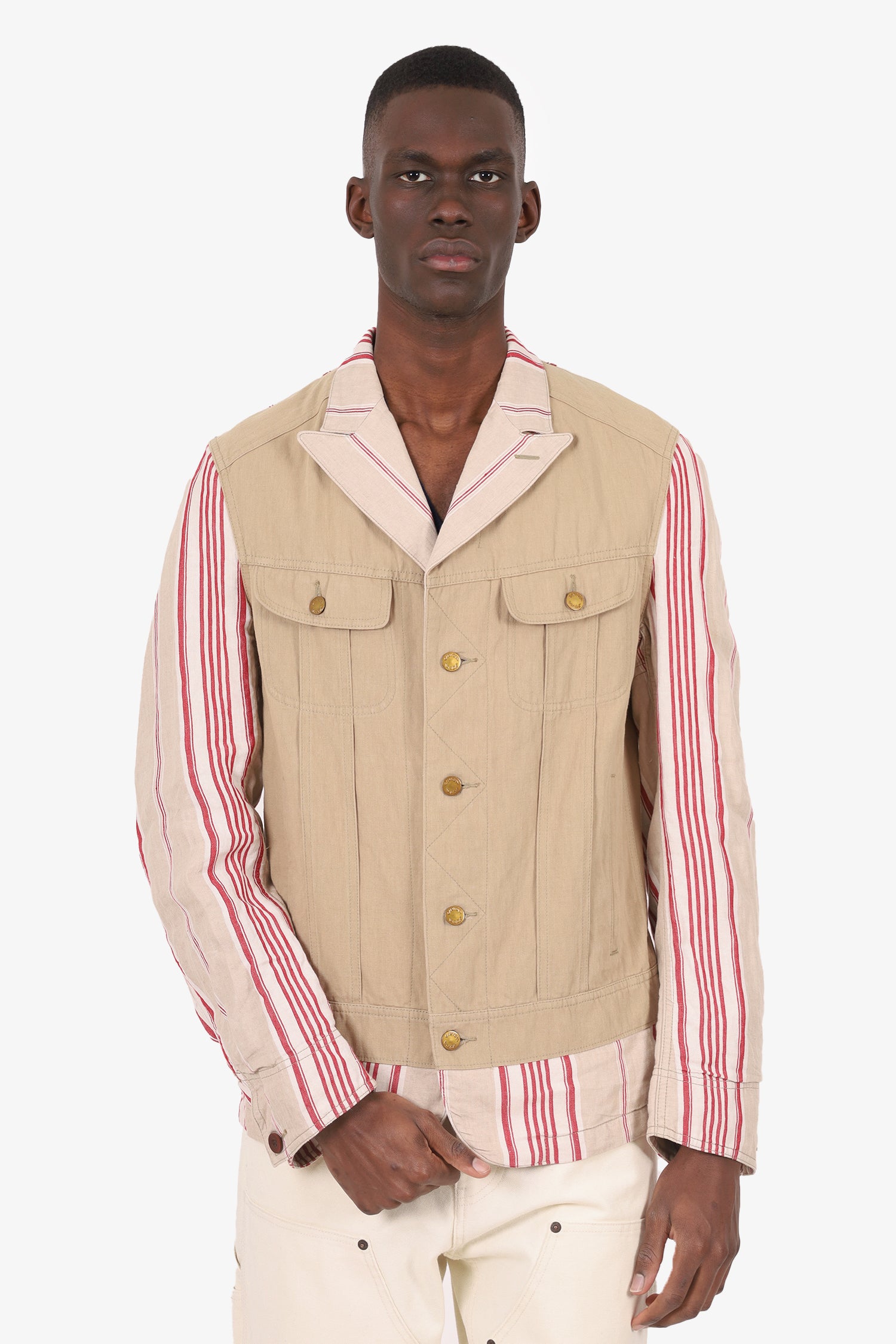 Junya Watanabe Comme des Garçons Khaki Linen Striped Jacket Size M Mens