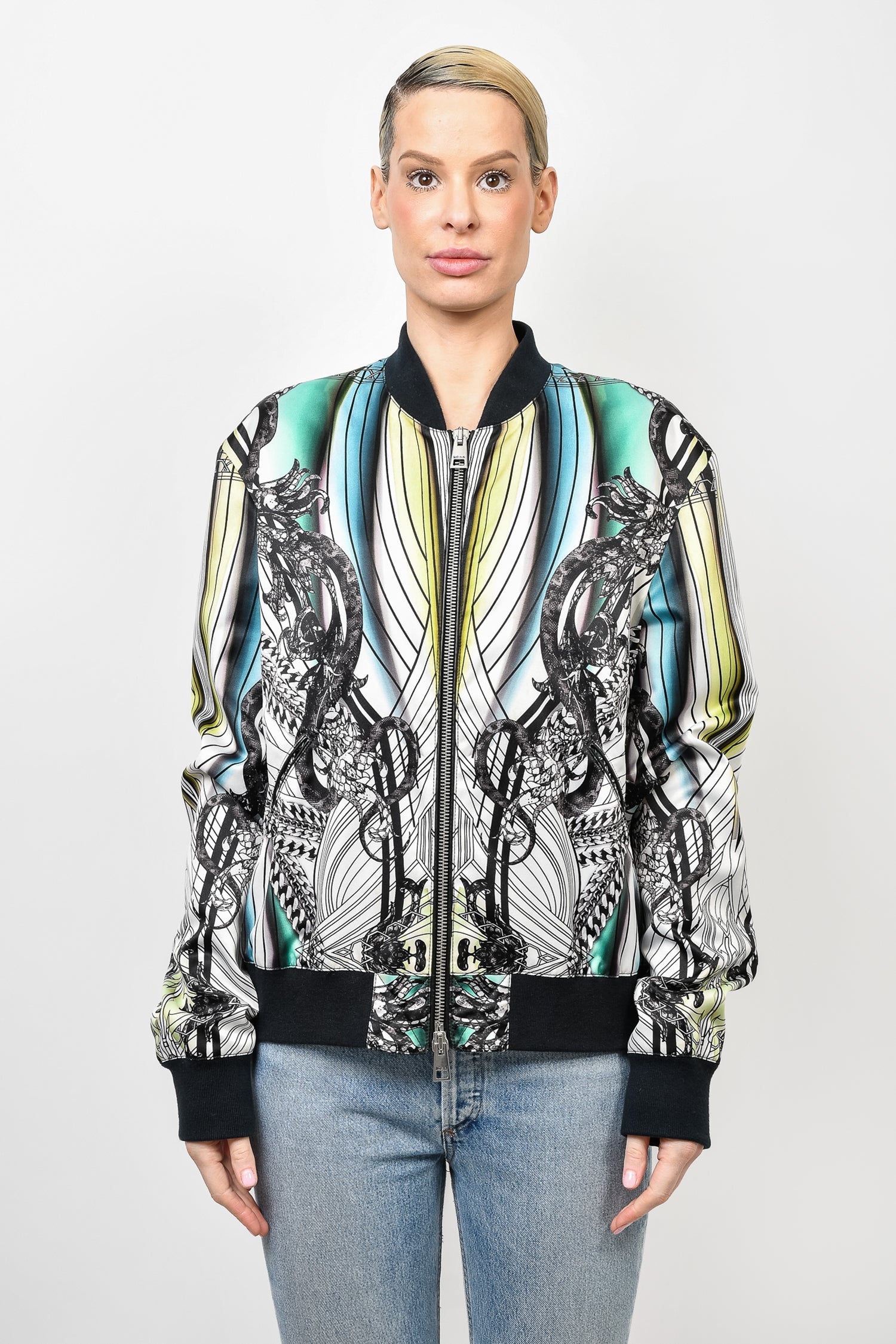 Just Cavalli Mens White/Multicolor Pattern Bomber Jacket Size 54 Mens