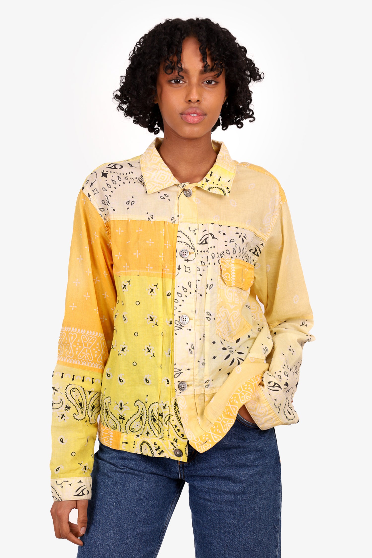 Kapital Yellow/Black Paisley Printed Button-Up Top Size L