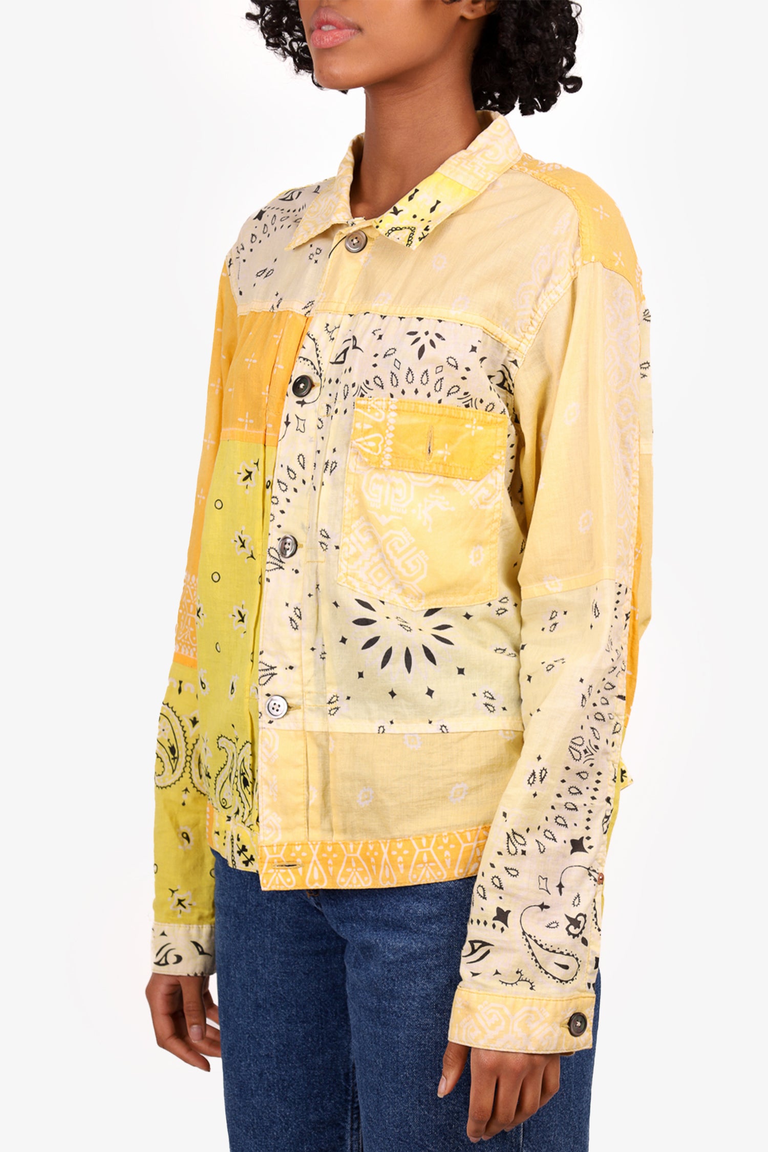 Refresh availabilityKapital Yellow/Black Paisley Printed Button-Up Top. Button-up closure on front. Single front pocket on left side with button closure. Unlined. Tonal stitching. Adjustable strap on back of exterior. Silver and rose gold-toned hardware.