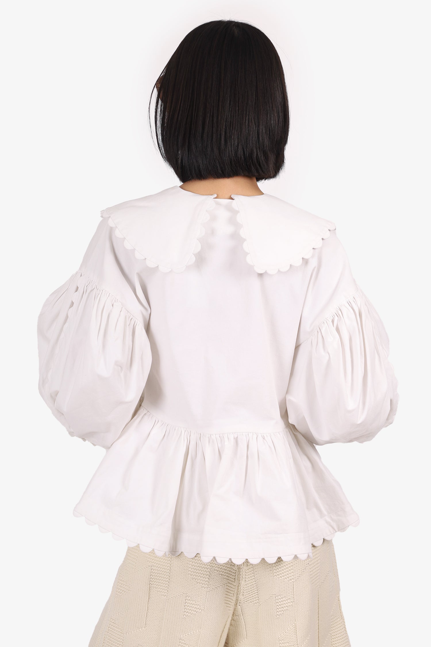 Kika Vargas White Scallop-Trim Puffy-Sleeve Top with Removable Collar Size S