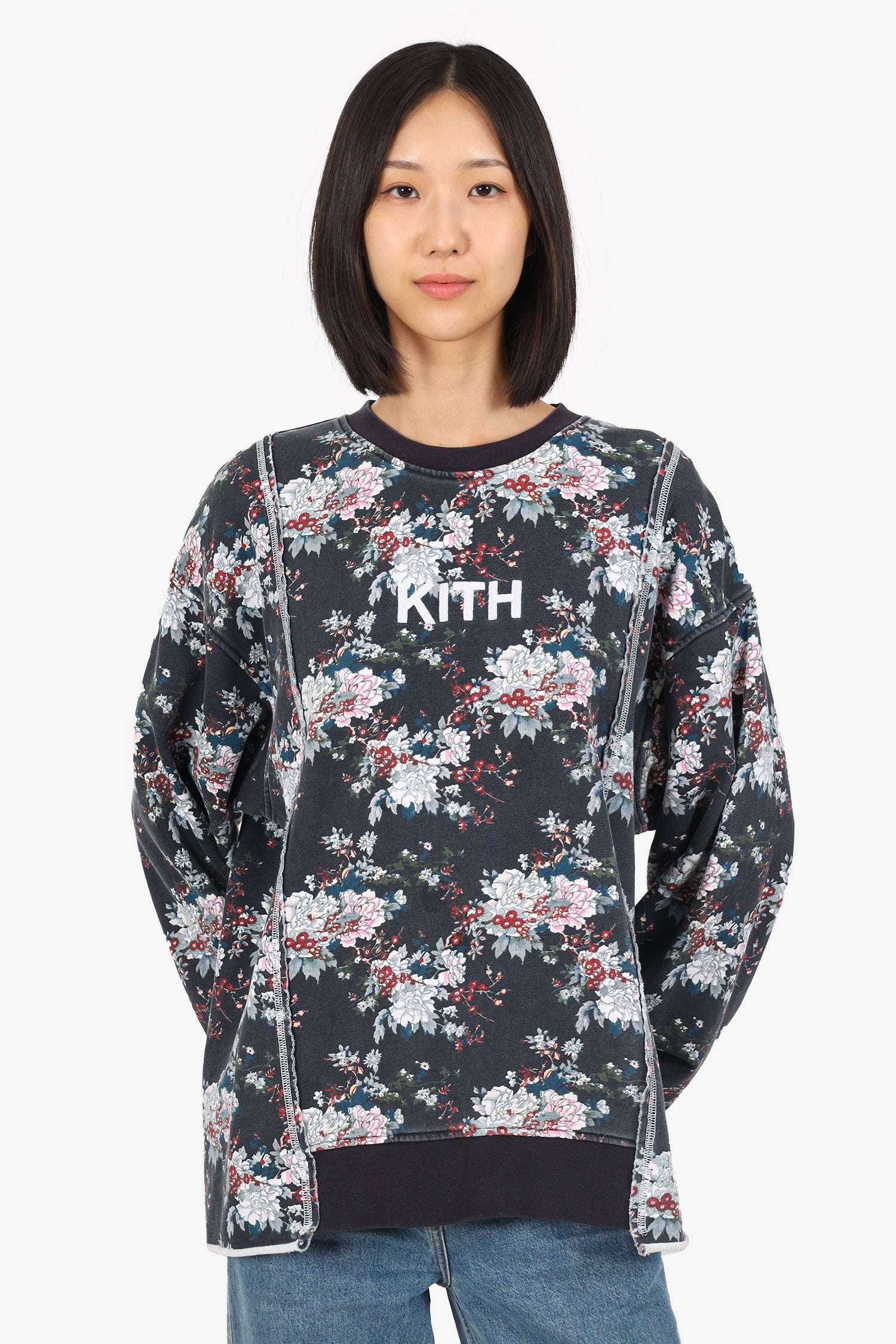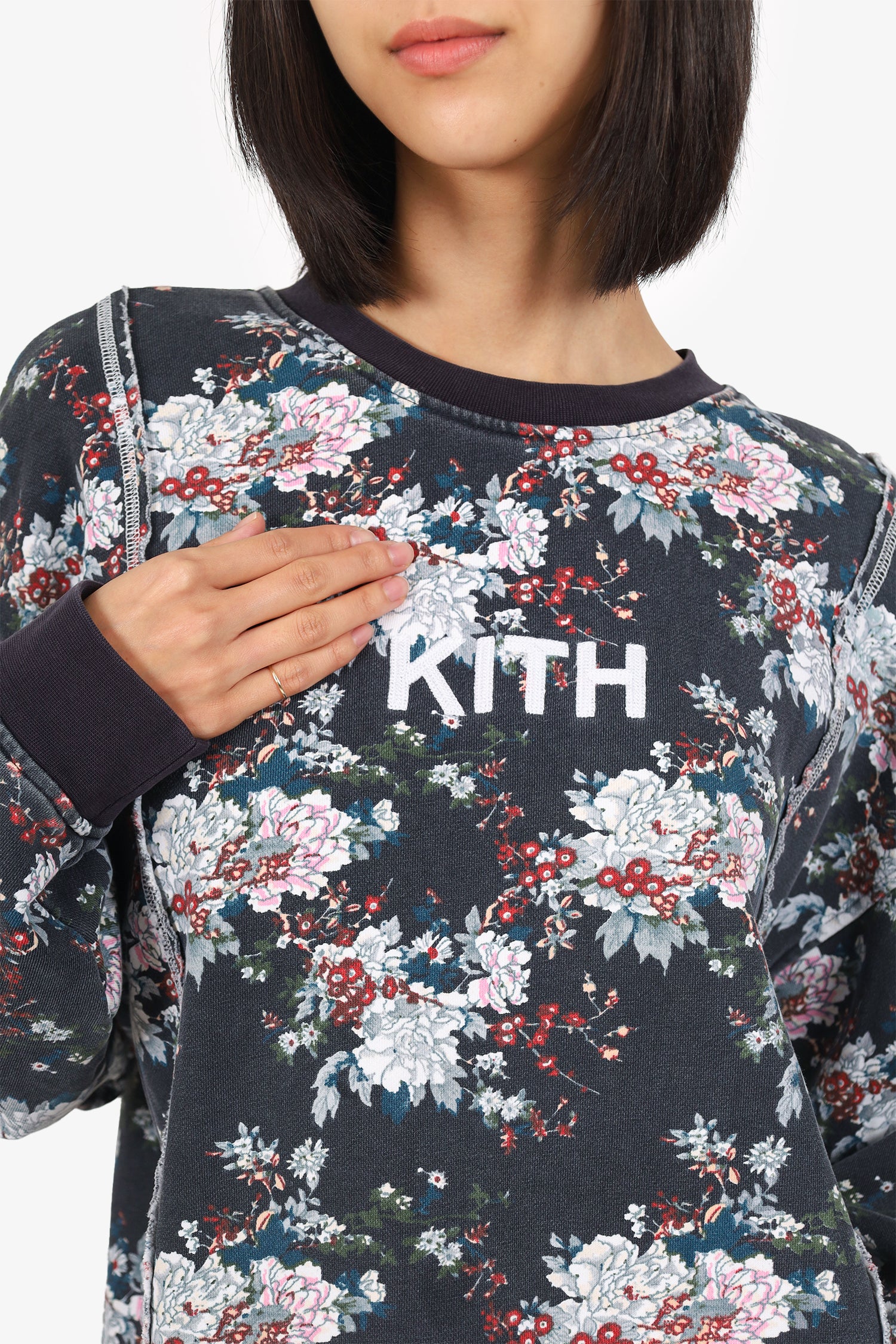 Refresh availabilityKith Black/White Floral Print 'Kith' Embroidered. Pull-on. Round-neckline. Ribbed neckline, sleeve cuffs and bottom hem. Top stitching. Tonal stitching.