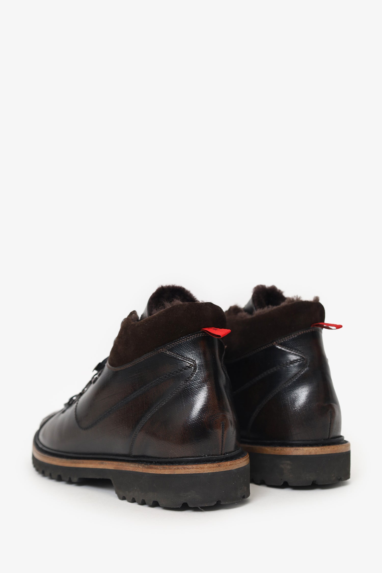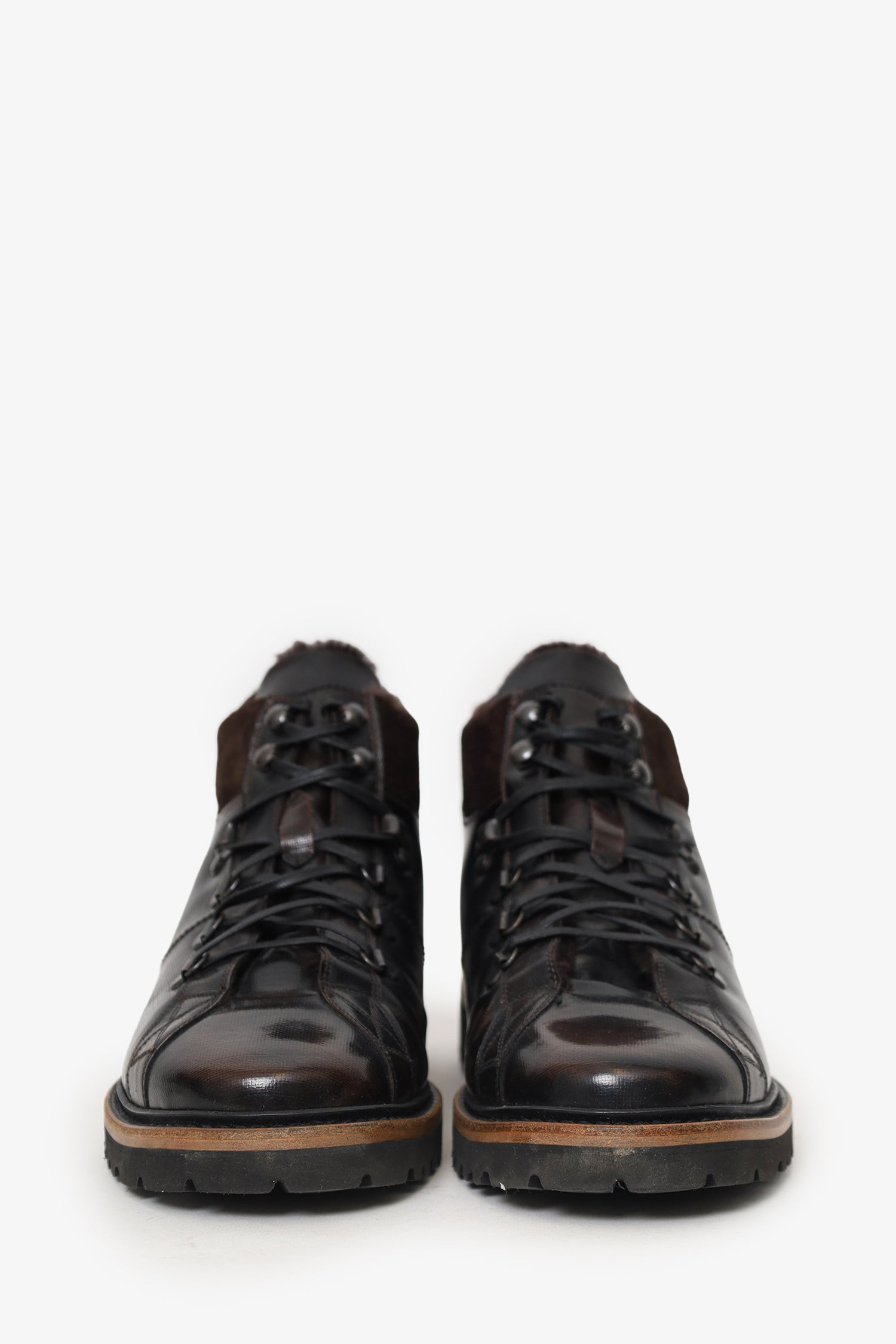 Kiton Brown Leather/Shearling Lace Up Boots Size 8 Mens