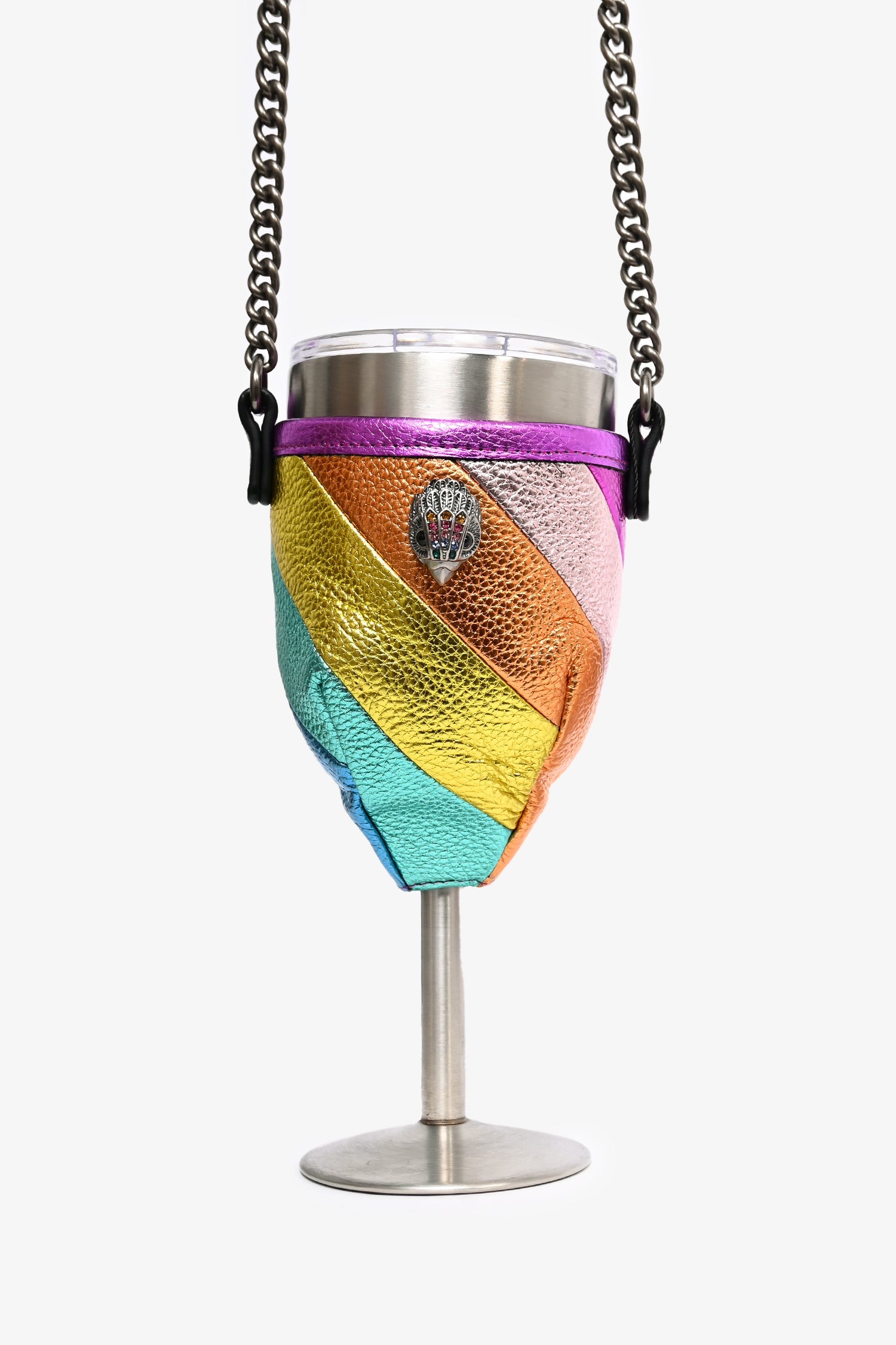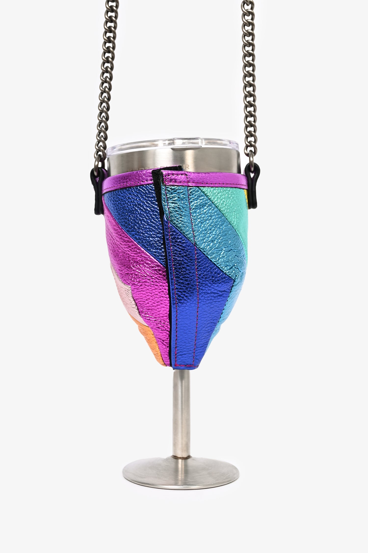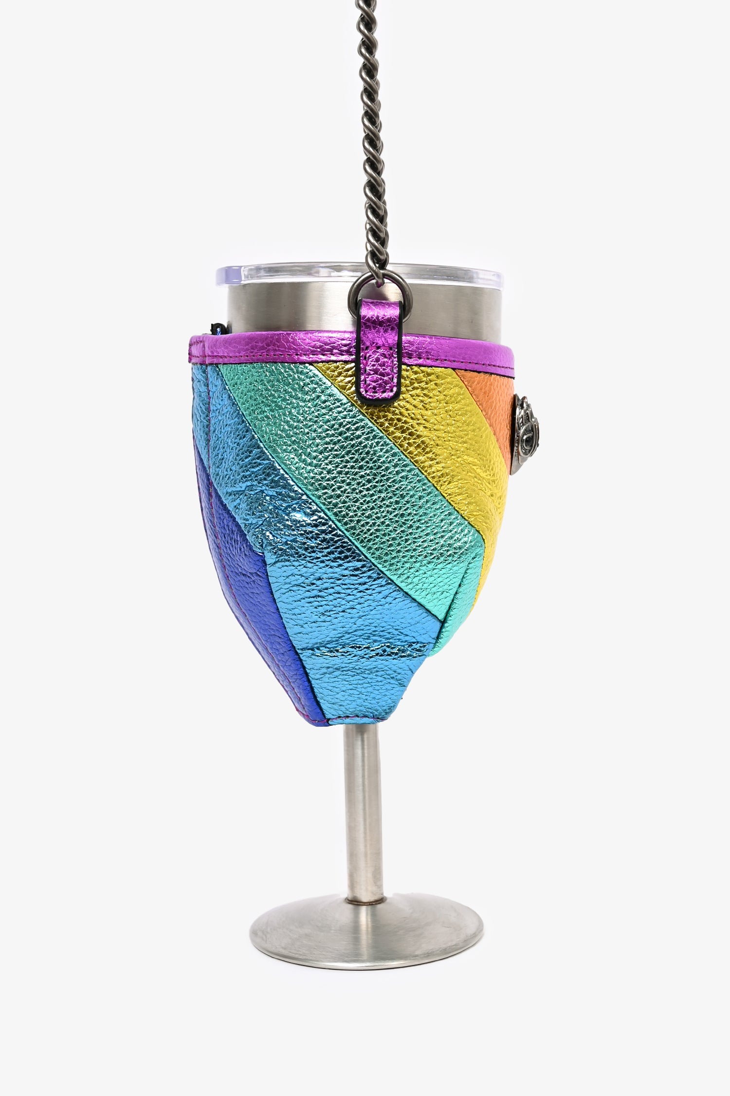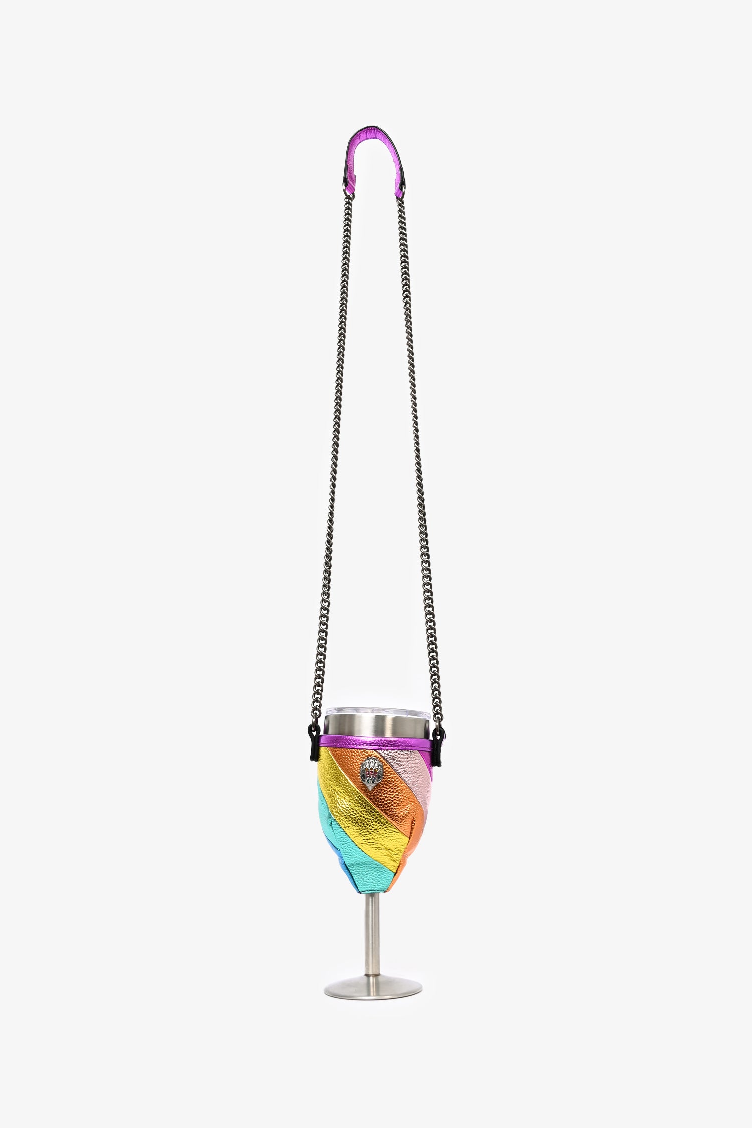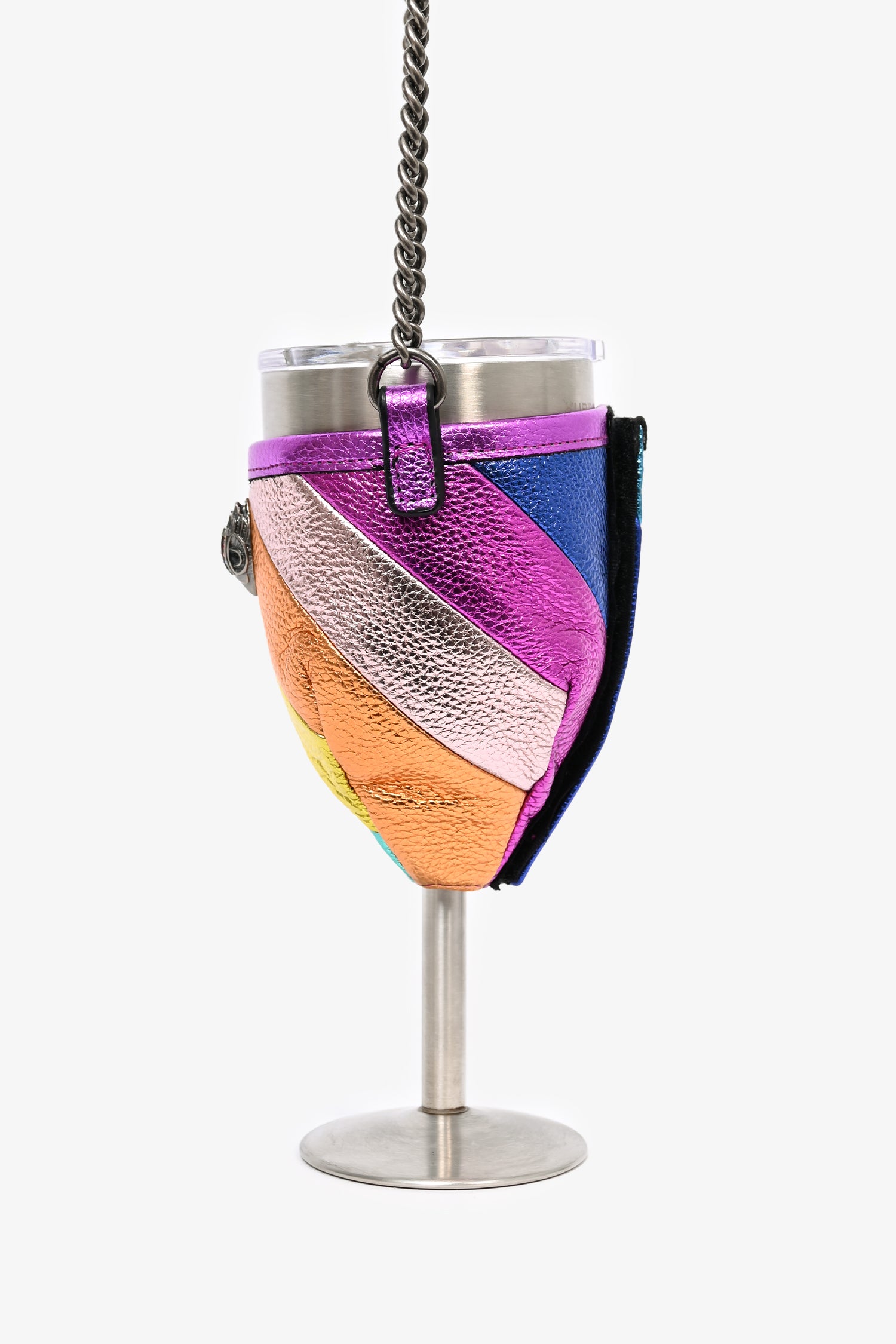 Refresh availabilityKurt Geiger Rainbow Leather Portable Wine Glass Holder with Chain. Velcro closure. Silver-tone hardware.