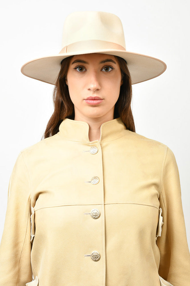 Lack of Colour Beige Wool 'Benson' Hat with Velvet Trim