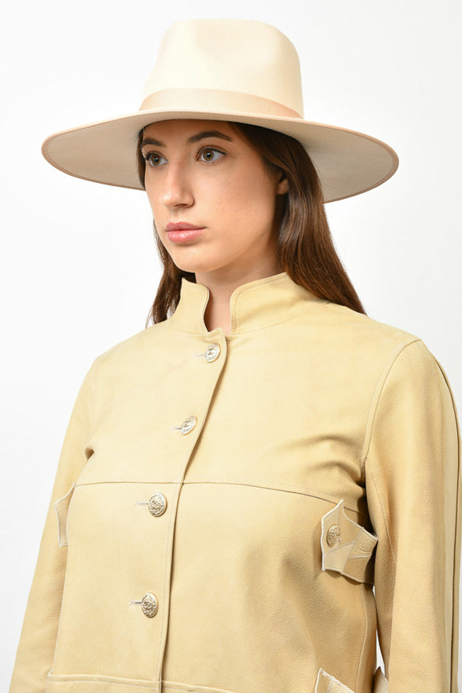 Refresh availabilityLack of Colour Beige Wool 'Benson' Hat with Velvet Trim. Beige interior lining. Tonal stitching.