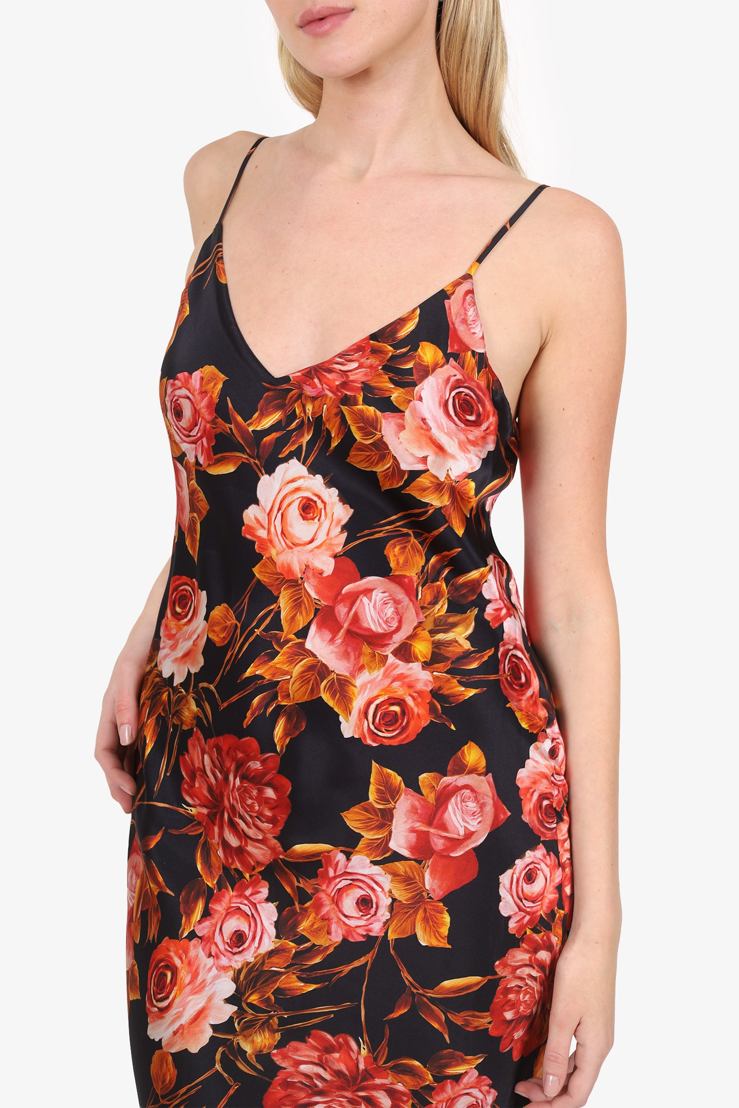 Refresh availabilityL'Agence Black Rose Print V-Neck Slip Dress. Slip-on. V-neckline. Lined interior. Tonal stitching.