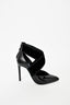 Lanvin Black Leather Suede Wrap Pointed Toe Heels Size 37