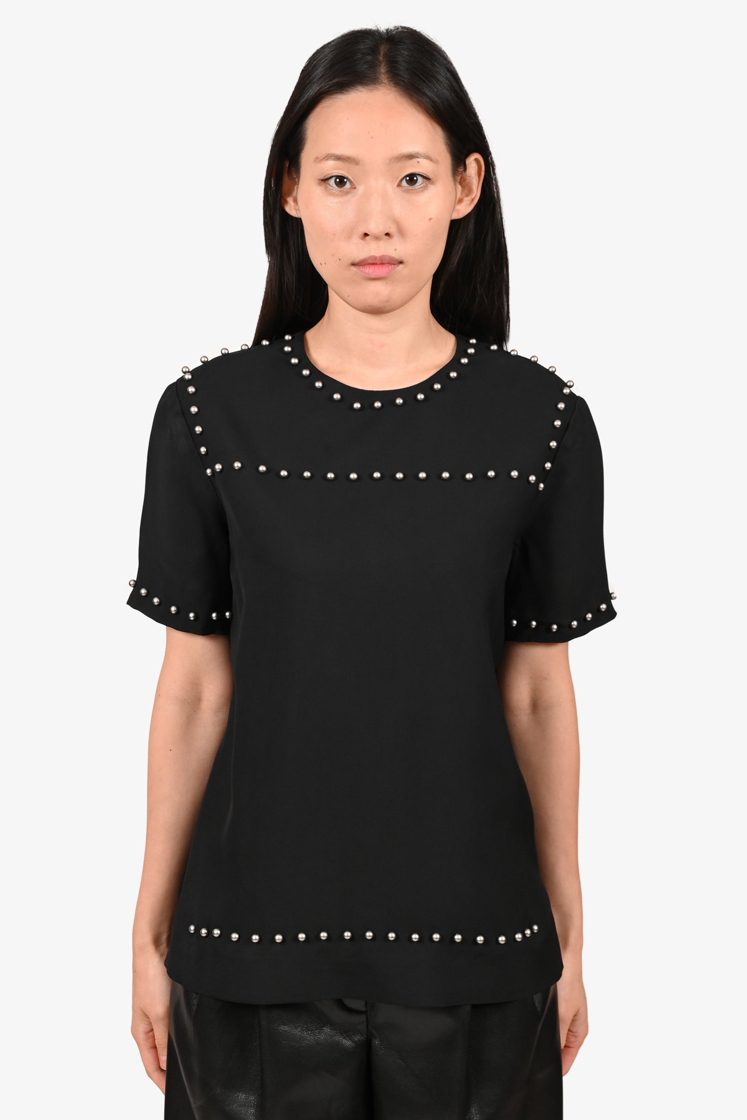 Refresh availabilityLanvin Black Studded Top. Round neck. Rear zip hook closure. Lined. Tonal stitching.