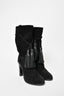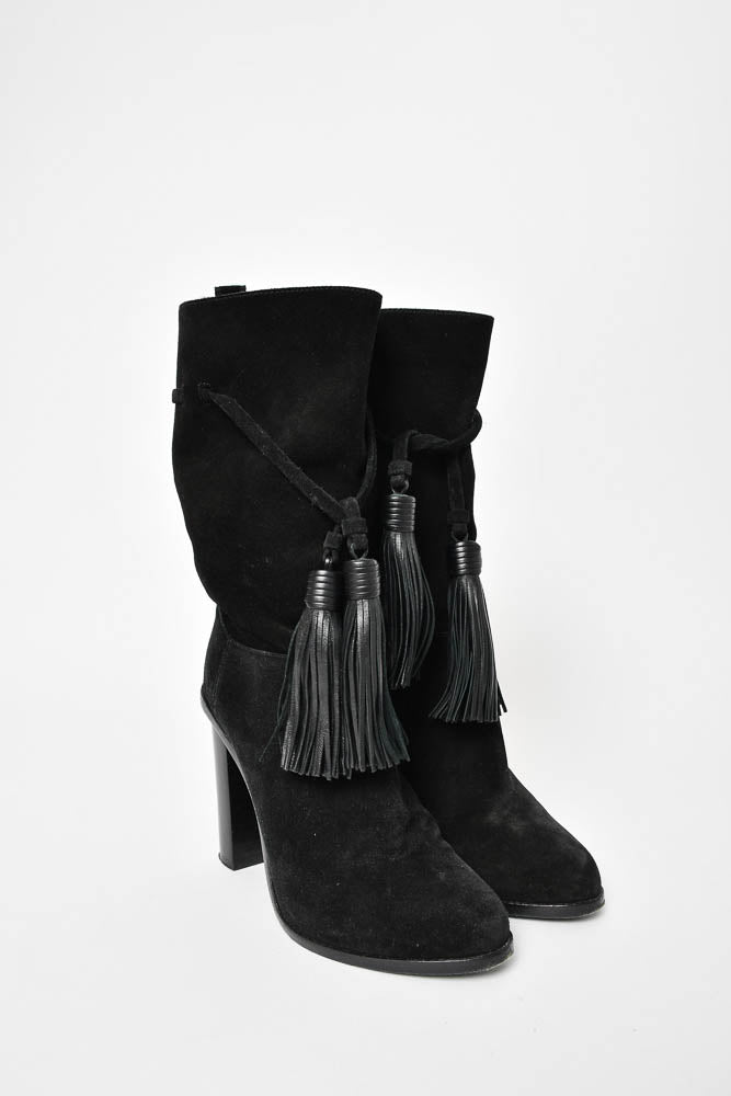 Lanvin Black Suede Calf Heel Boot With Tassel Size 38