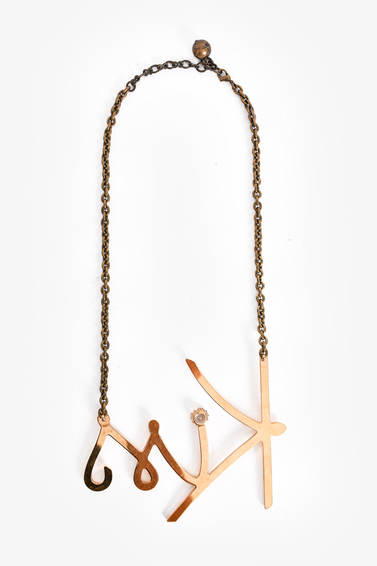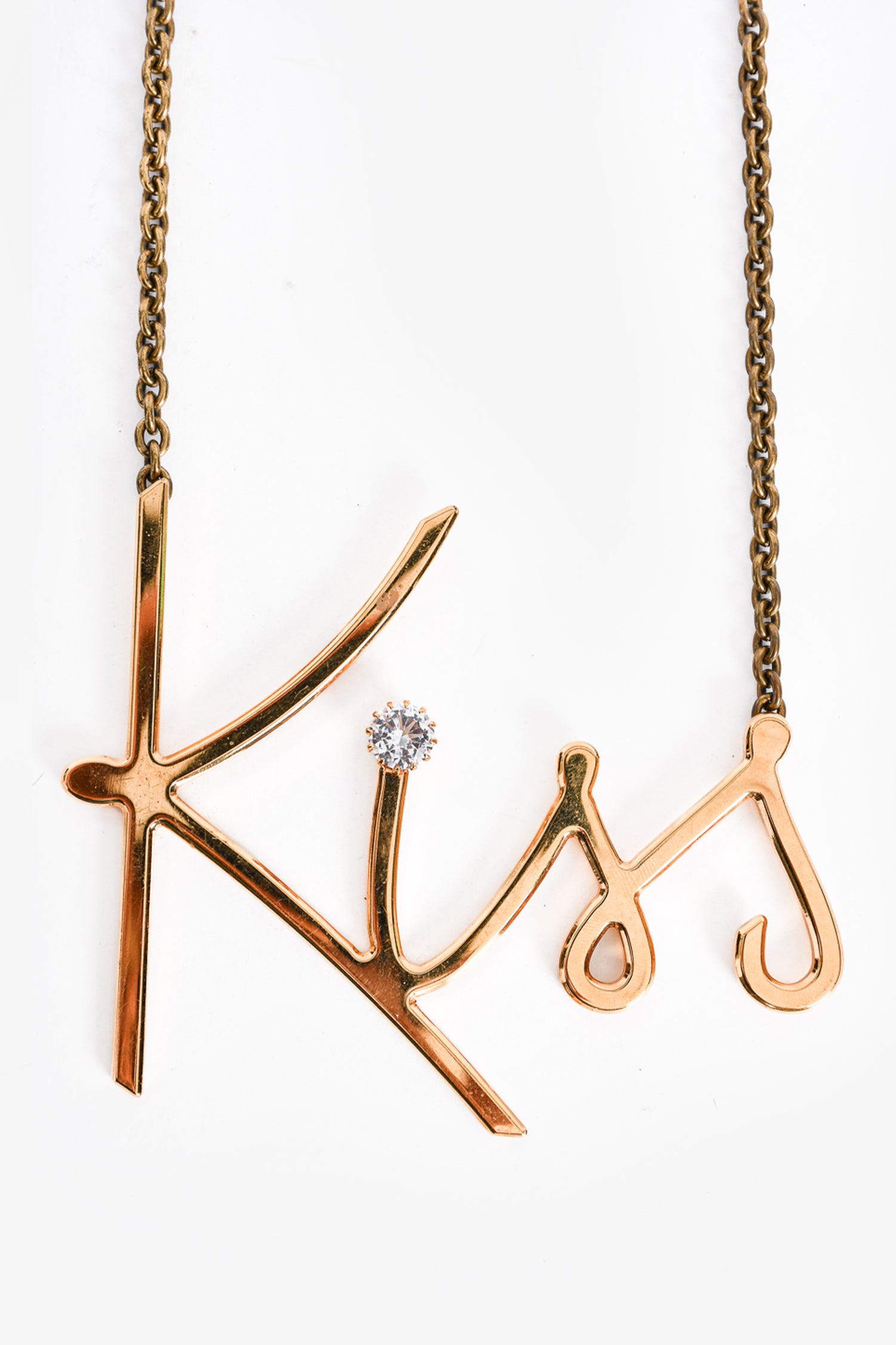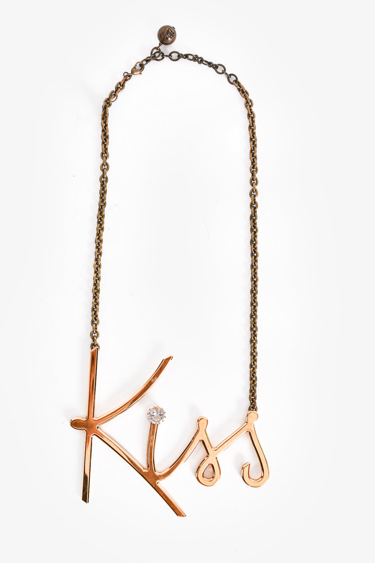 Refresh availabilityLanvin Gold Toned Metal 'Kiss' Necklace. Lobster clasp closure.