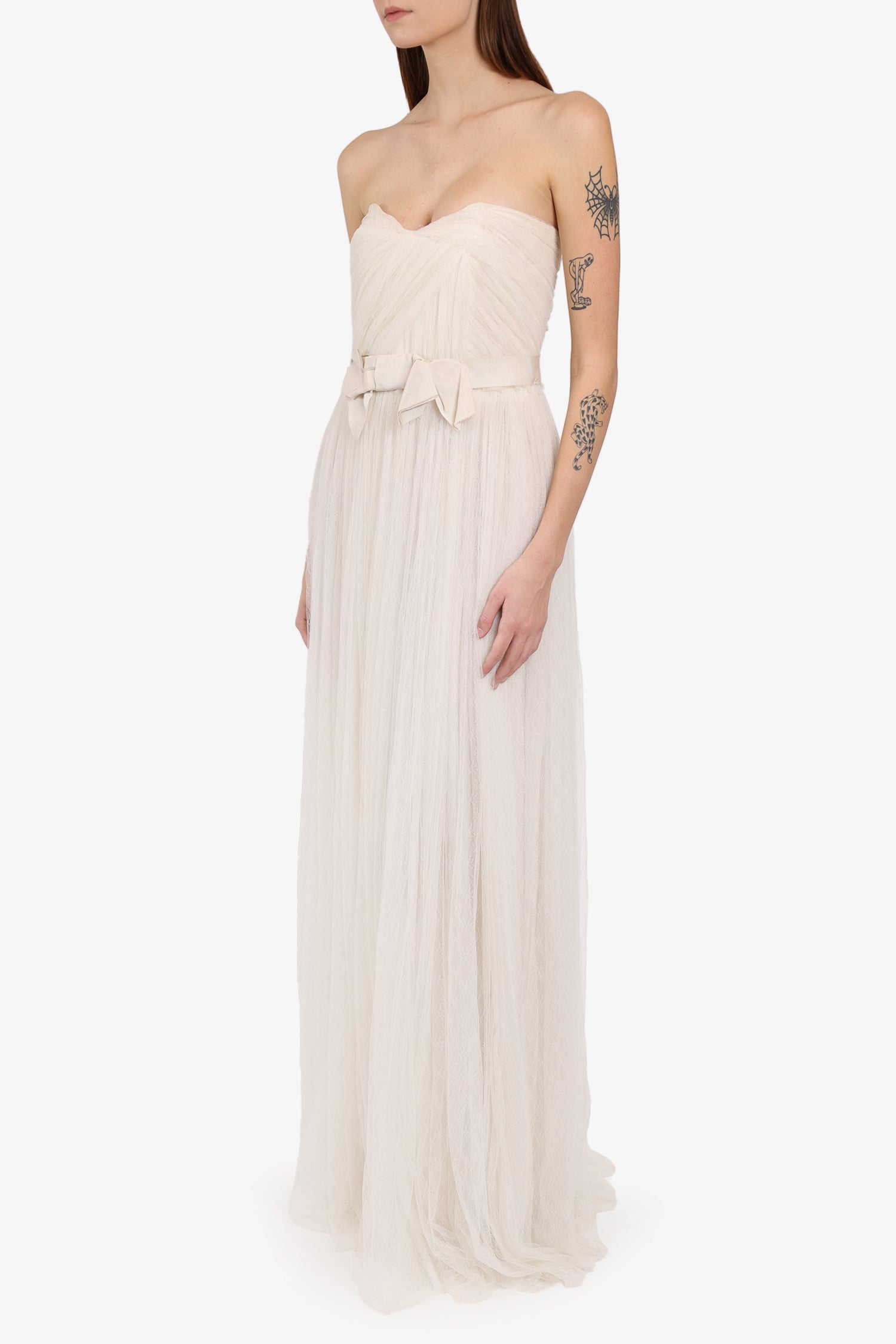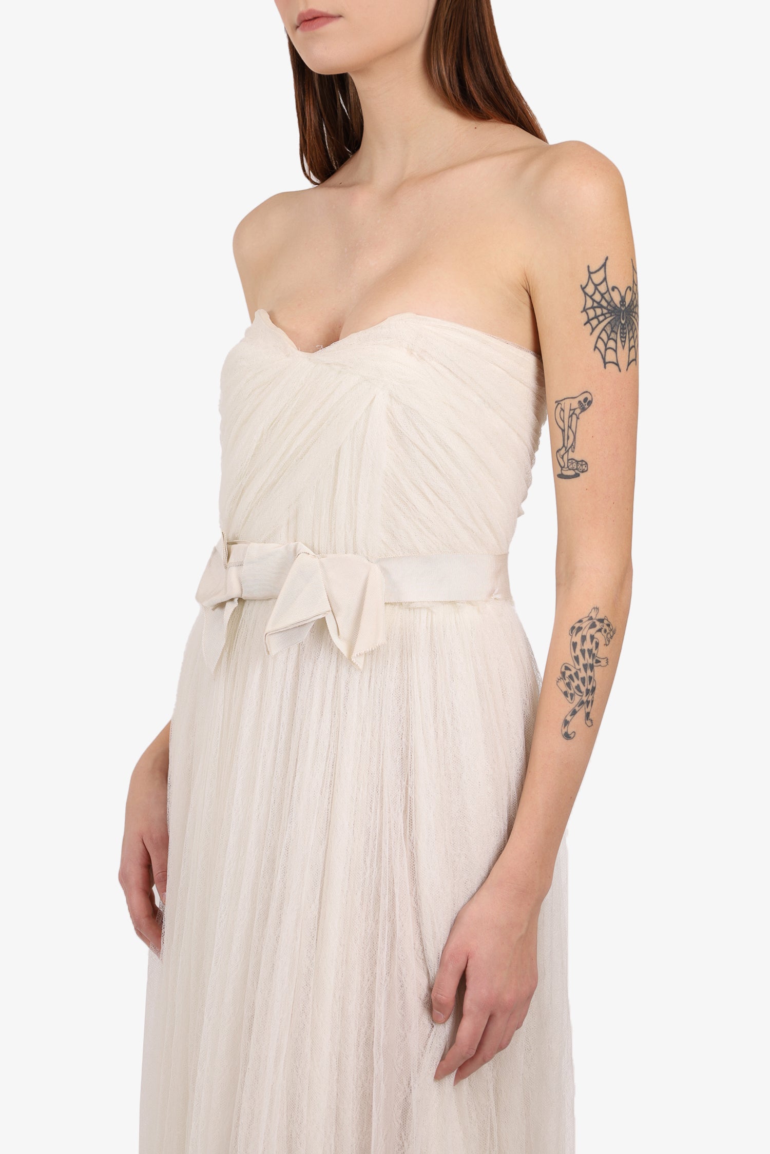 Refresh availabilityLanvin White Lace Strapless Gown with Waist Bow. Rear zip closure. Lined. Tonal stitching.