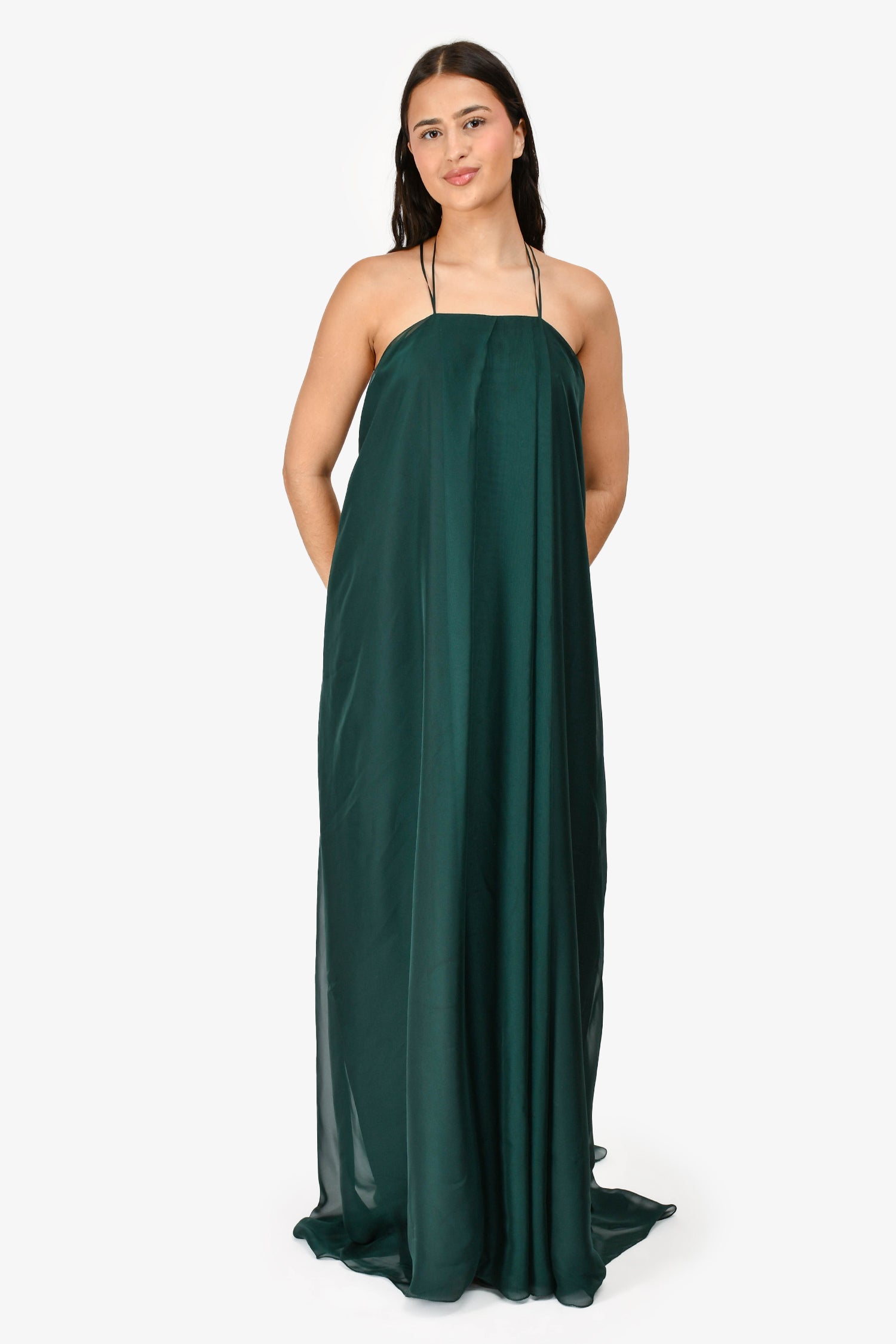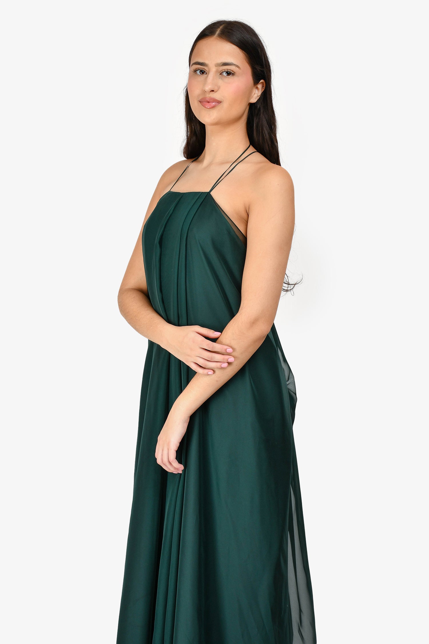 Larakhoury Green Spaghetti Strap Ruffle Back Layered Gown Size 38