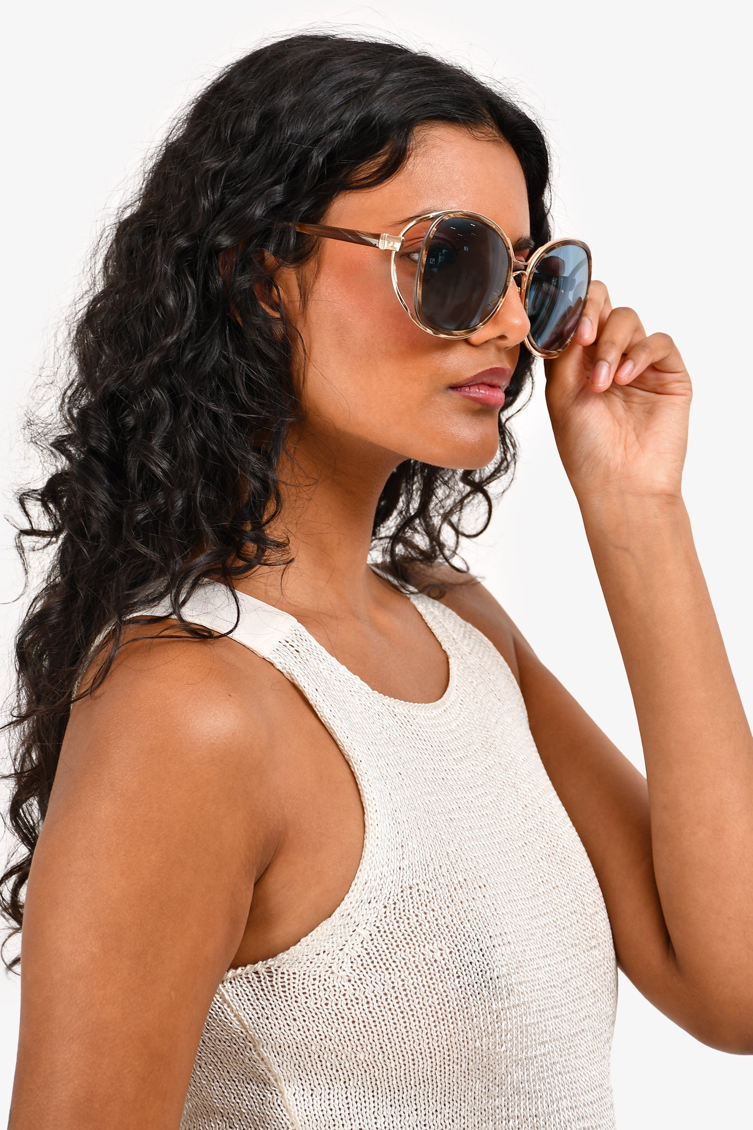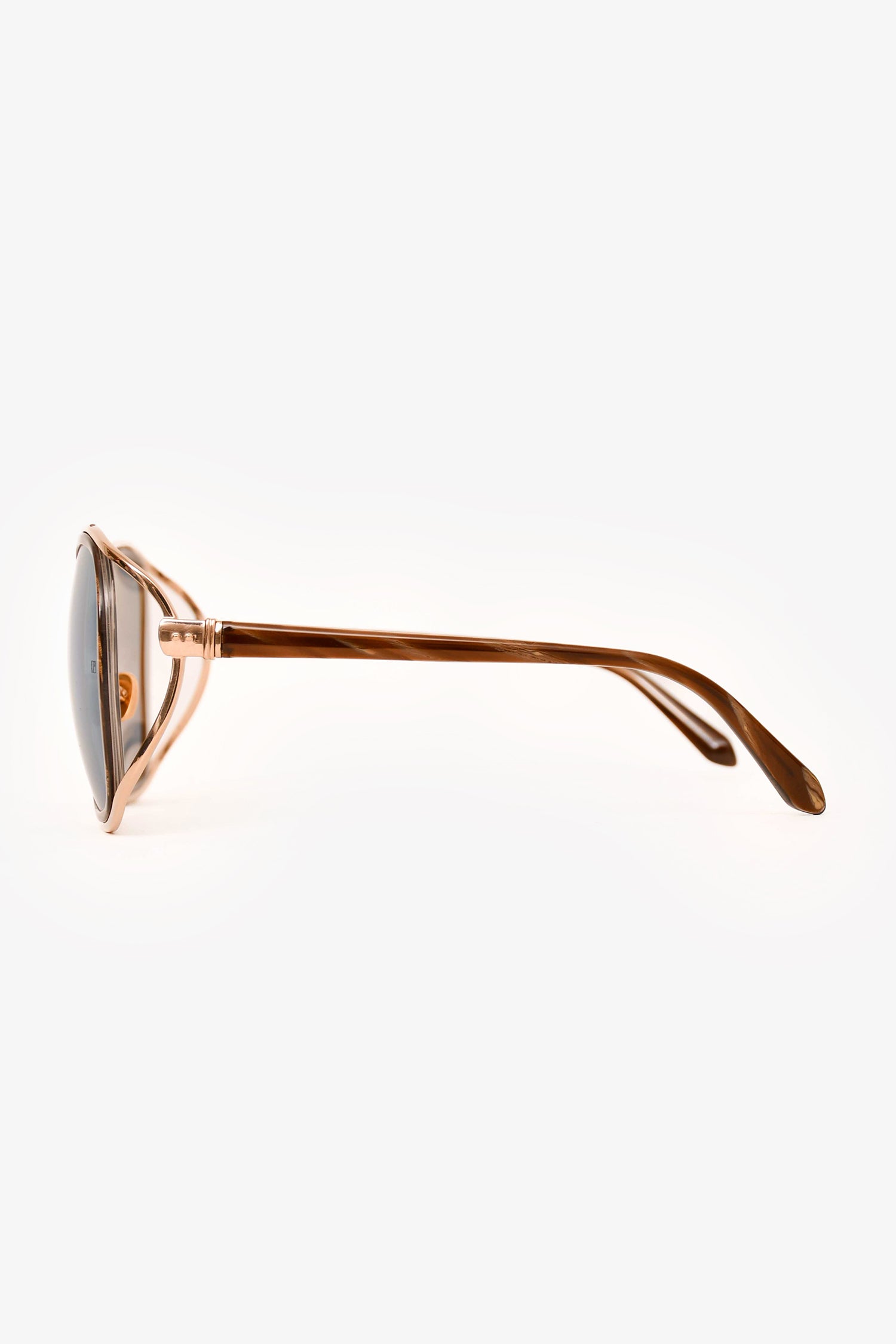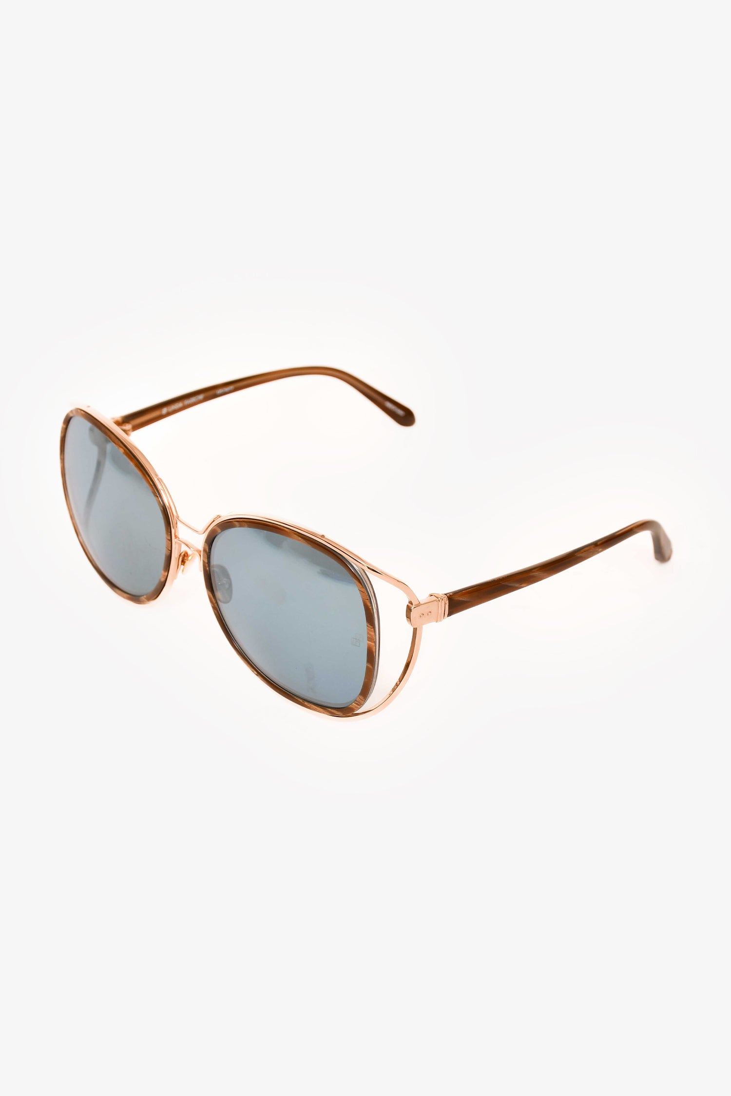 Refresh availabilityLinda Farrow Brown/Gold Tone Sunglasses. Adjustable nose pads.
