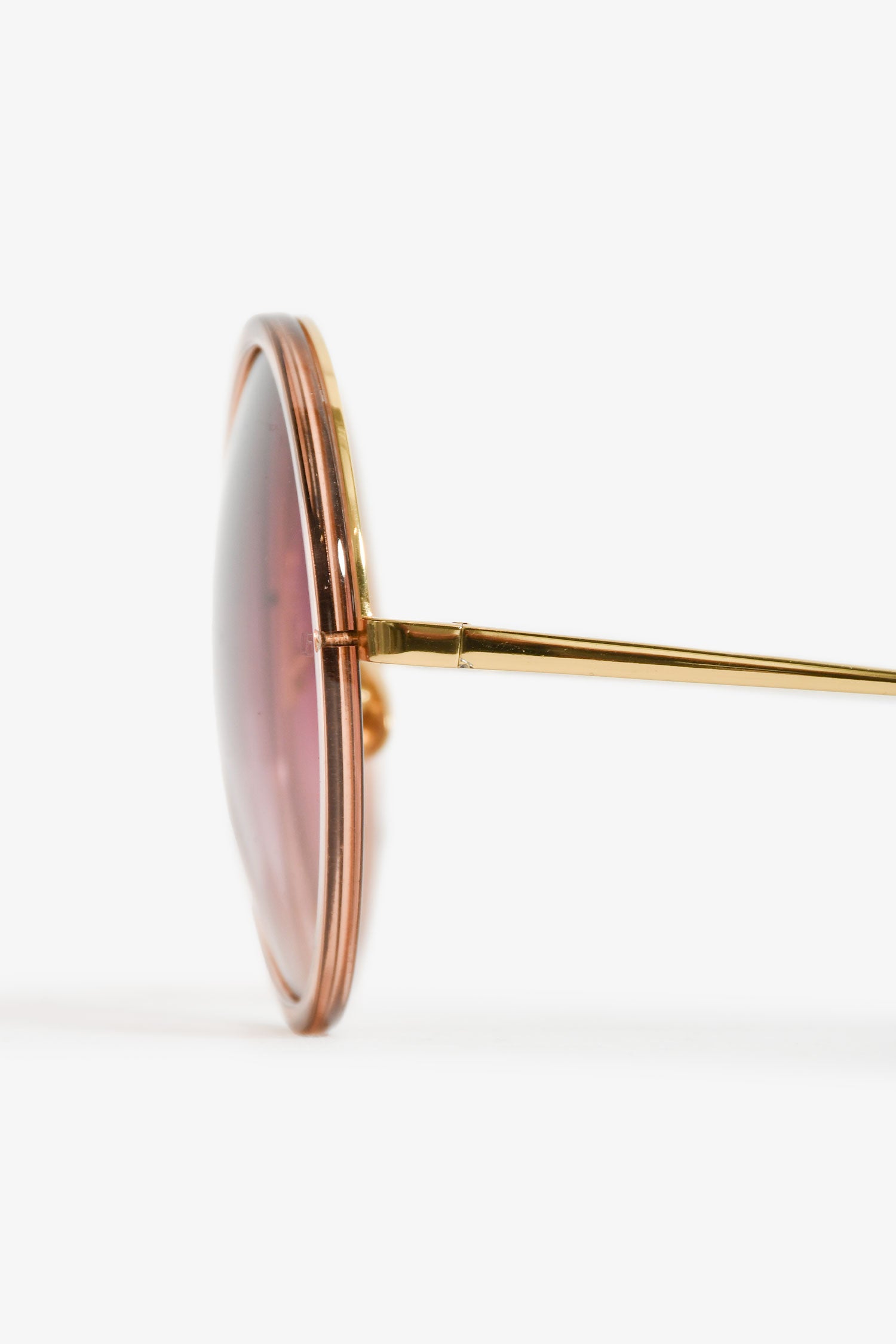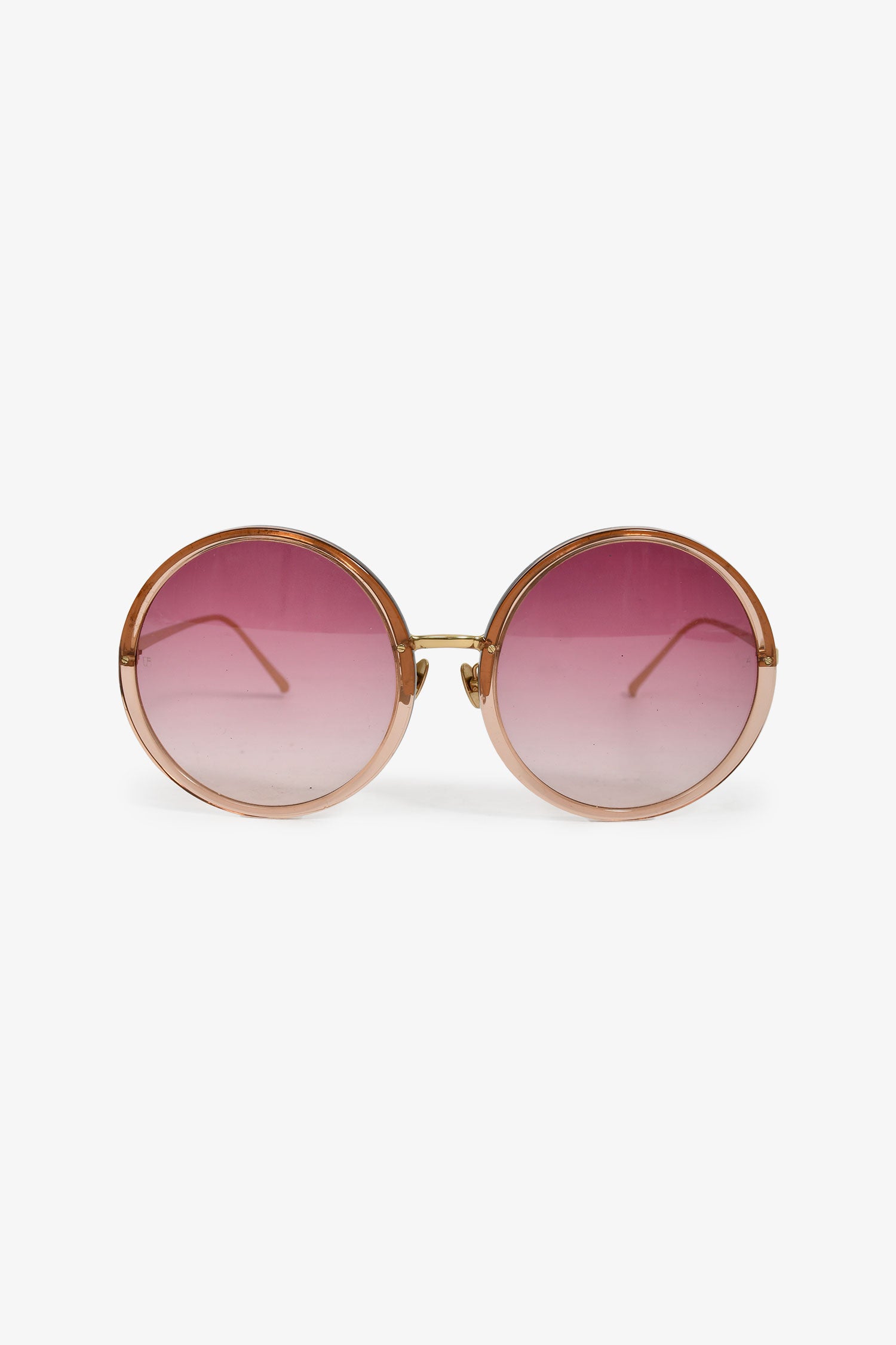 Refresh availabilityLinda Farrow Pink Tinted Round Sunglasses. Adjustable nose pads. Gold-tone hardware.