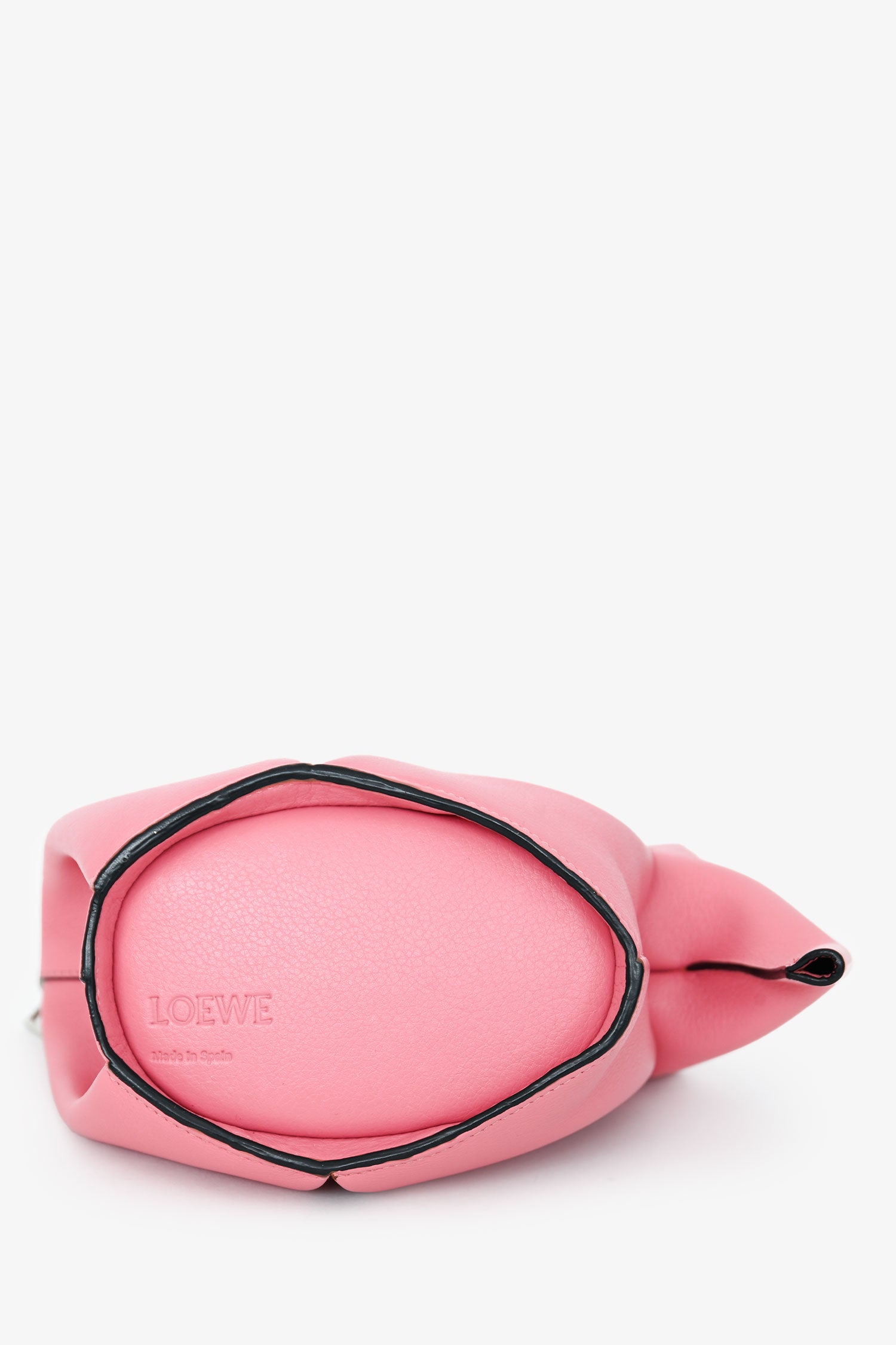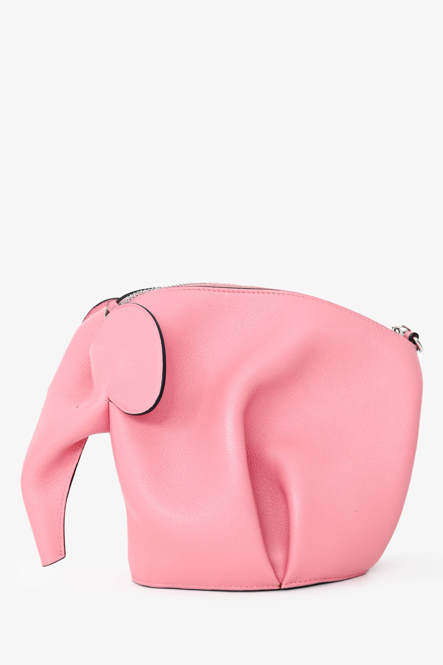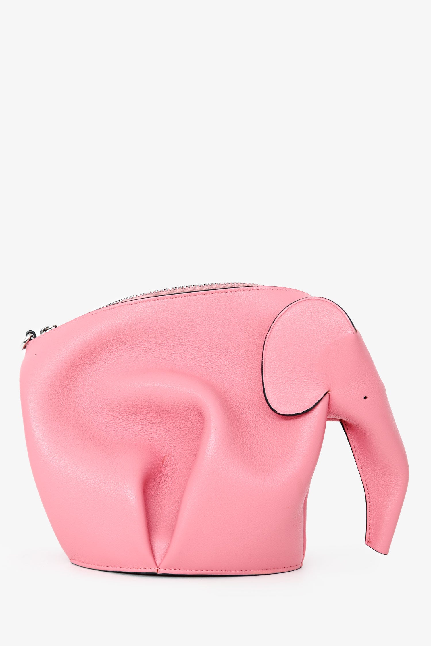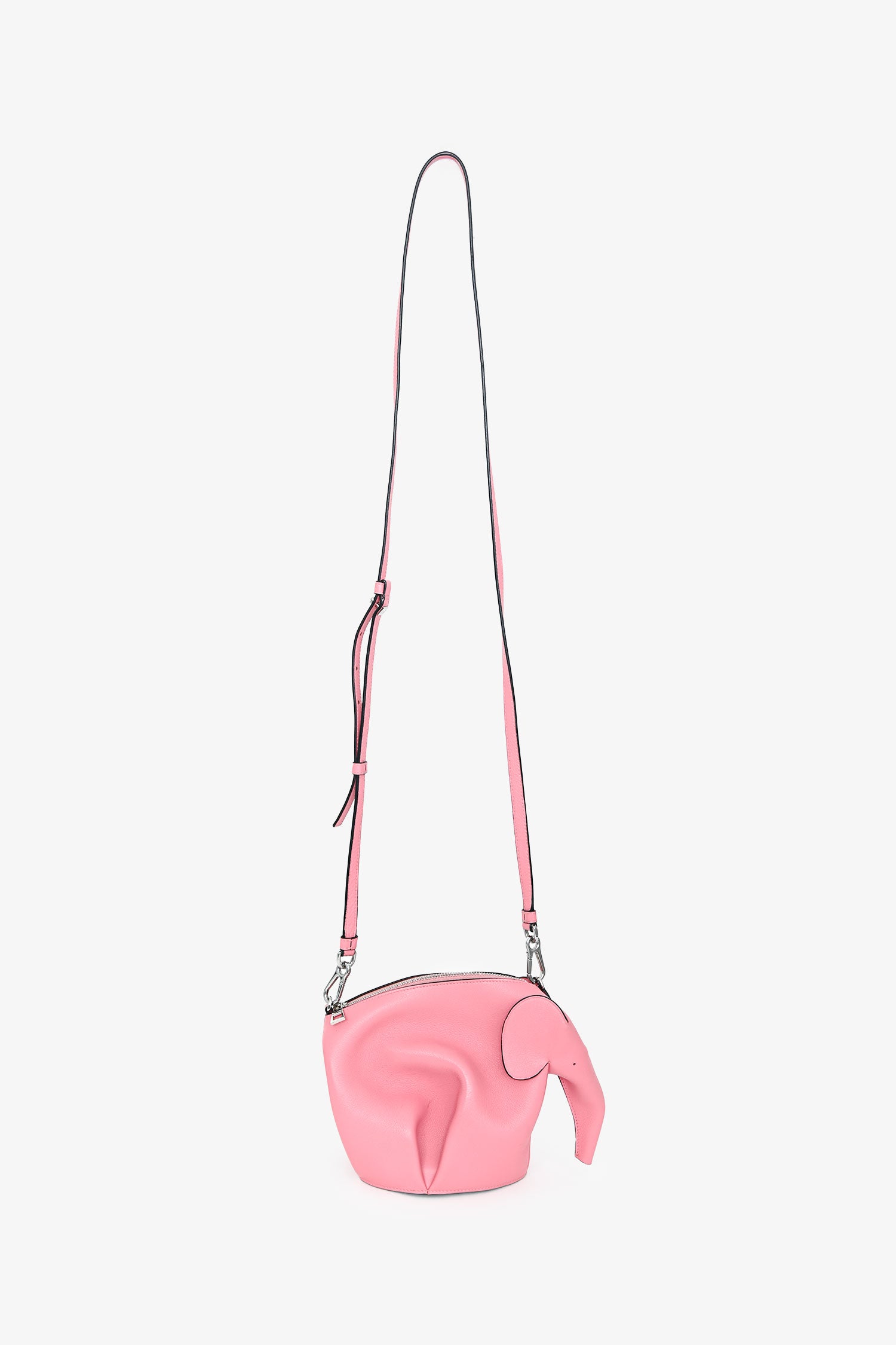 Refresh availabilityLoewe 2016 Pink Leather Elephant Crossbody. Top zip closure. Detachable and adjustable strap. Open interior. Silver-tone hardware. Tonal stitching.