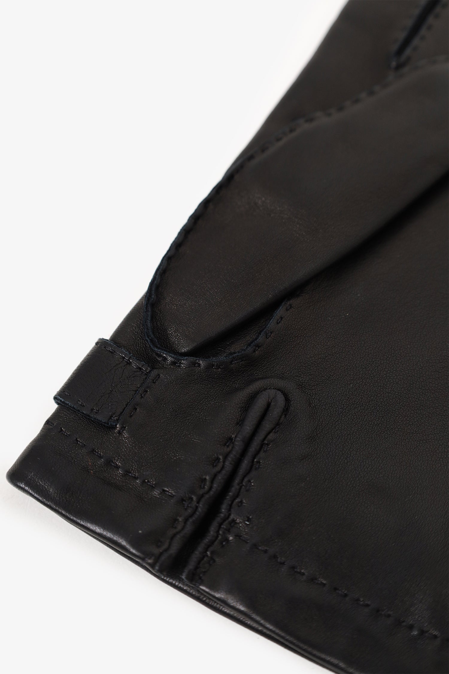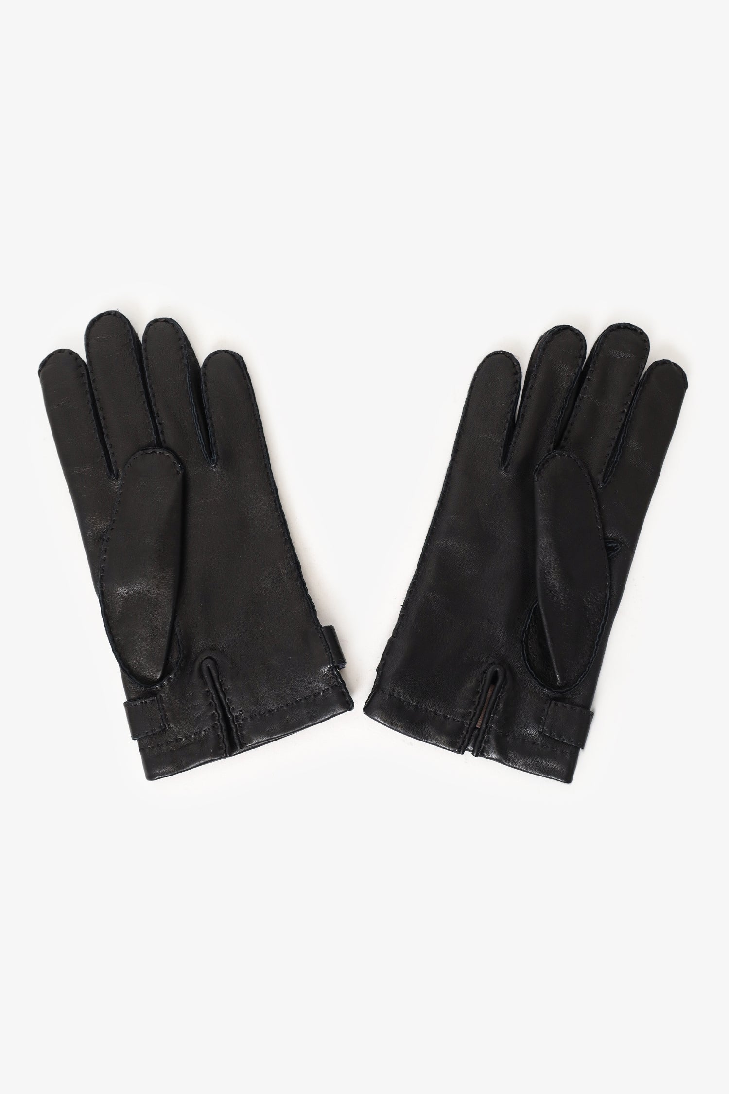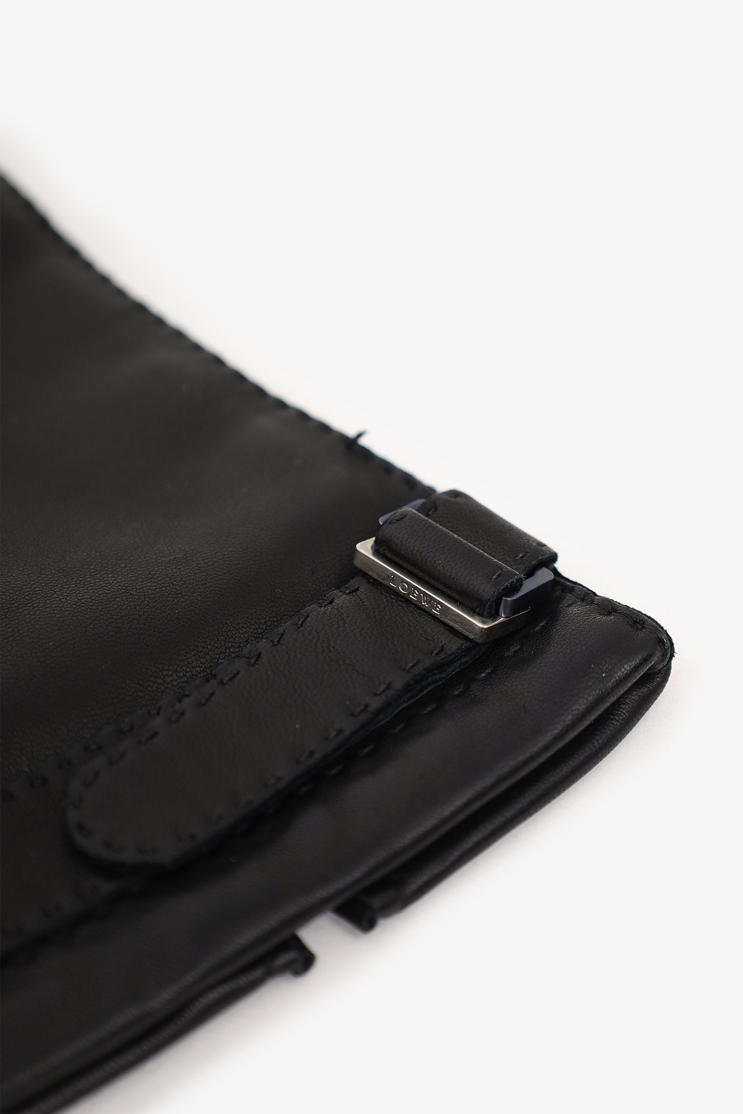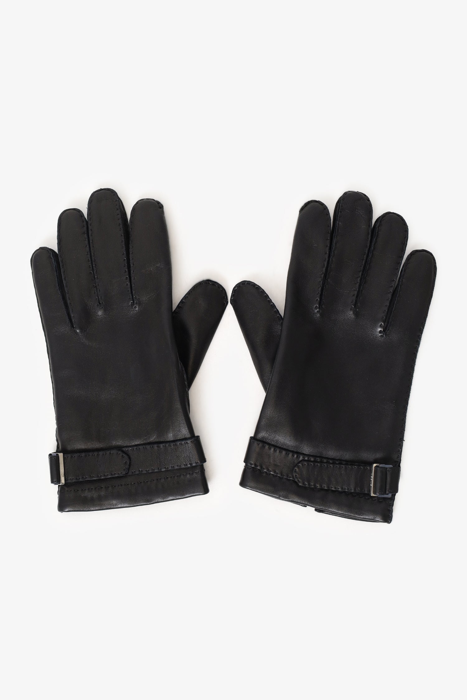 Refresh availabilityLoewe Black Leather Gloves Mens. Knitted interior. Exterior adjustable buckle closure. Silver-tone hardware. Tonal stitching.
