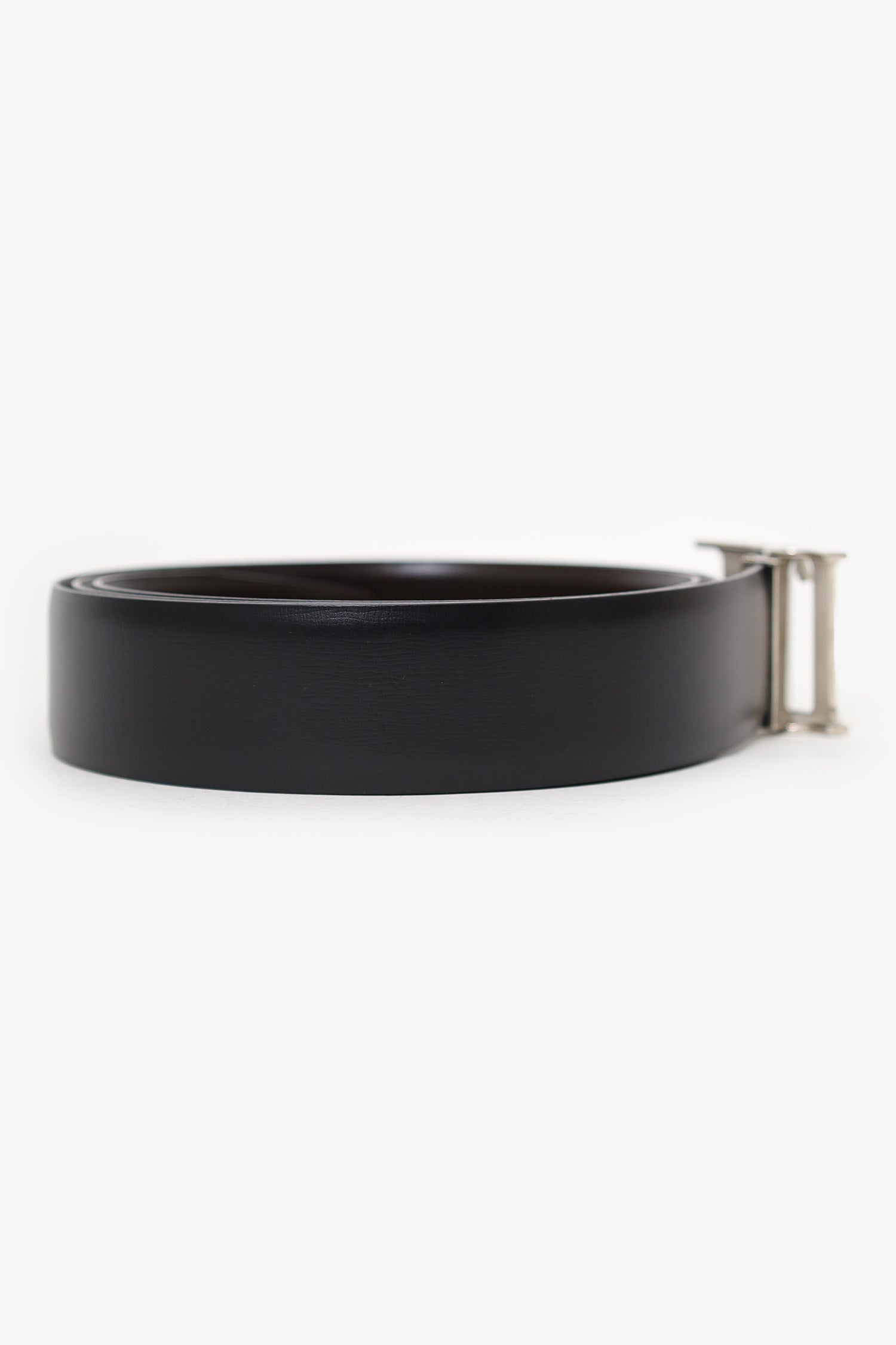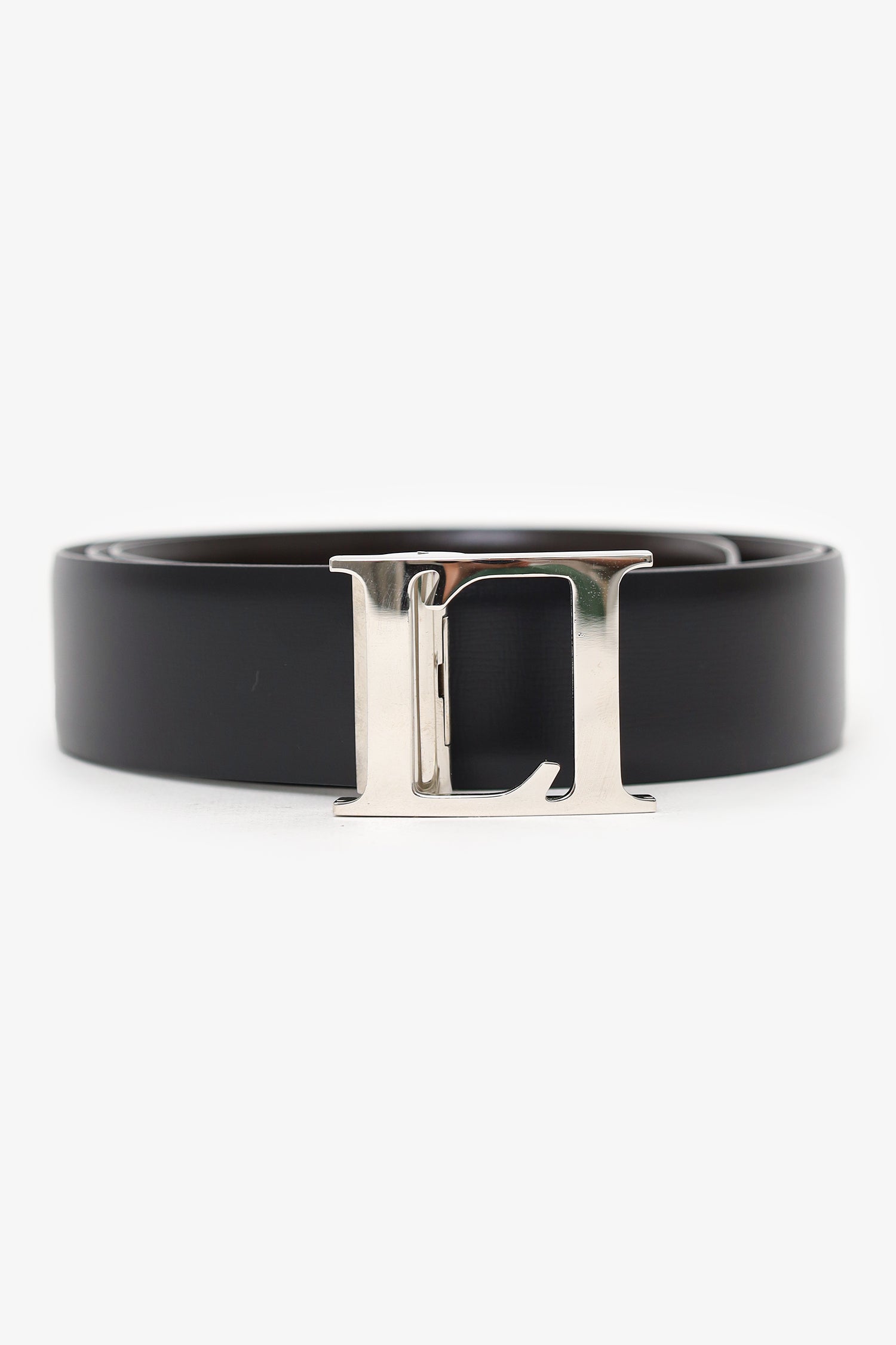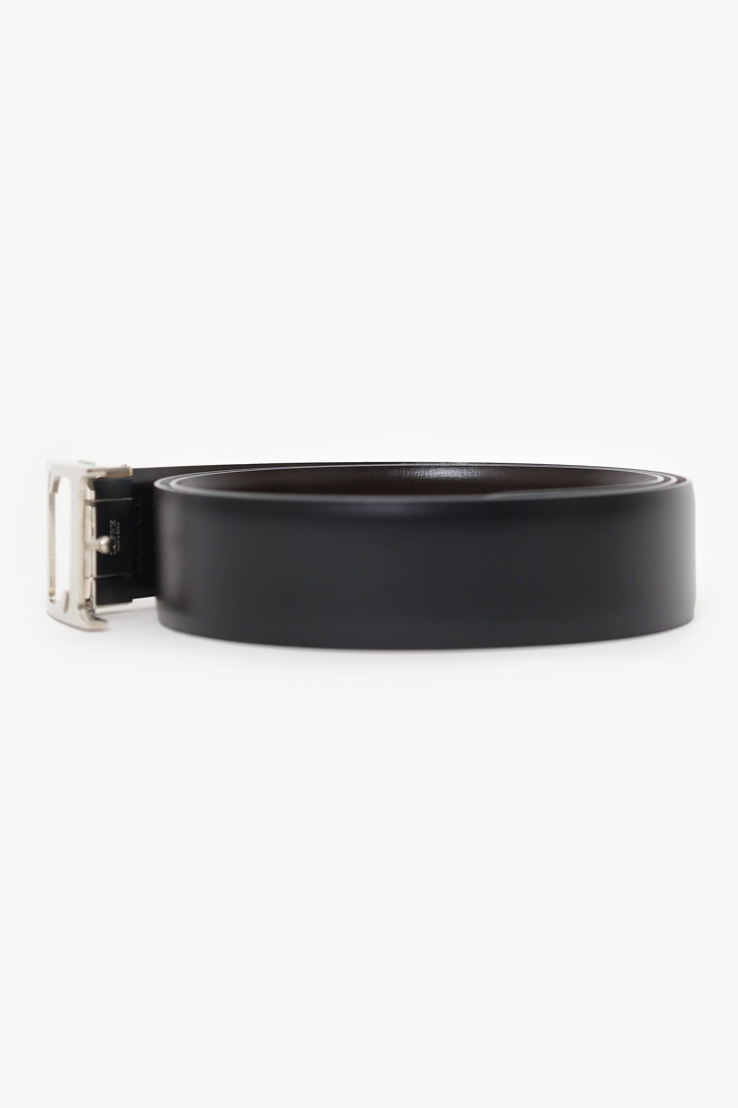 Refresh availabilityLoewe Black Lether 'LL' Buckle Belt. Adjustable push-pin buckle closure. Tonal stitching. Silver-tone hardware.